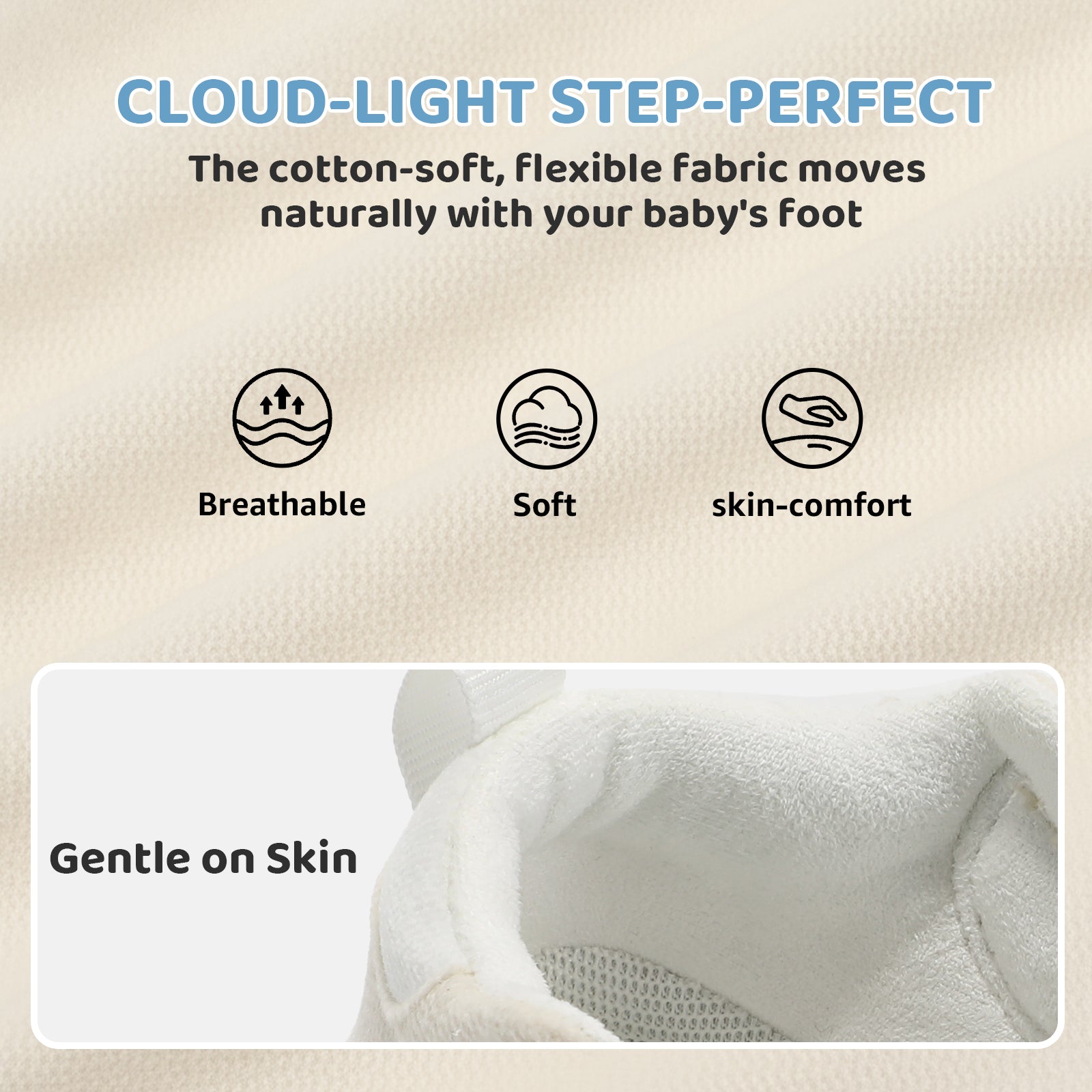 - [ Gentle Comfort & Care ]: Baby first walking shoes made of soft cotton, it’s lightweight and comfortable, fitting babies’ delicate feet to avoid friction redness. Breathable to prevent stuffiness, keeping feet dry when they learn to walk