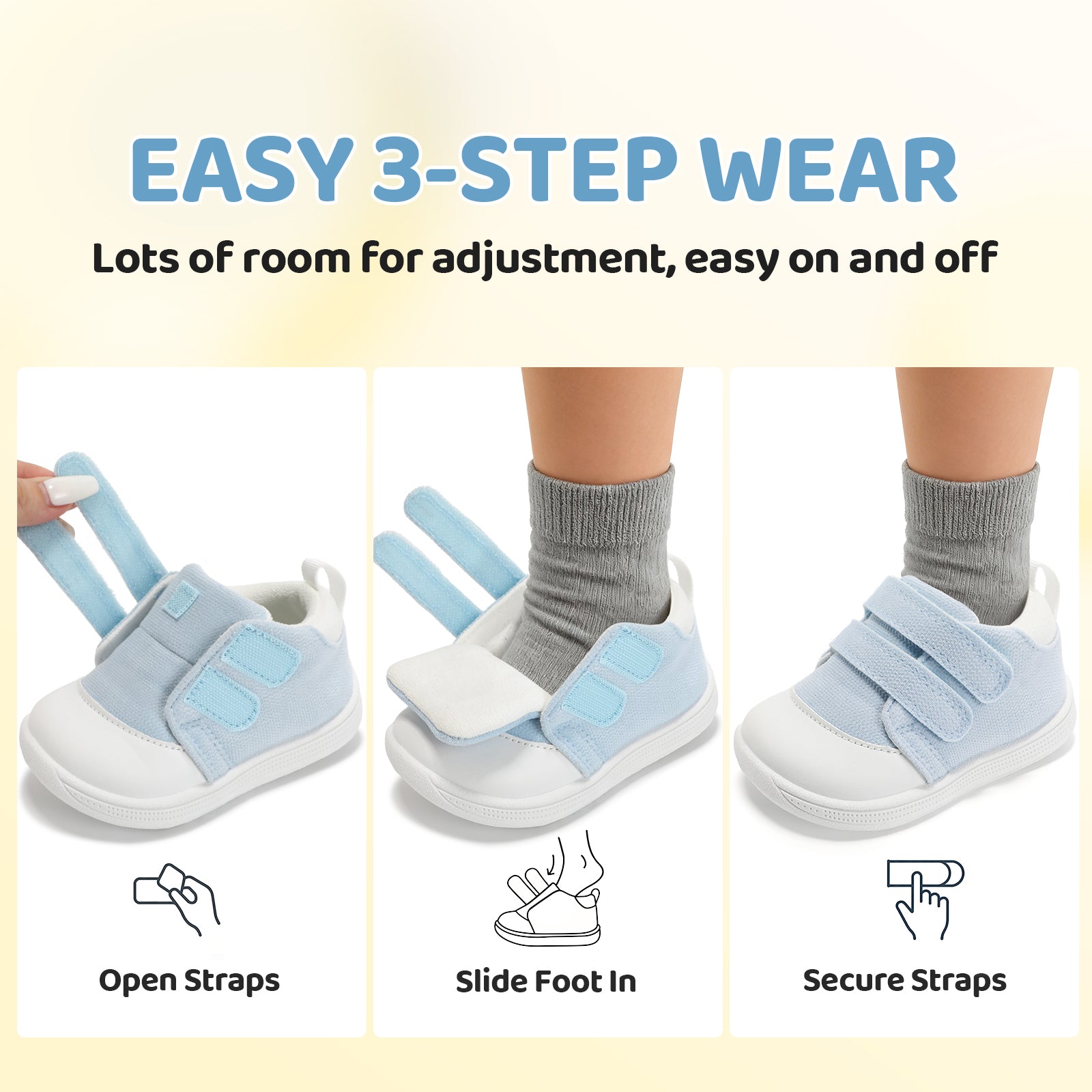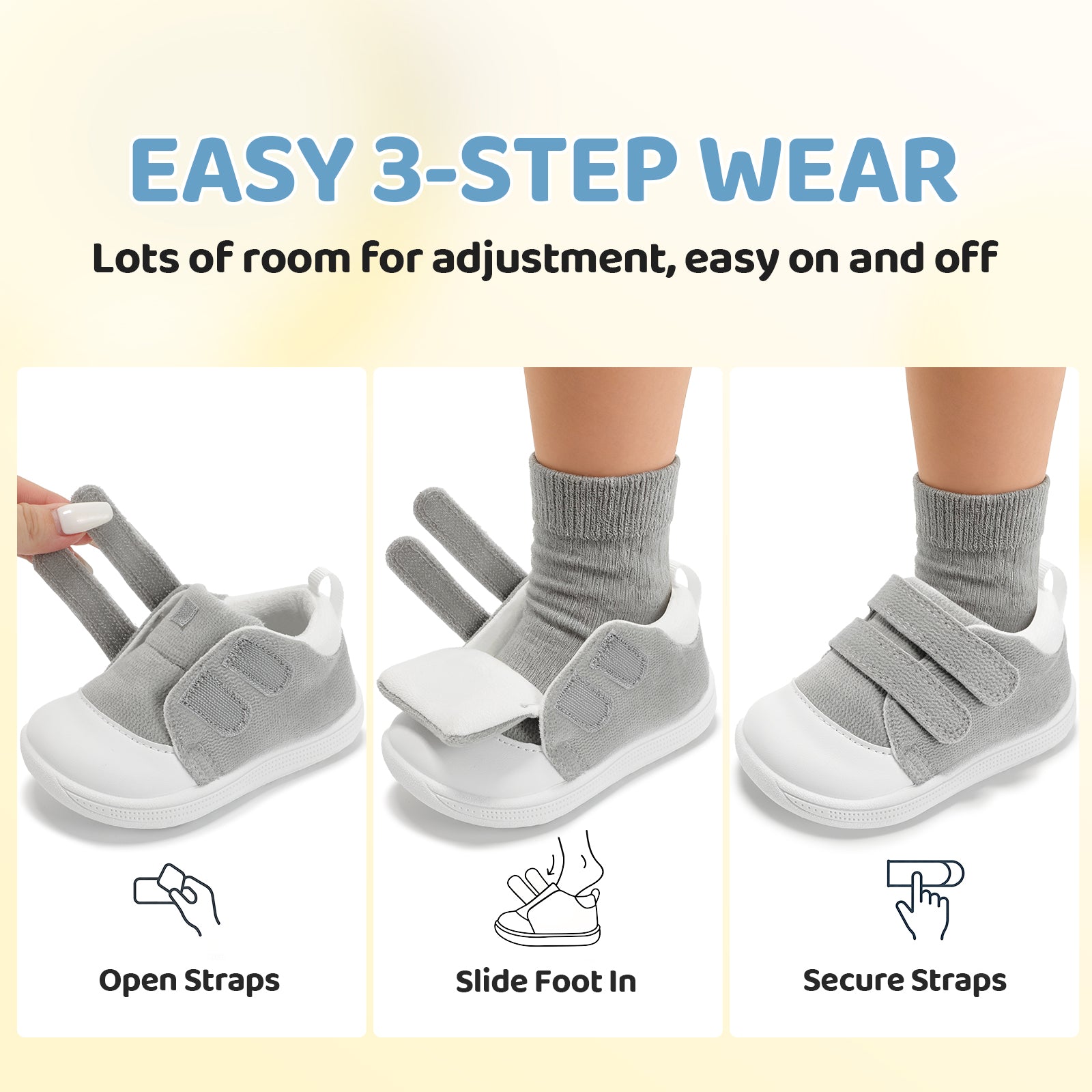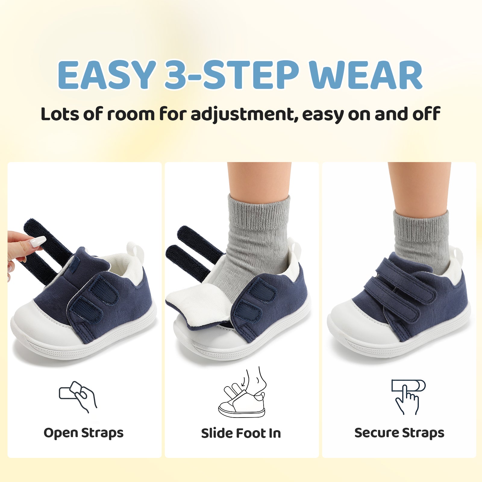- [ Hoop & loop for Easy Wear ]: Baby shoes with adjustable hoop & loop, convenient for parents help babies wear walking shoes, no hassle. It fits baby’s foot circumference flexibly, avoiding being too loose or tight