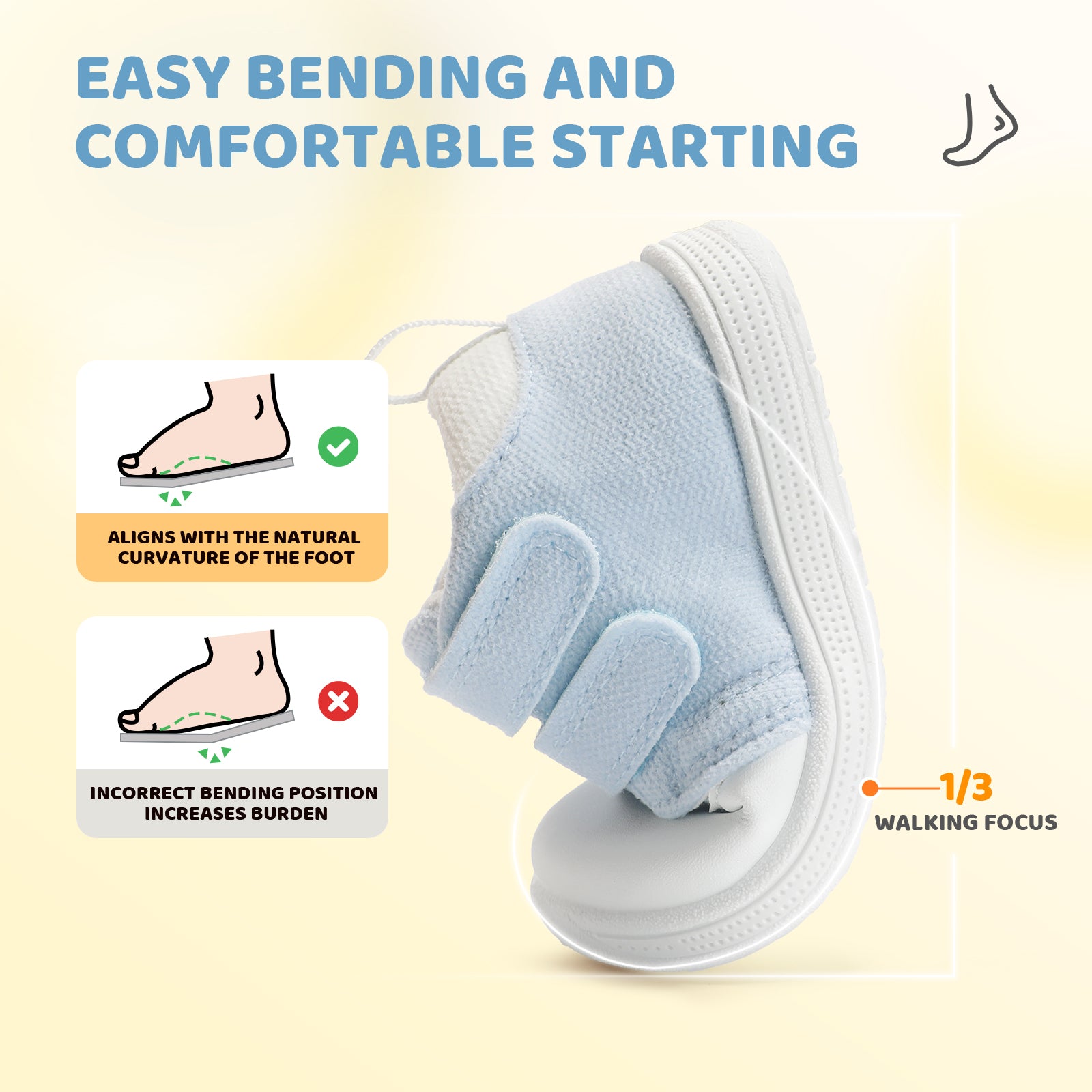 - [ Mid-Top Support & Stabilizing Heel Cup ]: Mid-top opening with reinforced heel holds ankles firmly from sides and back, adding secure. Flexible sole, natural bending at the 1/3 forefoot aligns with toddlers foot movement, encouraging proper gait