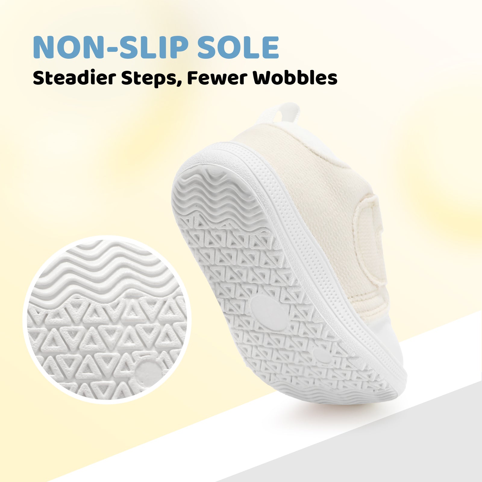 - [ Non-Slip & Wear-resistant Sole ]: Sole has non-slip texture, boosting friction on floors/play mats to reduce slipping when babies indoor walk, daily wear, home crawl or play, outdoor playground. Specifically designed for baby aged 6 to 24 months