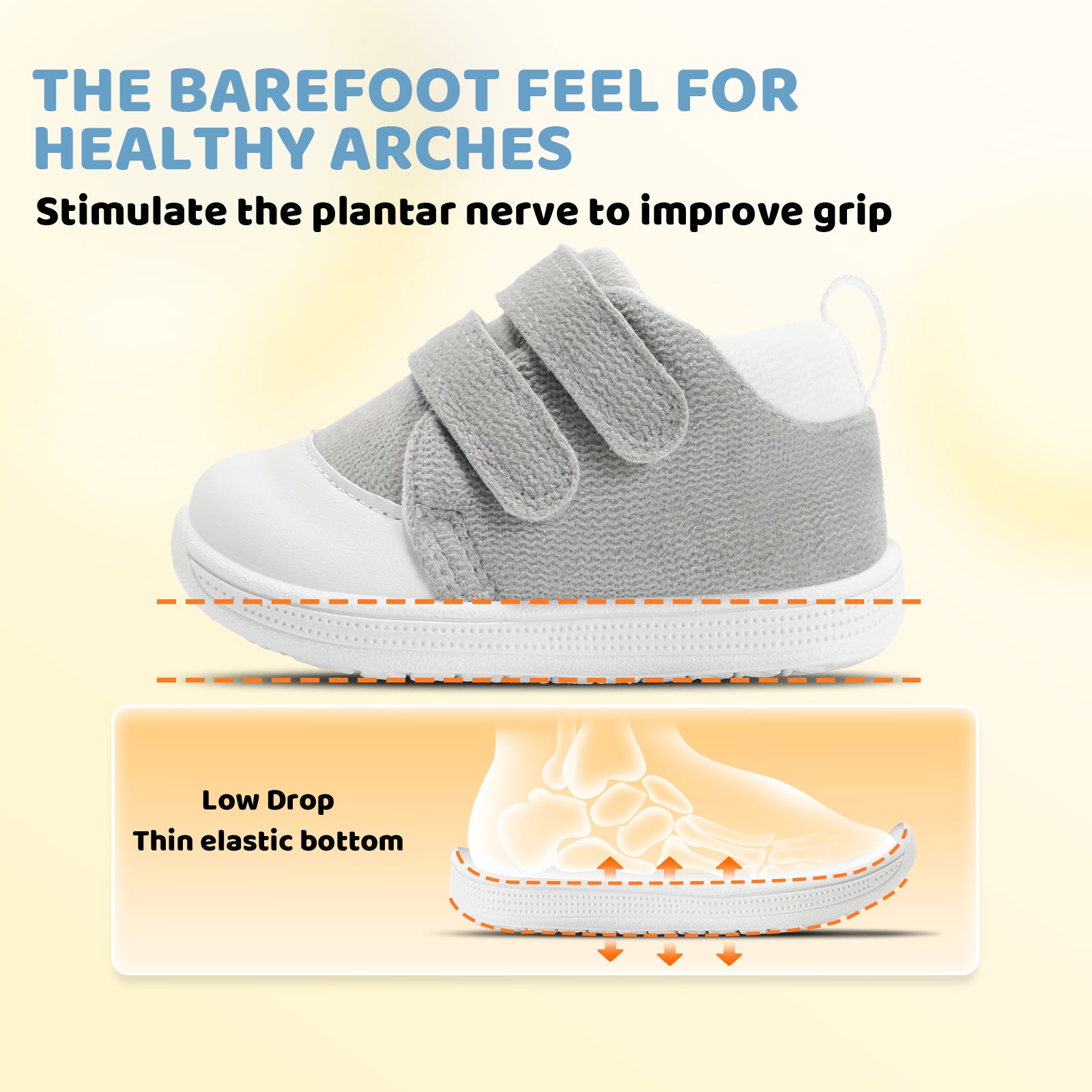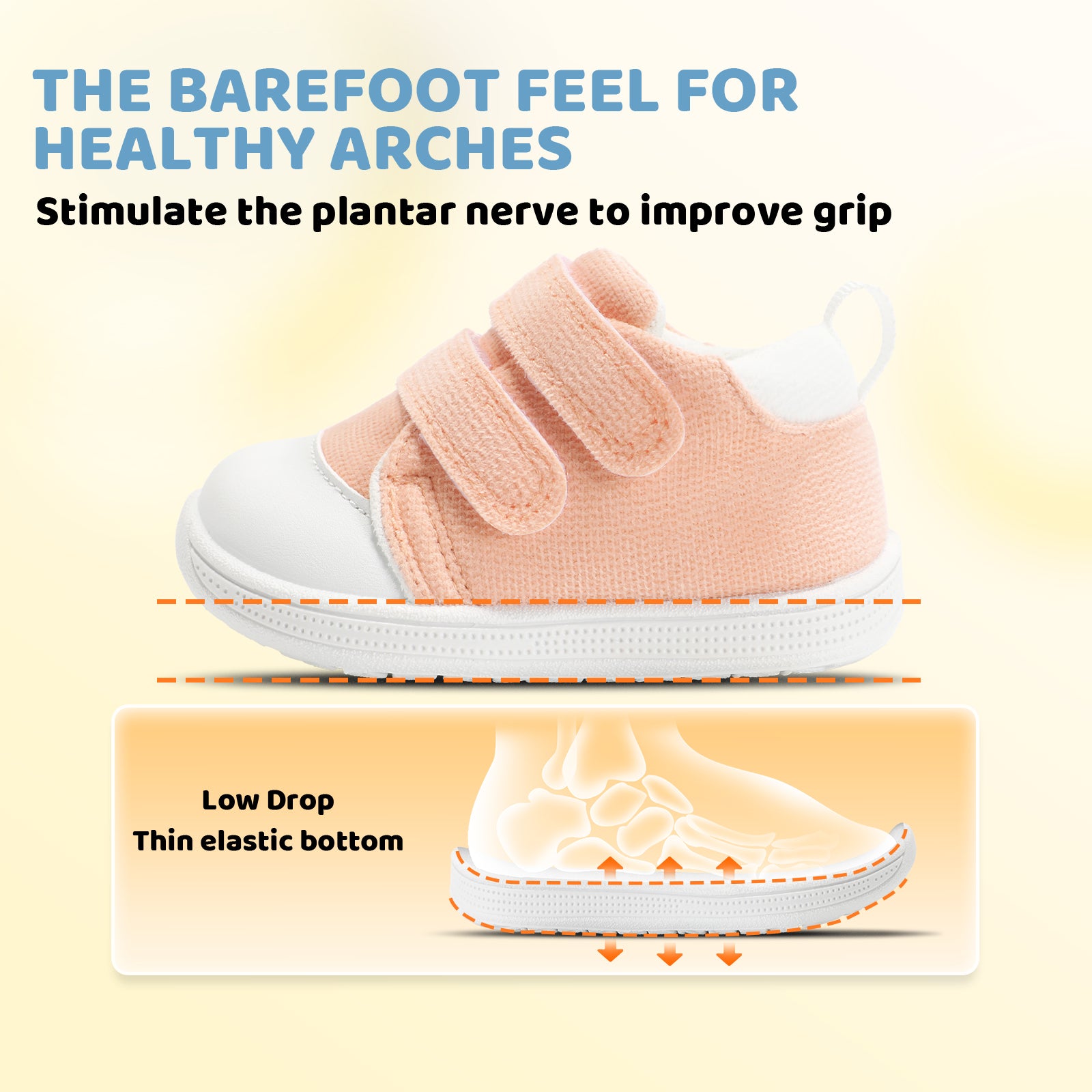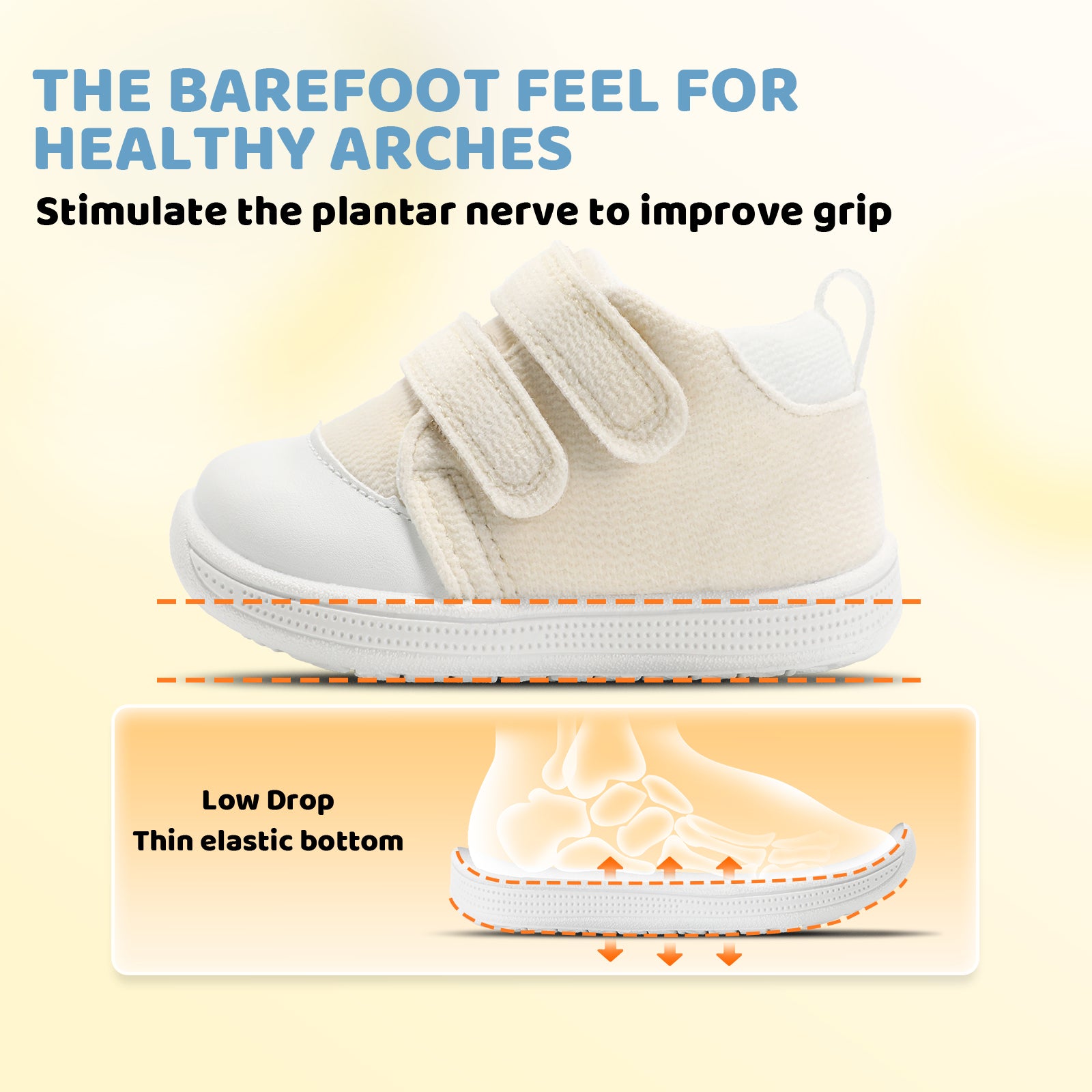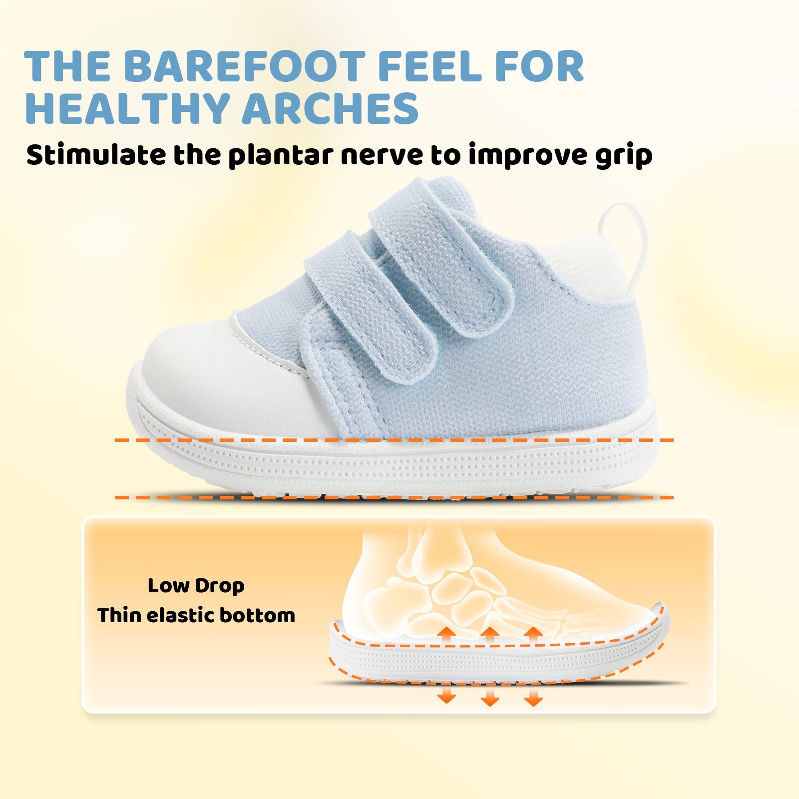 - [ Wide Foot & Thin Sole for Foot Growth] : Designed for baby walking-section feet, the wide style avoids toe squeezing, giving enough activity vacuum. Thin sole lets babies feel the ground, forming natural pressure memory to support healthy arches