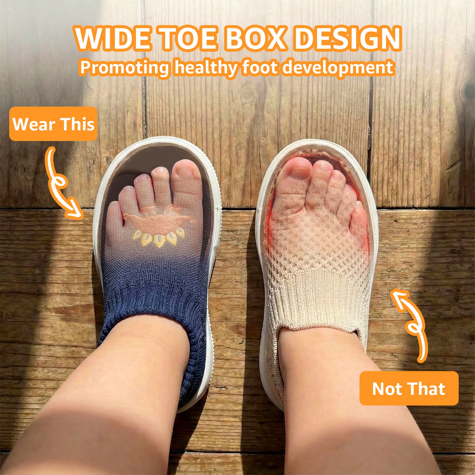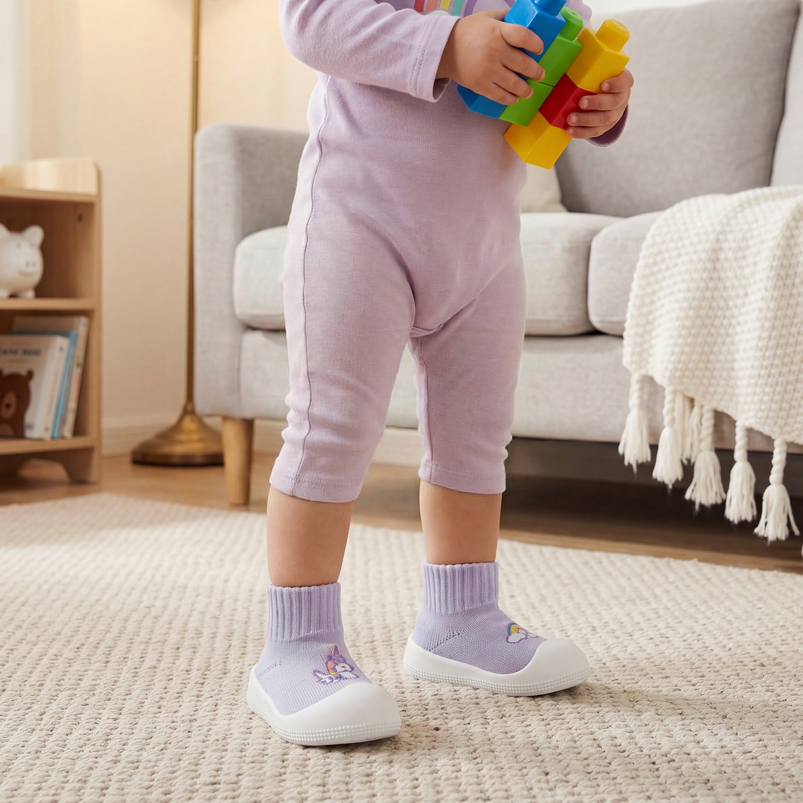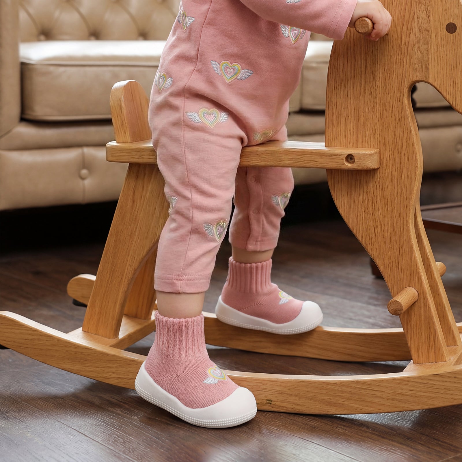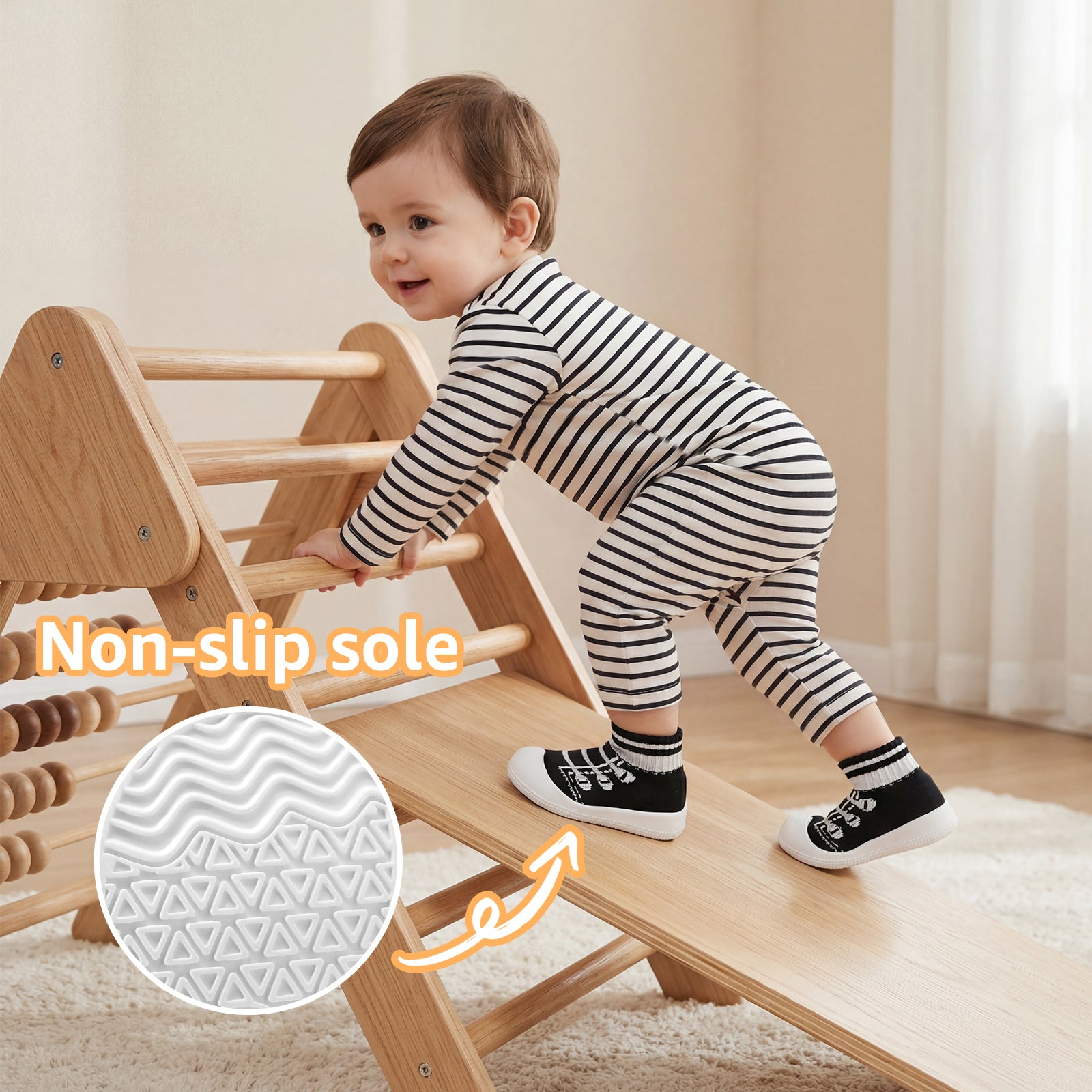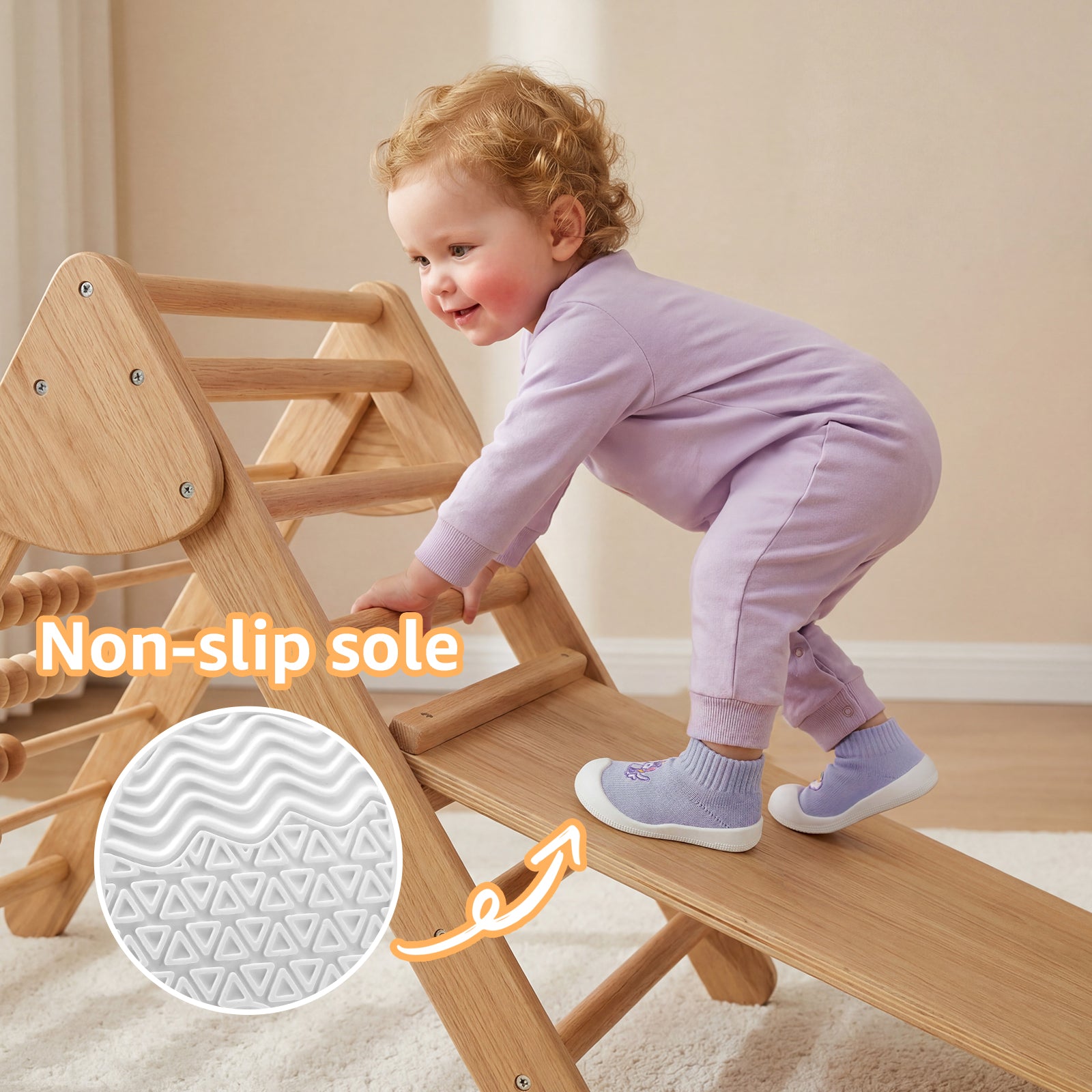 - Wide Toe Box: These baby sock shoes are designed with a wide toe box that allows the little toe to naturally open and grow, supporting healthy foot development.