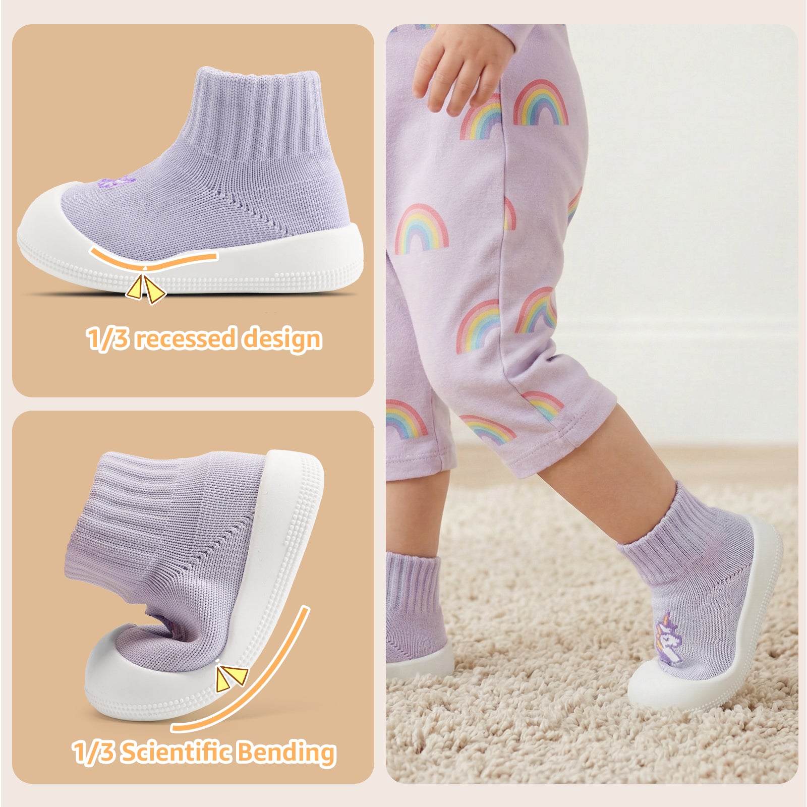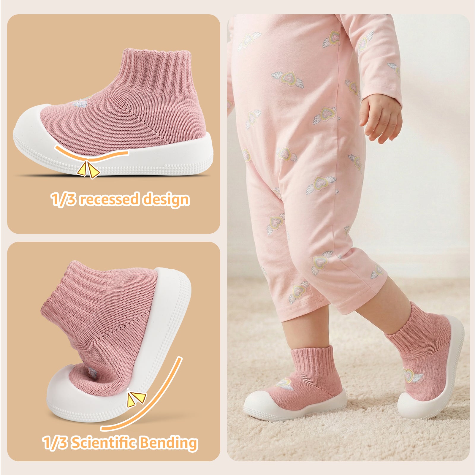 - Breathable: Baby walking sock shoes made of soft fabric knit, friendly to the skin, lightweight, soft and breathable, comfortable to wear all year round.