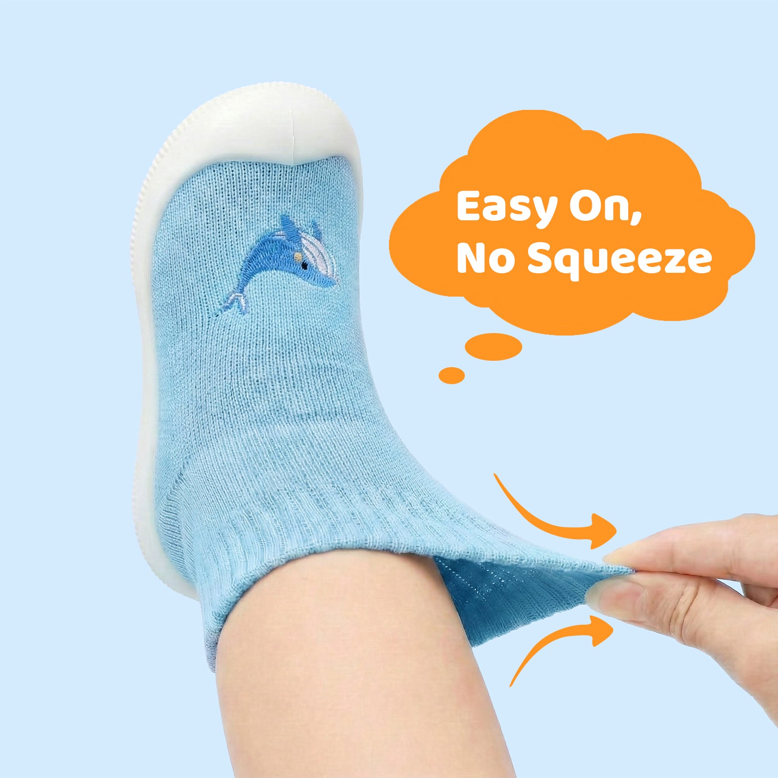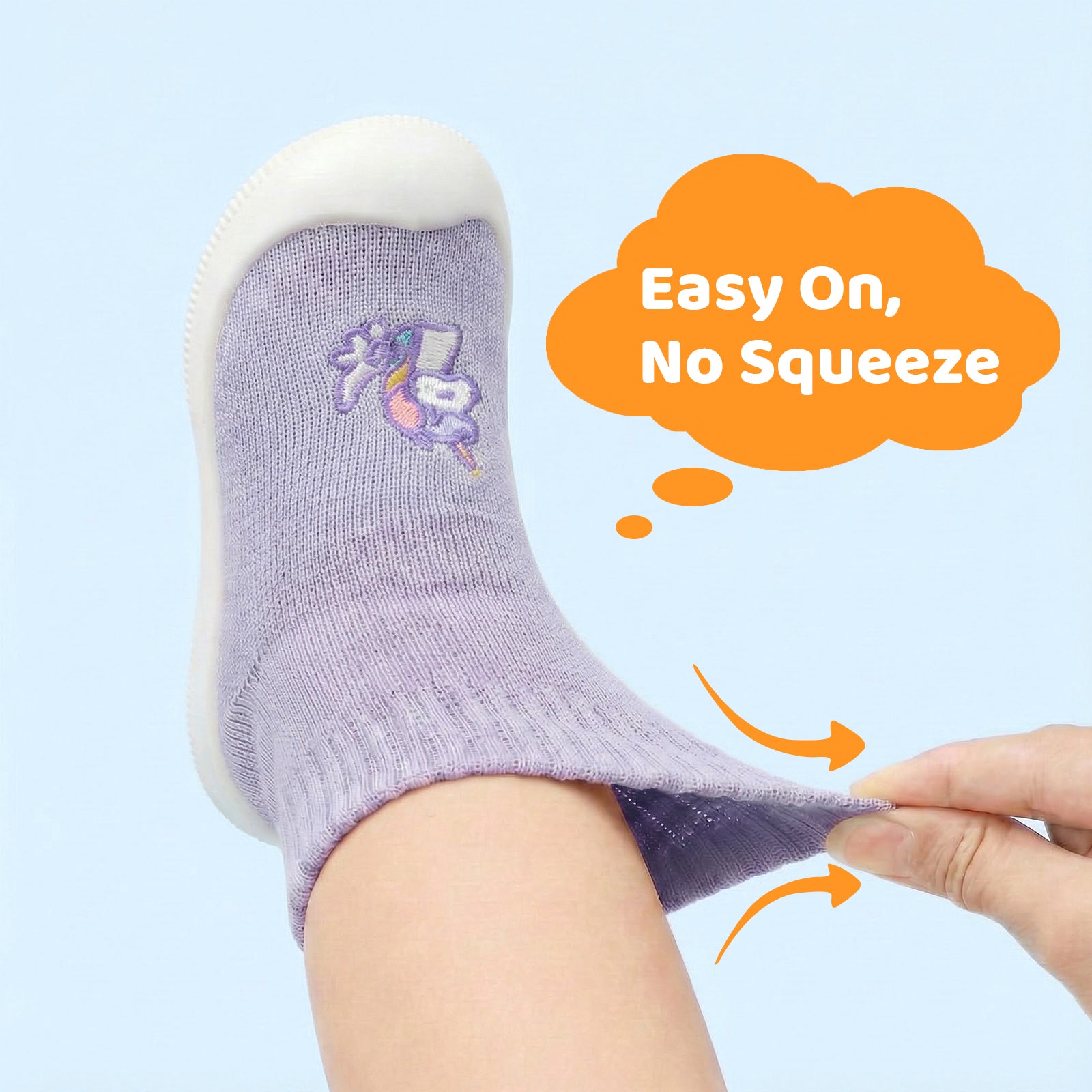 - Elastic Cuff: Features a soft, elastic opening that stays securely on active little feet without leaving marks or feeling tight—perfect for all-day comfort. it is very easy to put on and off.
