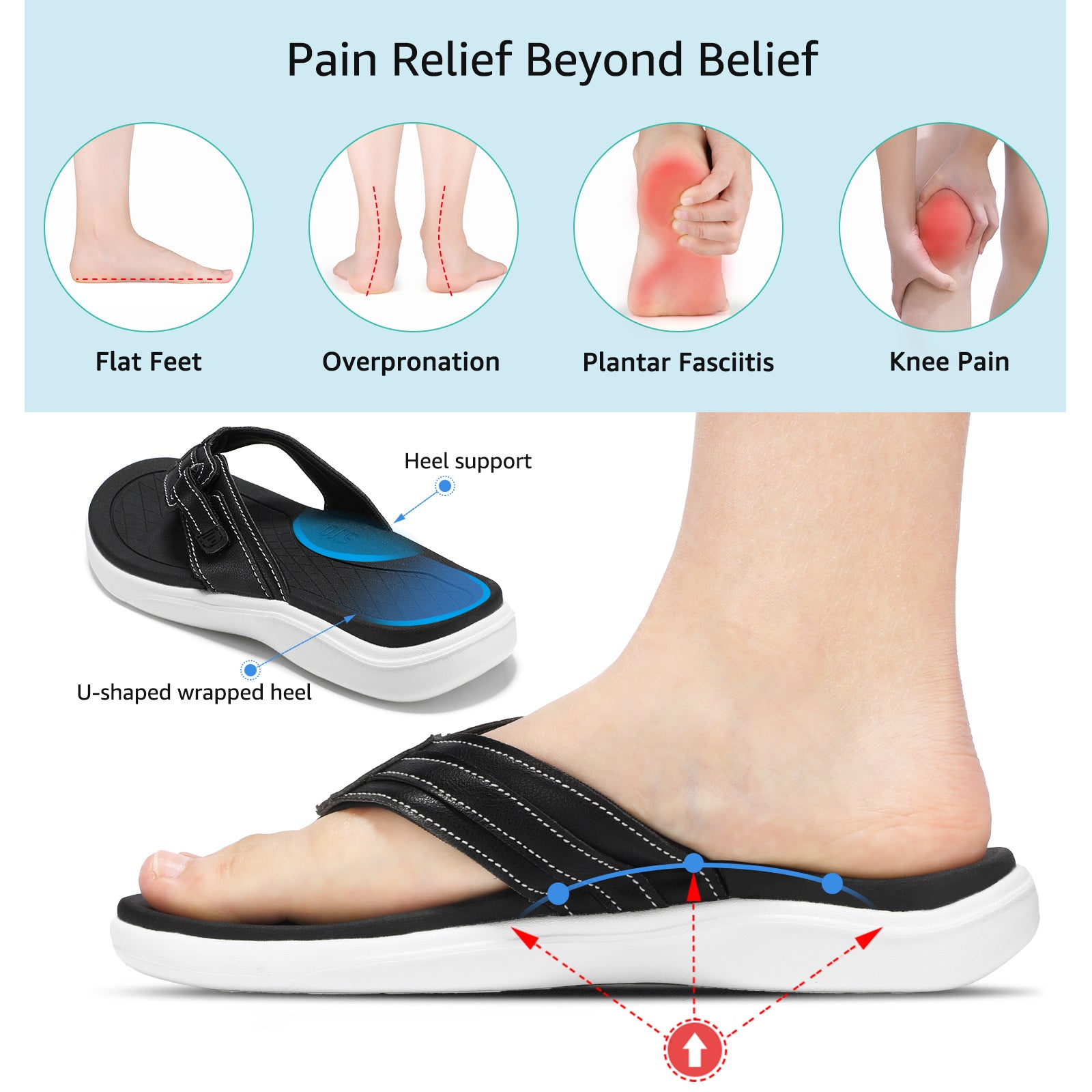 - Orthopedic with Arch Support: Our adjustable flip-flops prioritize orthopedic excellence and specialized arch support. Ideal for plantar fasciitis, flat feet, bunions, arthritis, diabetes, and Morton's neuroma. Say hello to all-day comfort