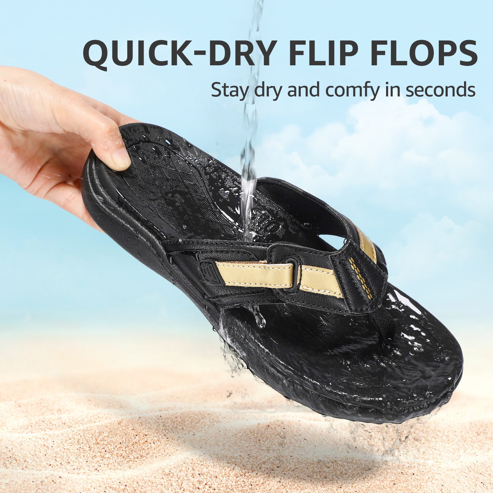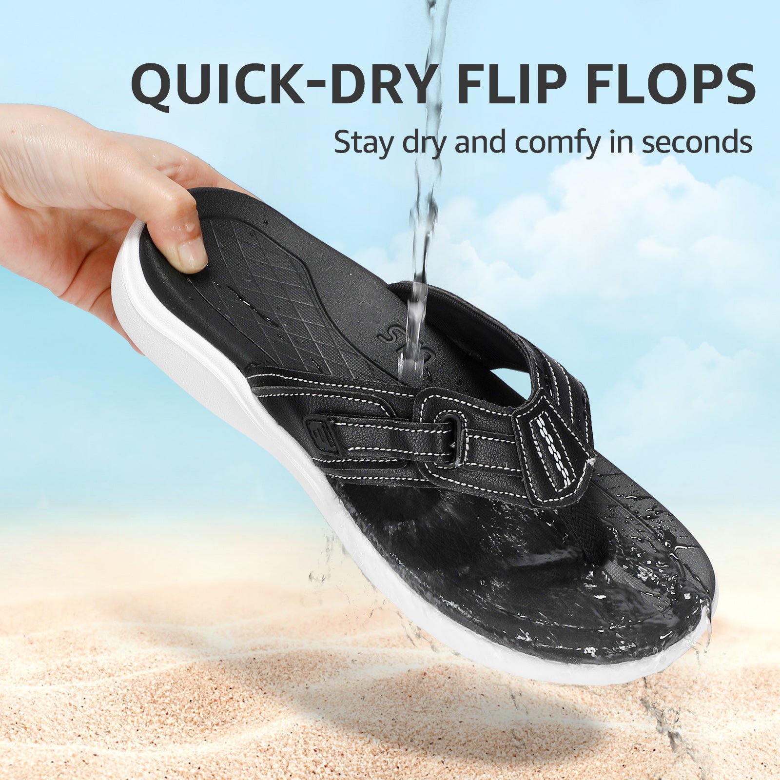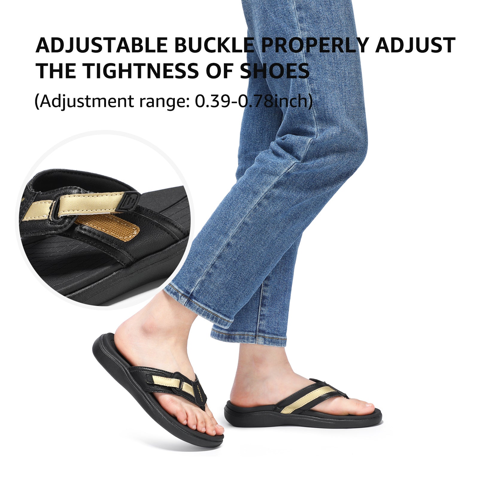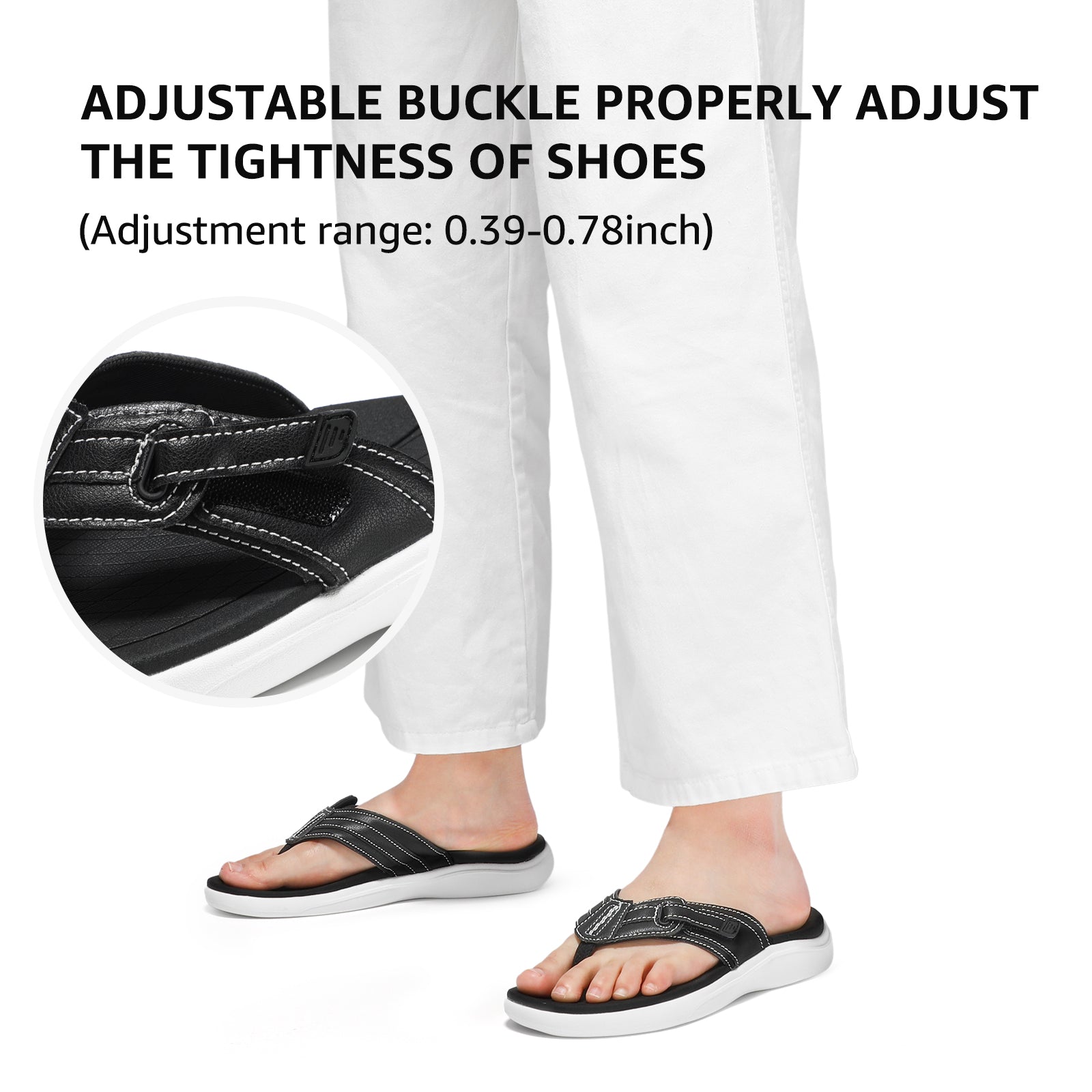 - Adjustable Straps Cushioned Comfort: With adjustable straps and a cushioned sole, our flip-flops offer a custom fit and superior comfort. Easily adapt to any foot swelling throughout the day for all-day comfort