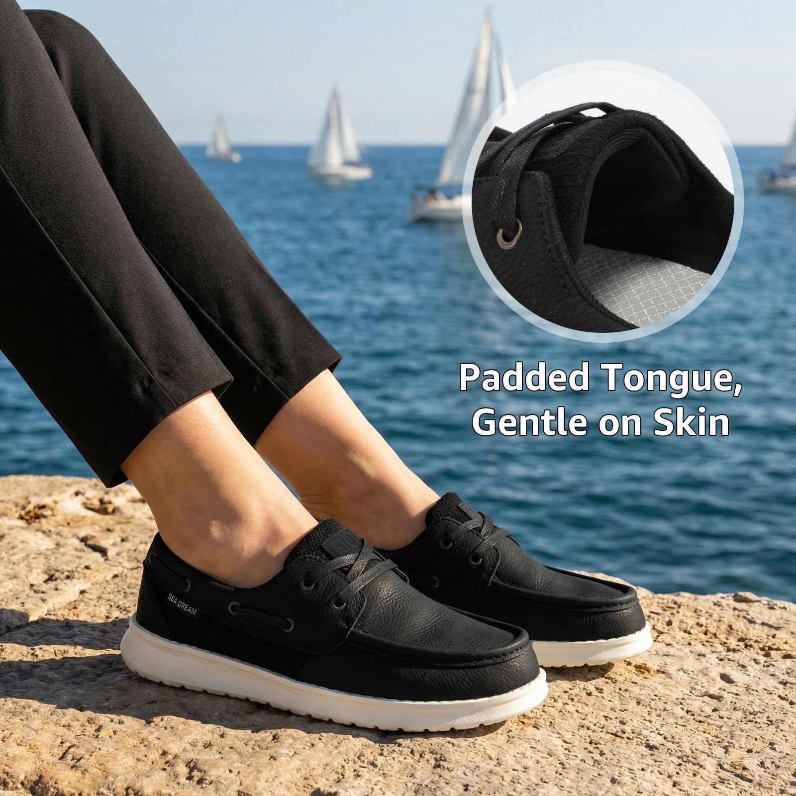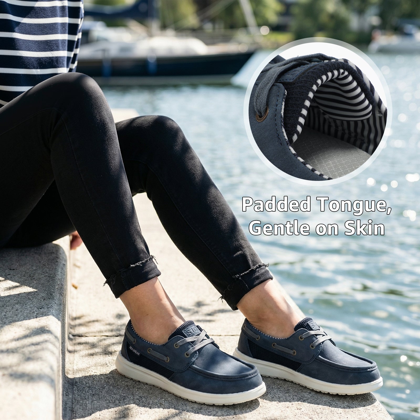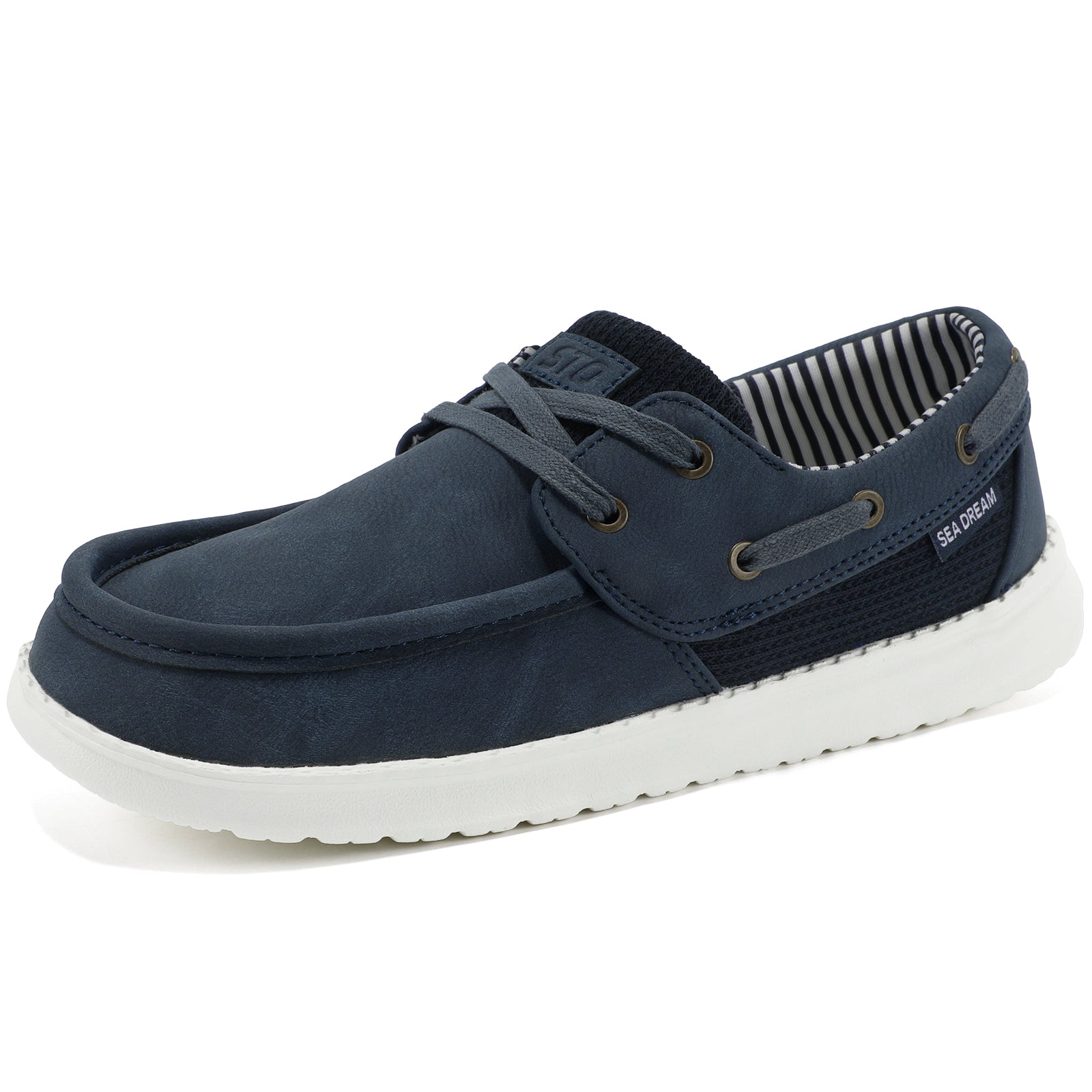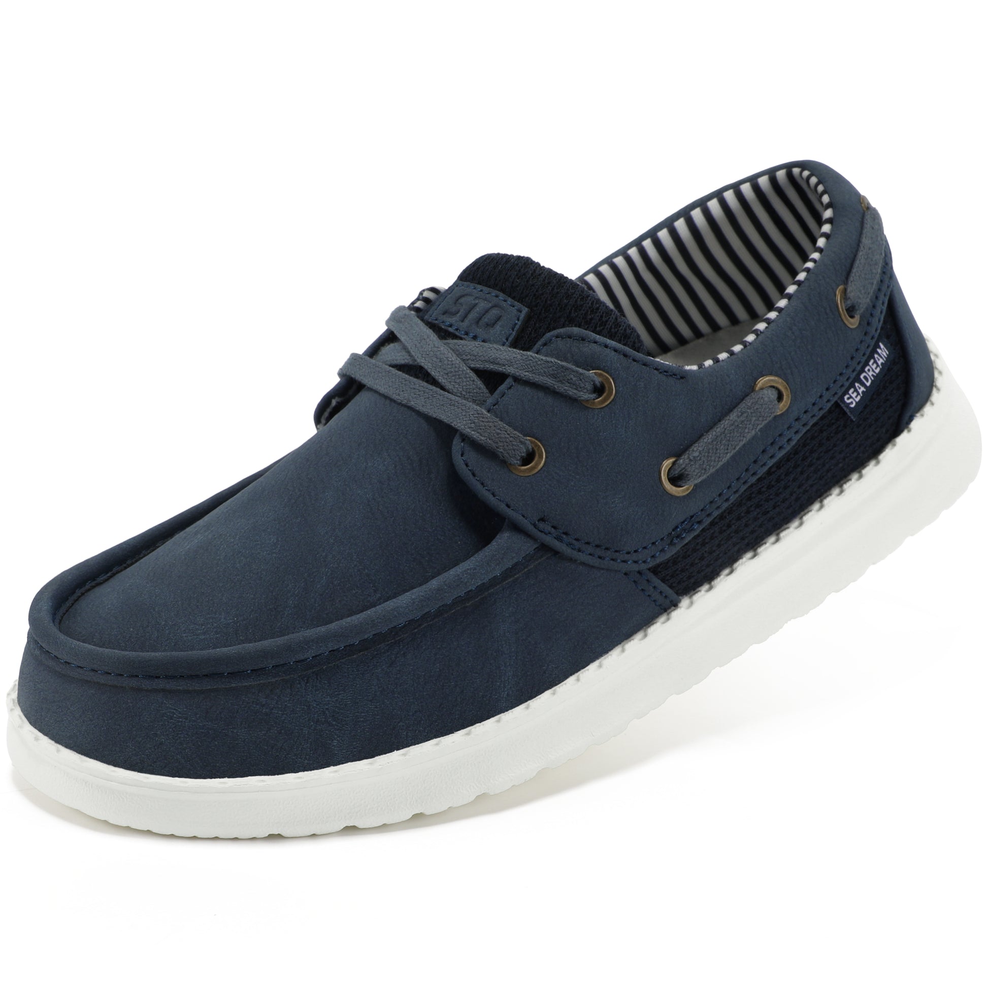 - Lightweight and Breathable Comfort: Weighing less than five ounces per shoe, these boat shoes are crafted with premium, soft materials for all-day comfort without weighing you down. Featuring a breathable mesh design on the sides, they enhance airflow, offering superior thermal comfort compared to traditional boat shoes, reducing strain and keeping your feet fresh during extended wear