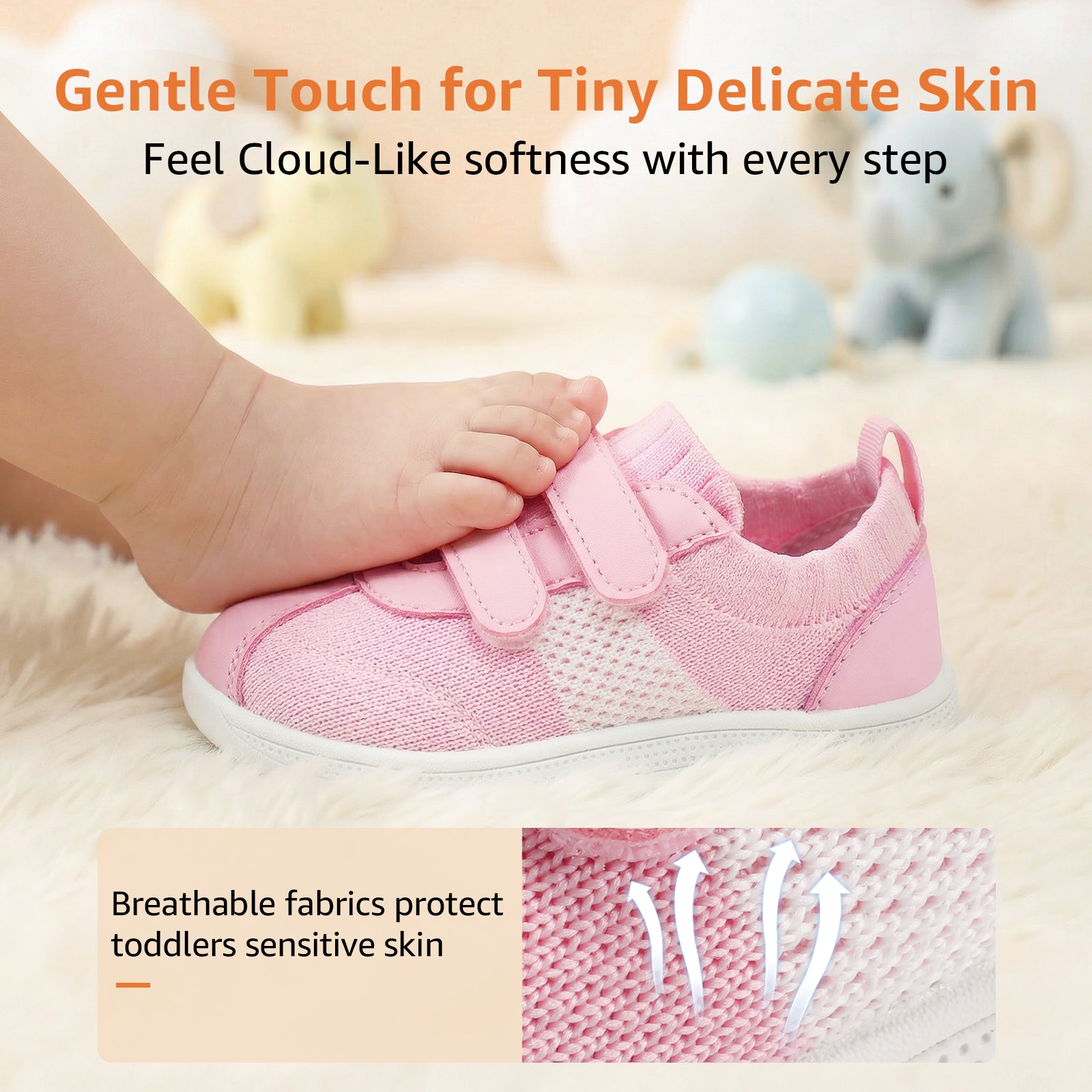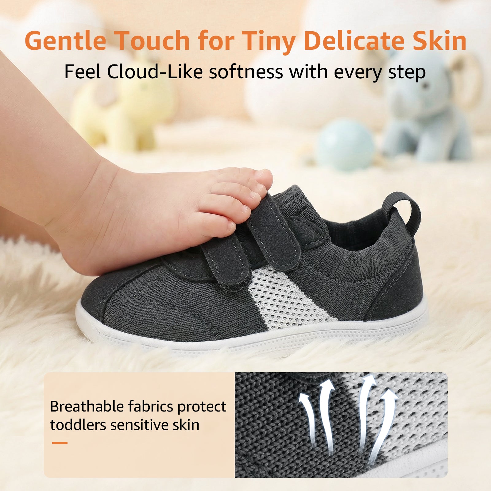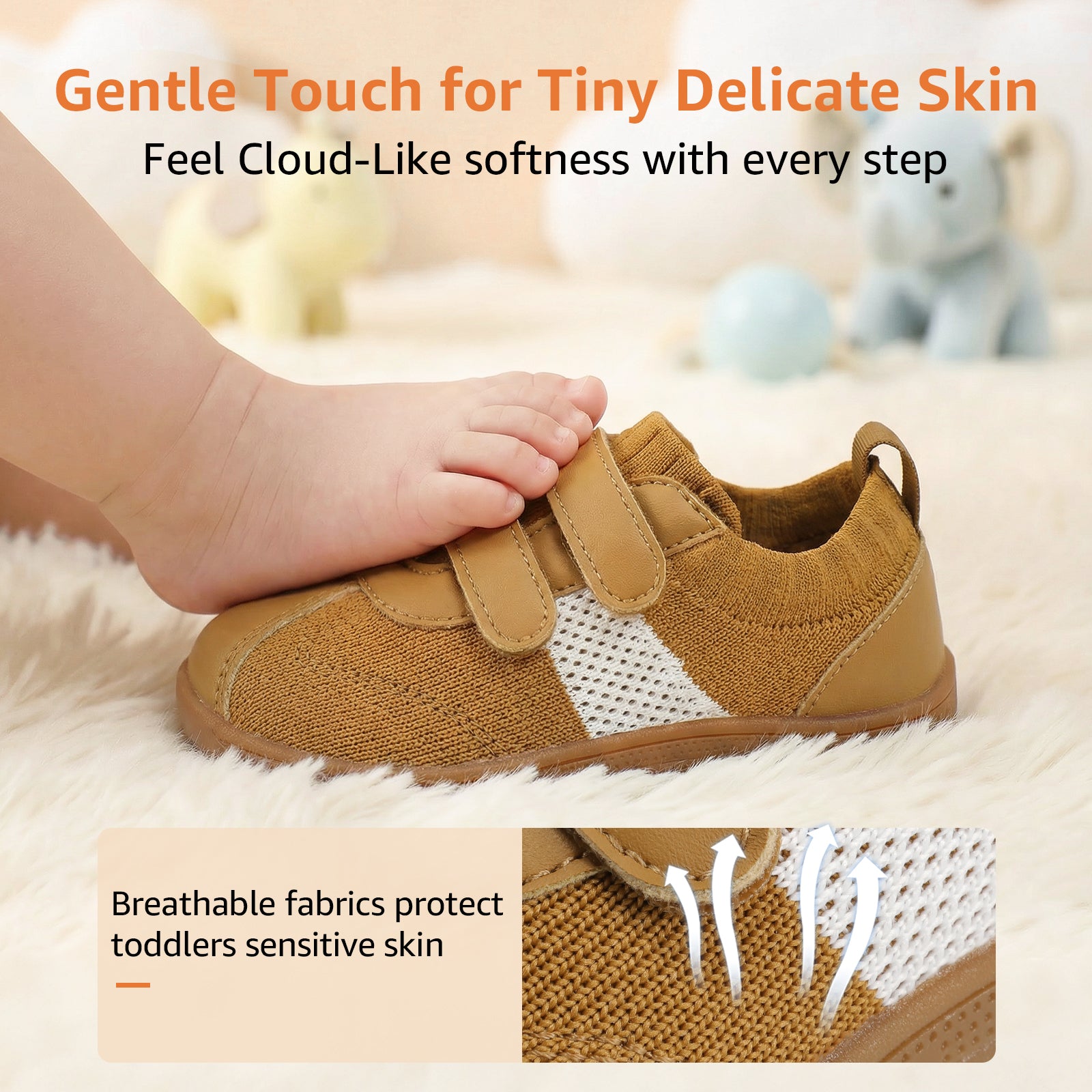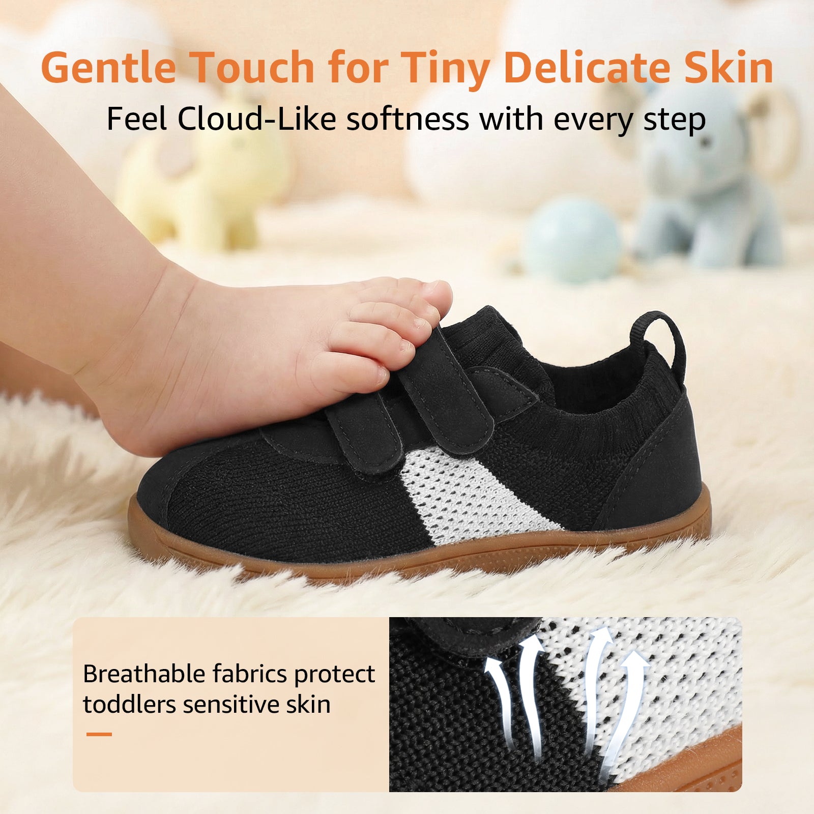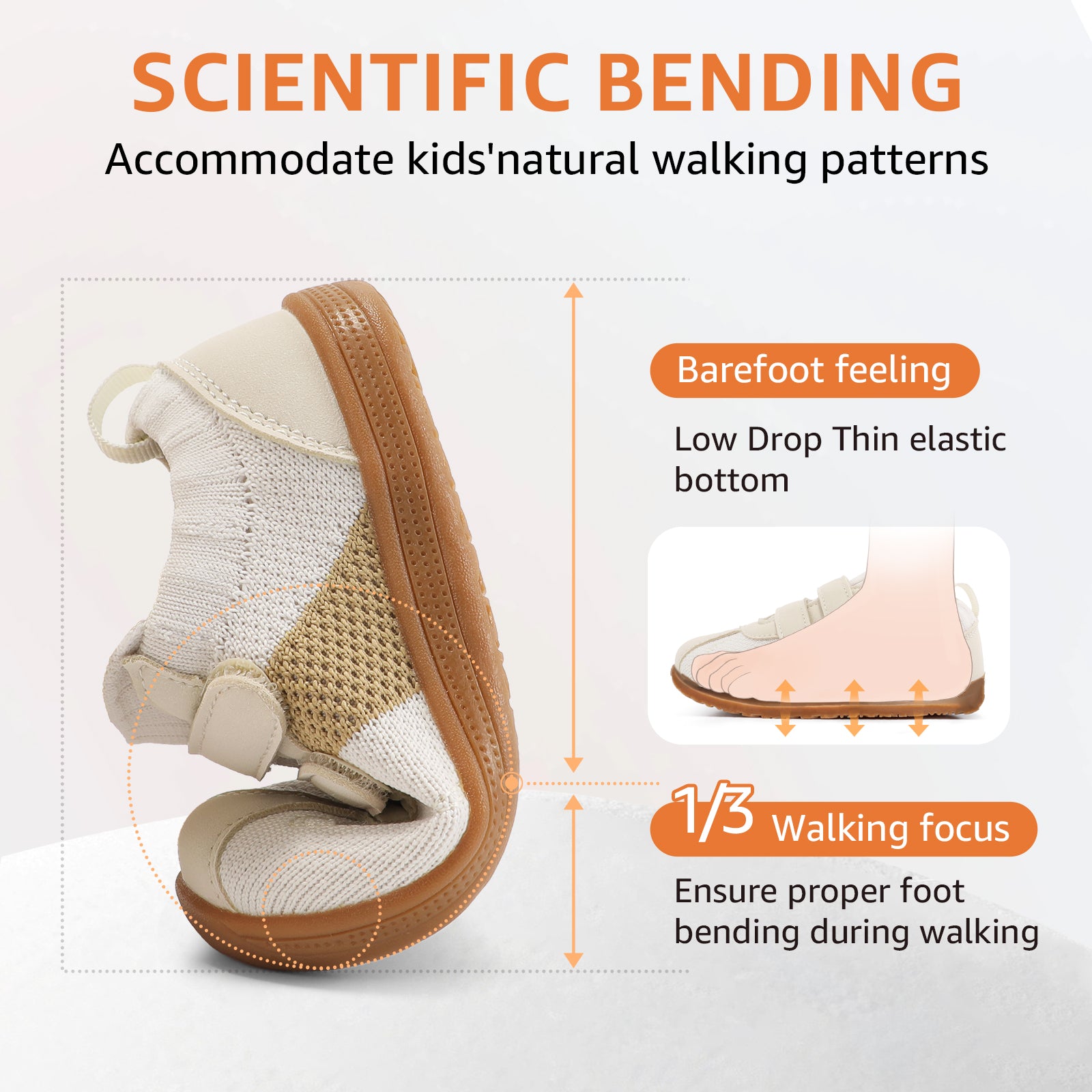 - [ Barefoot Zero Drop ]: Baby first walking shoes feature a flexible sole that bends at the 1/3 point to simulate barefoot walking, letting kids feel the ground. This natural flexibility enhances balance, coordination, and healthy foot development