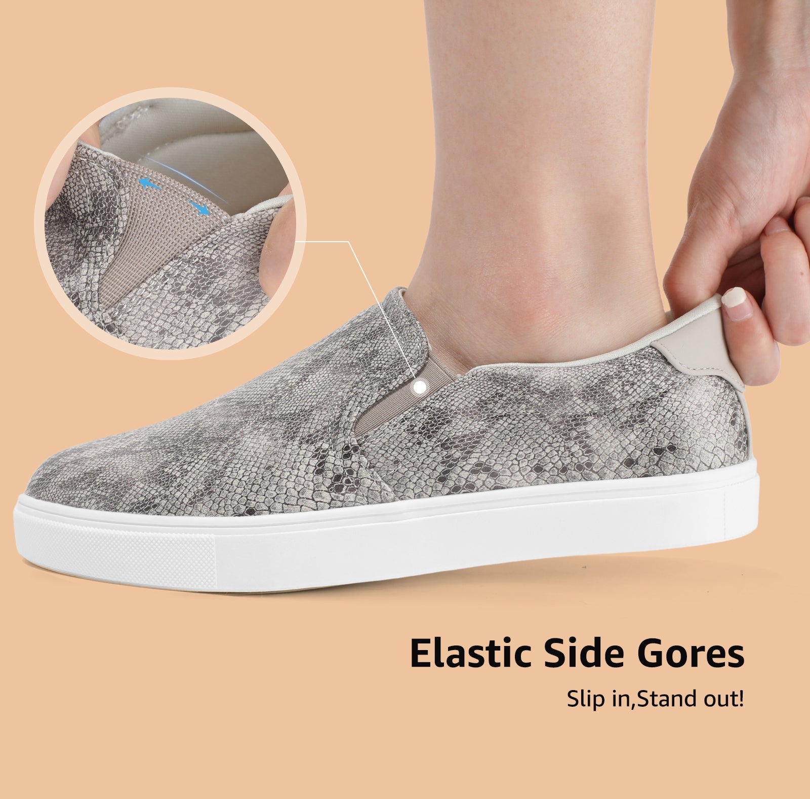 - [Quick Drying and Bouncy Insole]: Inside of these women's slip on sneakers feels like step on pillows. High bounce and sweat absorbing material give you a comfortable and dry wearing experience