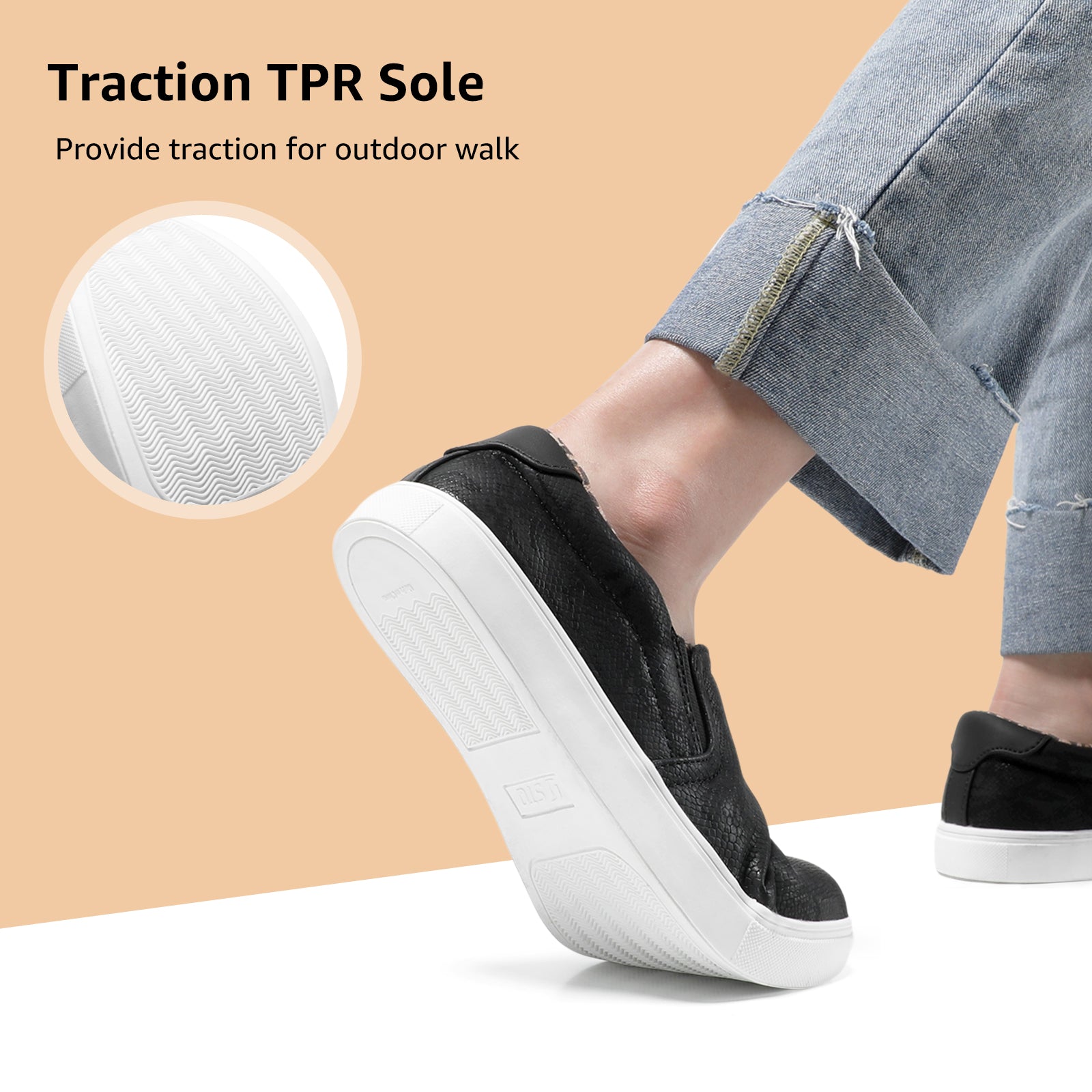 - [Soft Rubber Sole]: The women's slip on shoes with soft rubber sole and 2mm wavy grain for better traction