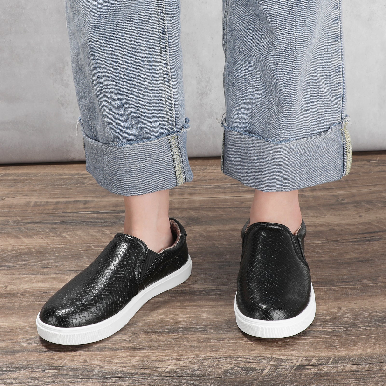 - [Made of 100% Vegan Faux Leather]: Casual women's loafers with soft fabrics, made of 100% vegan faux leather, soft and comfortable, solid color brings on-trend style to your look