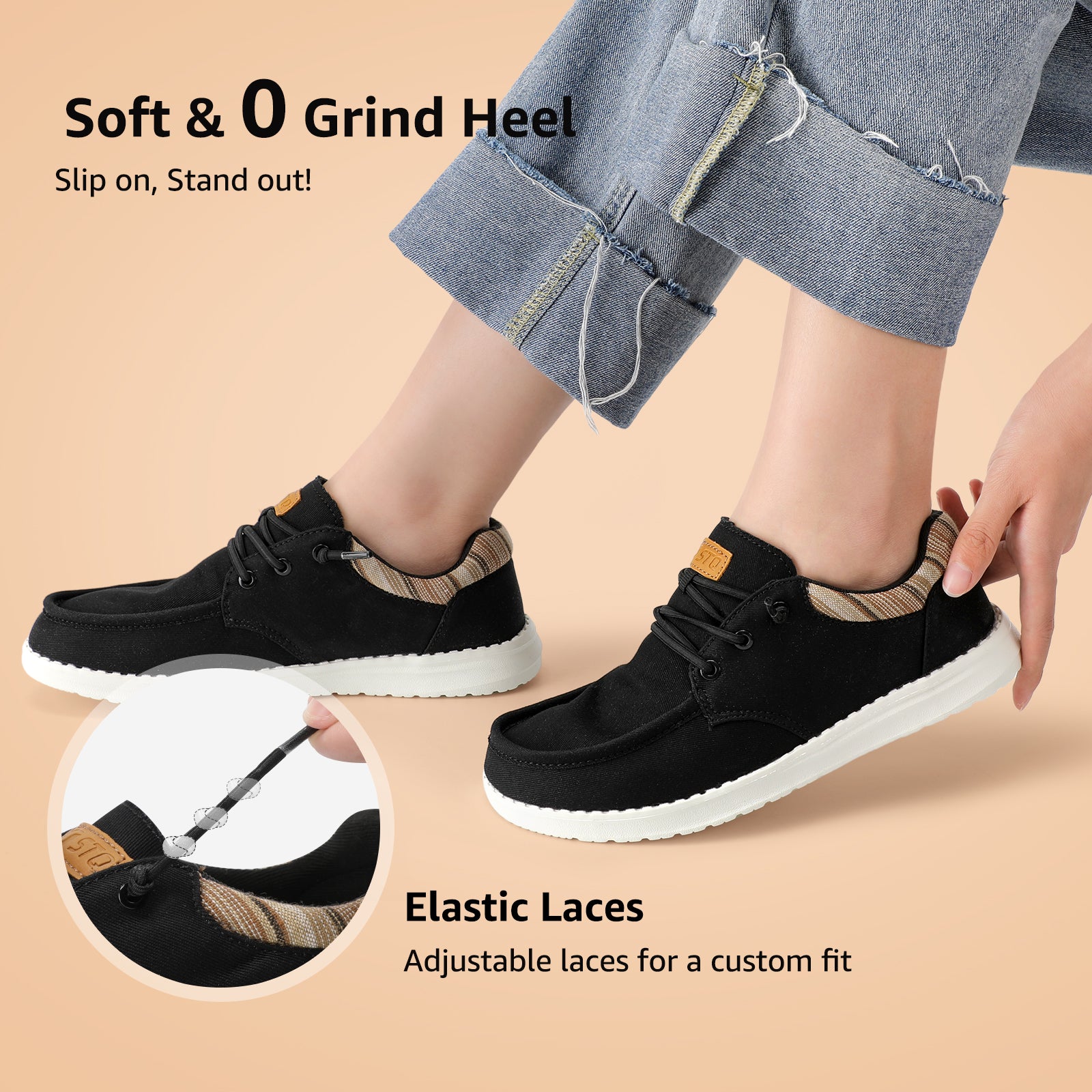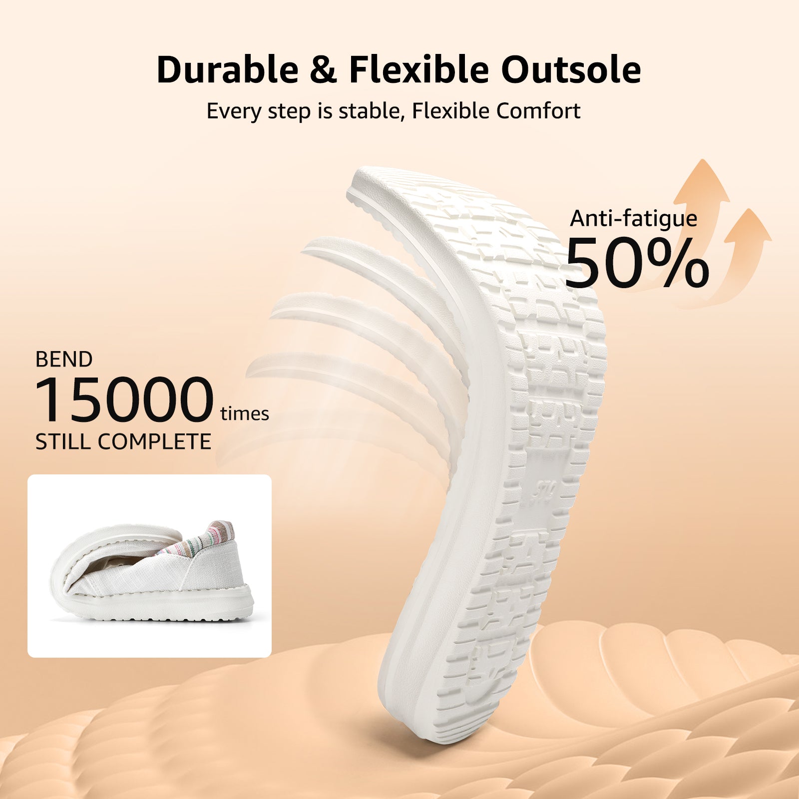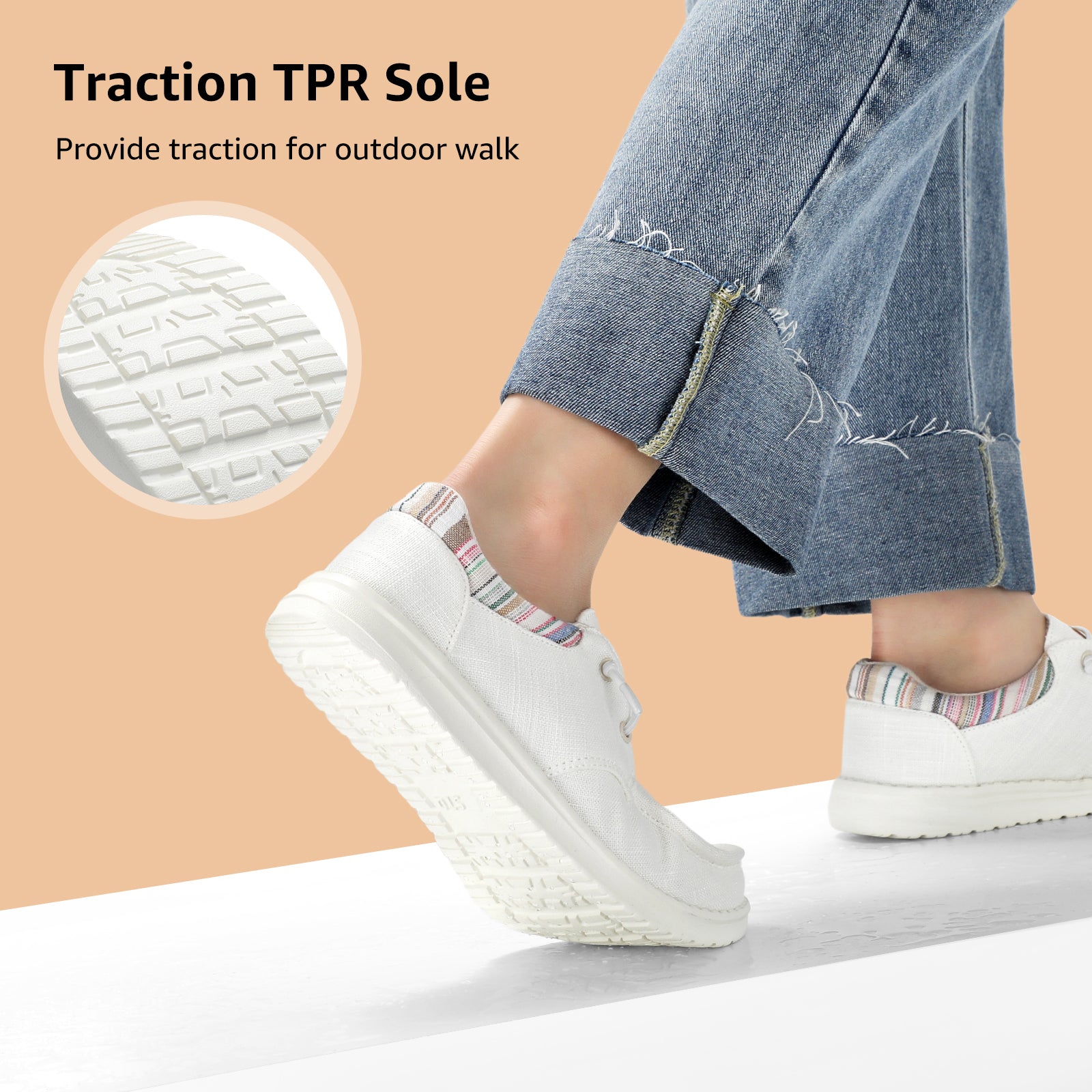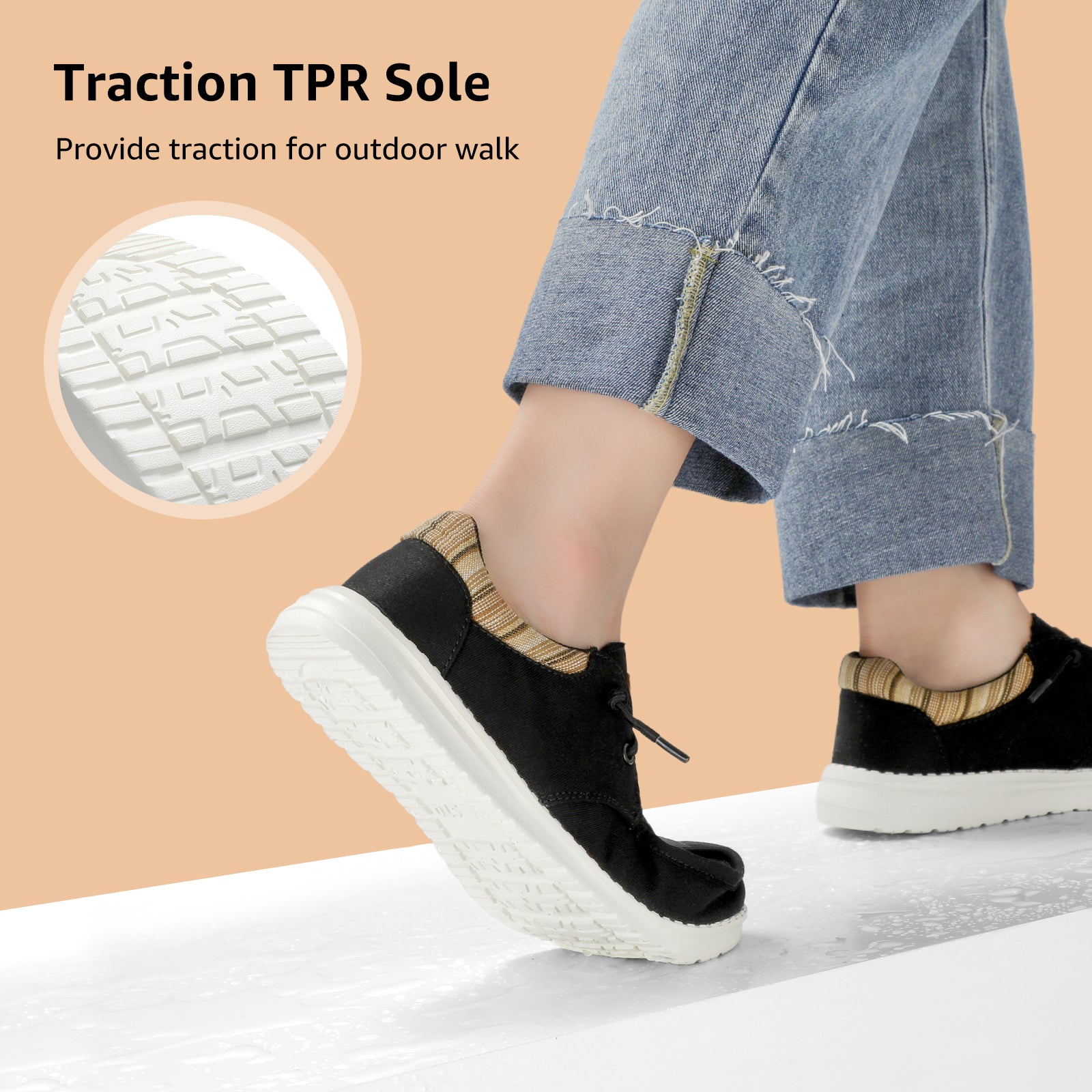- Improved Foot Comfort:Women's canvas shoes with removable arch support insoles for improved foot comfort.These shoes provide even weight distribution, realigning your body and reducing pressure on the feet.Ideal for long periods of walking/standing and for treating foot conditions such as plantar fasciitis, flat feet, pronation, bunions, arthritis, diabetes and Morton's neuroma.Comfortable all day