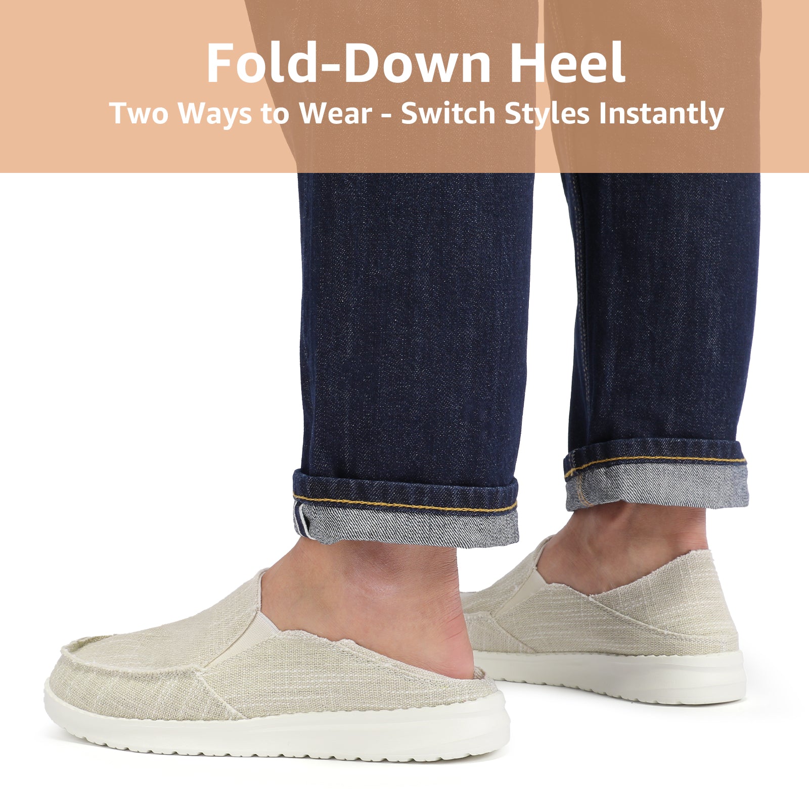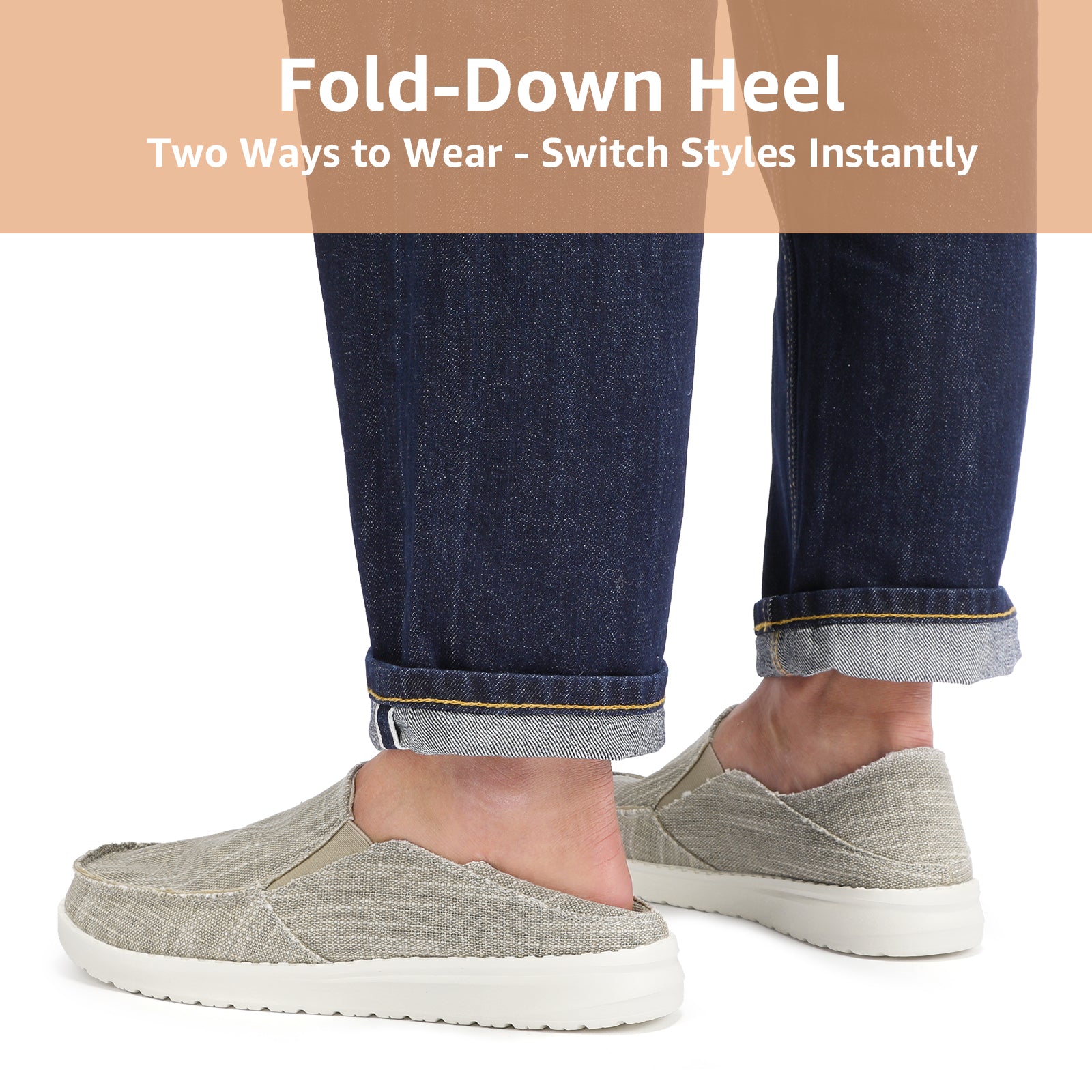 - CONVERTIBLE FOLDABLE HEEL: Designed with a soft, collapsible heel counter, these shoes offer two wearing styles in one. You can wear them as standard slip-on loafers for a secure fit or fold the heel down to wear them as backless slippers. Perfect for easy on-and-off convenience during busy mornings or quick errands