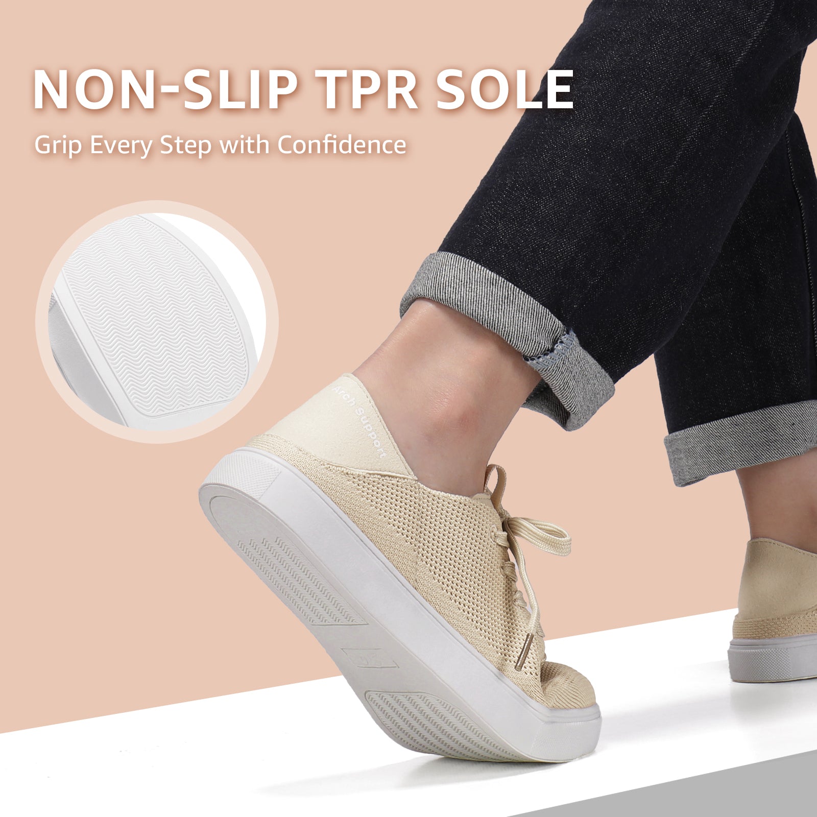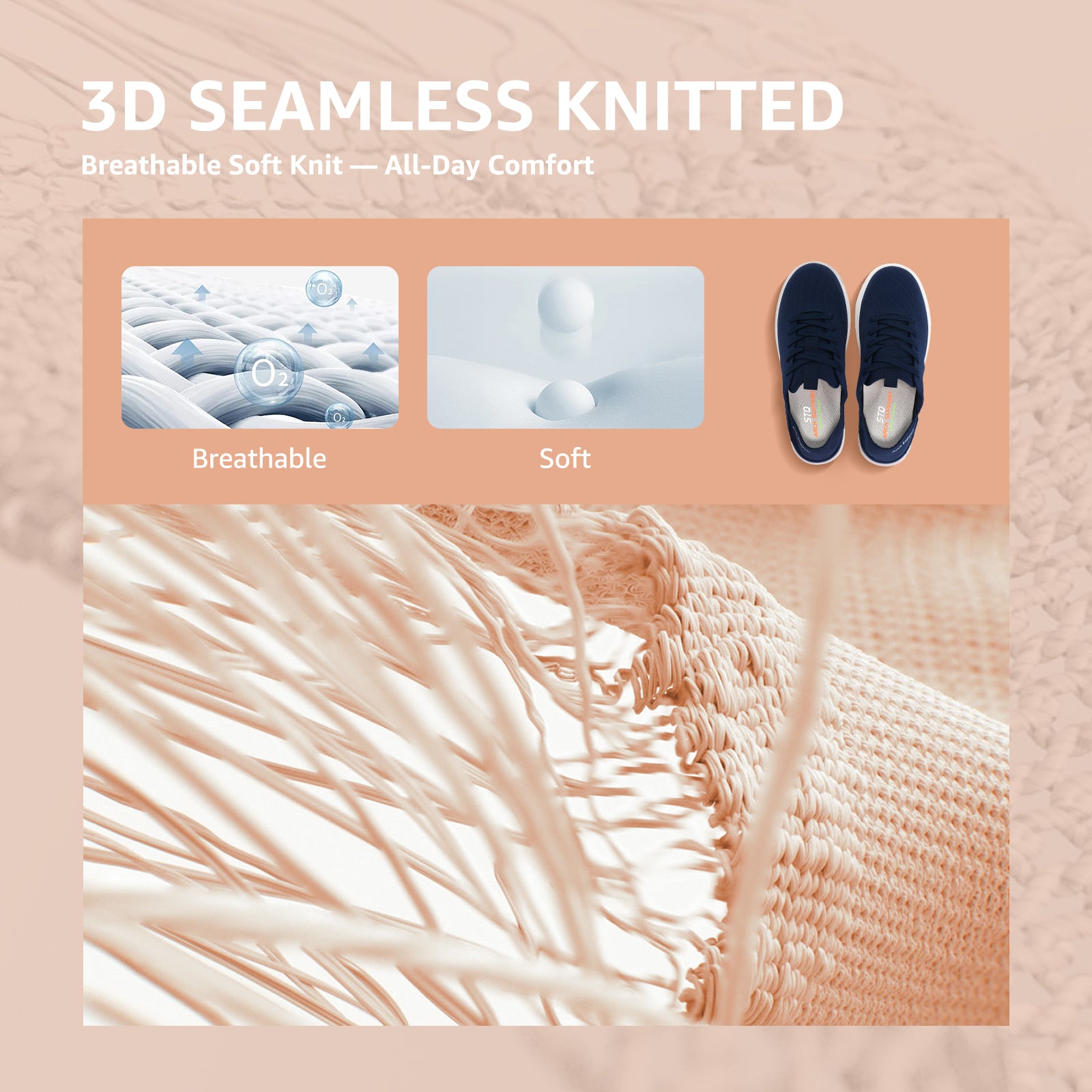 - [ BREATHABLE KNIT COMFORT ]: Stay cool and dry throughout the day with our soft, breathable knit upper. These women's slip-on shoes feature a lightweight fabric that wraps your foot in comfort, ensuring ventilation during long walks, warm days, or extended wear without sacrificing style