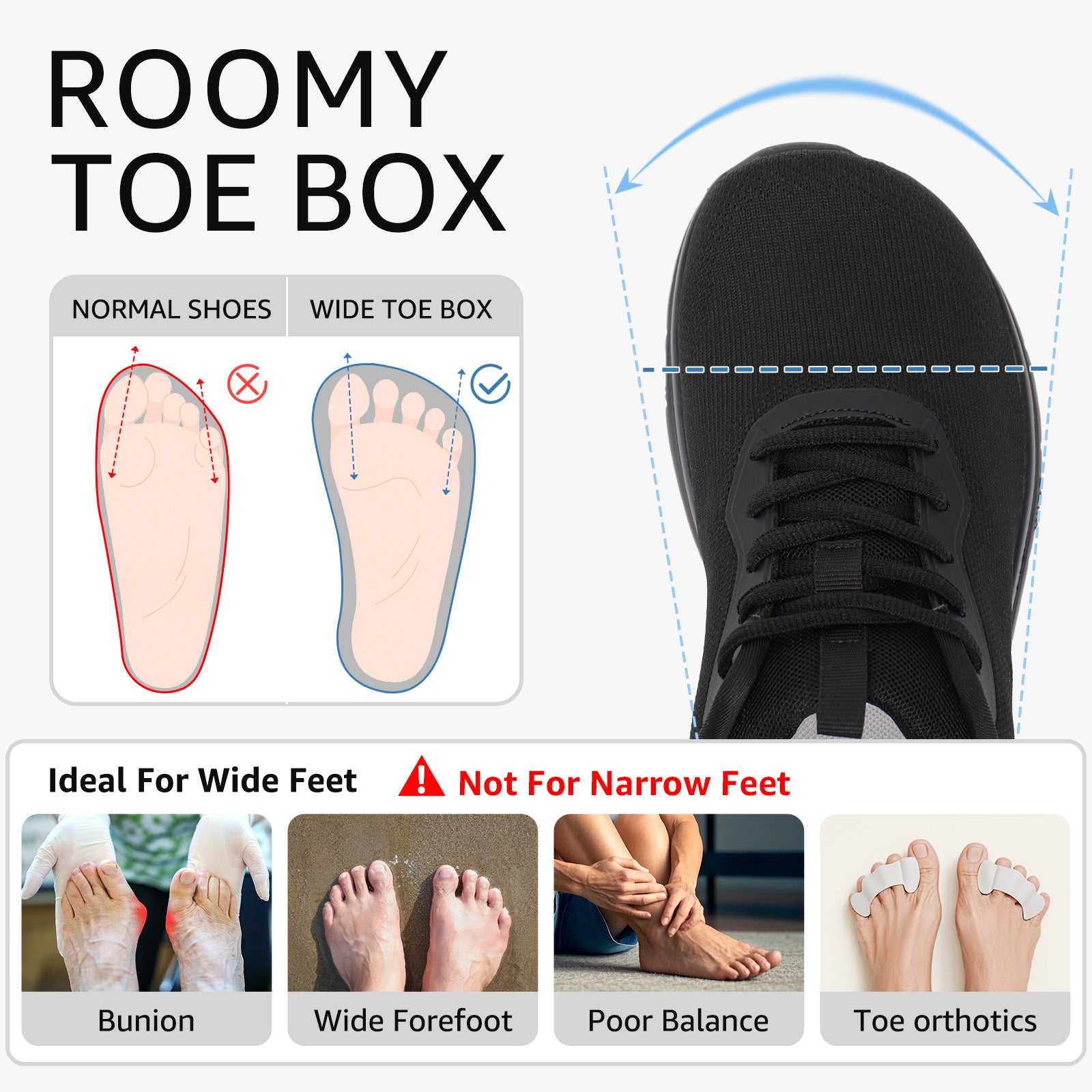 - [Respect Foot Health] Wide toe box walking shoes women allow toes to splay naturally, reducing abnormal stress on bones and joints while preventing and alleviating foot conditions(bunions, hammertoes), providing all-day comfort