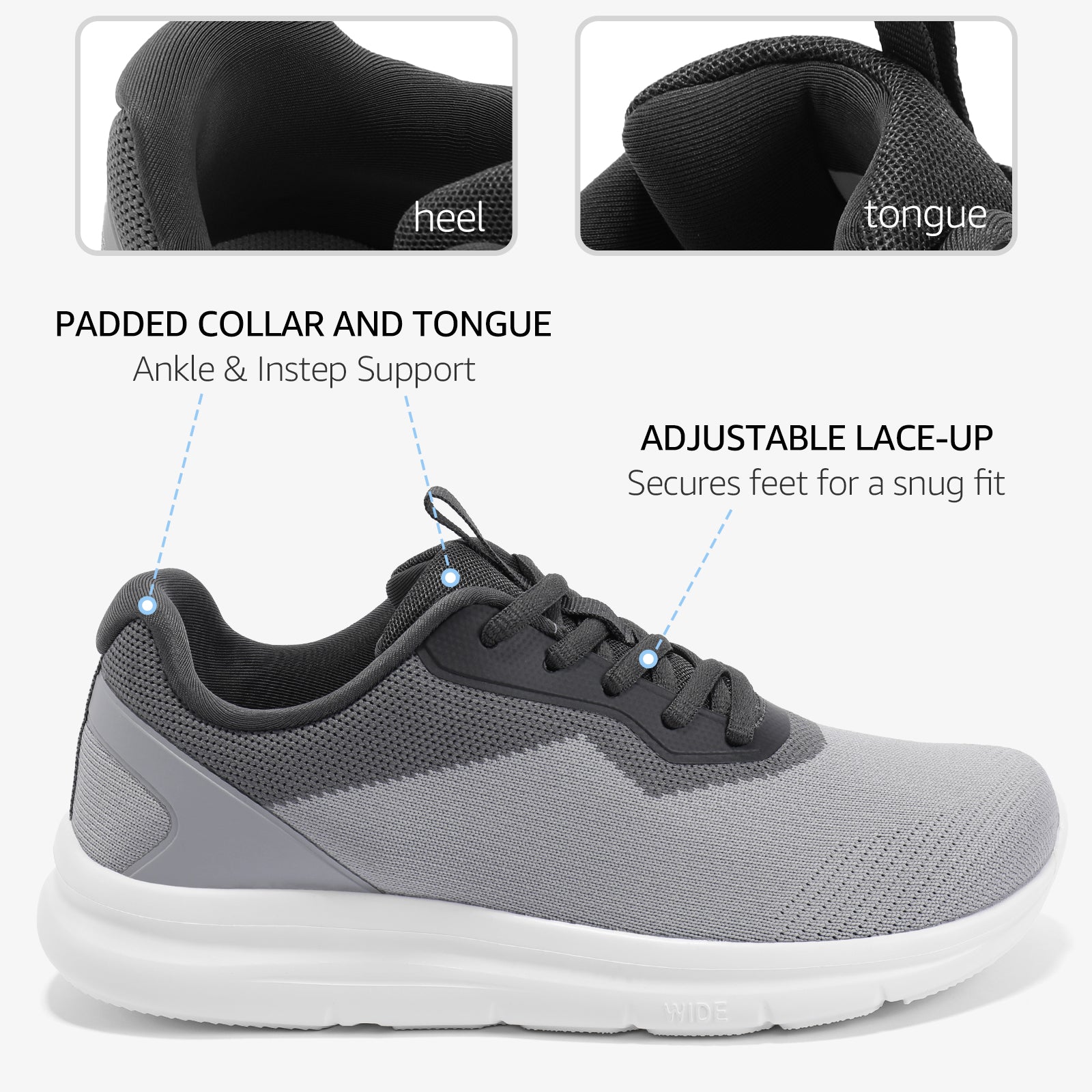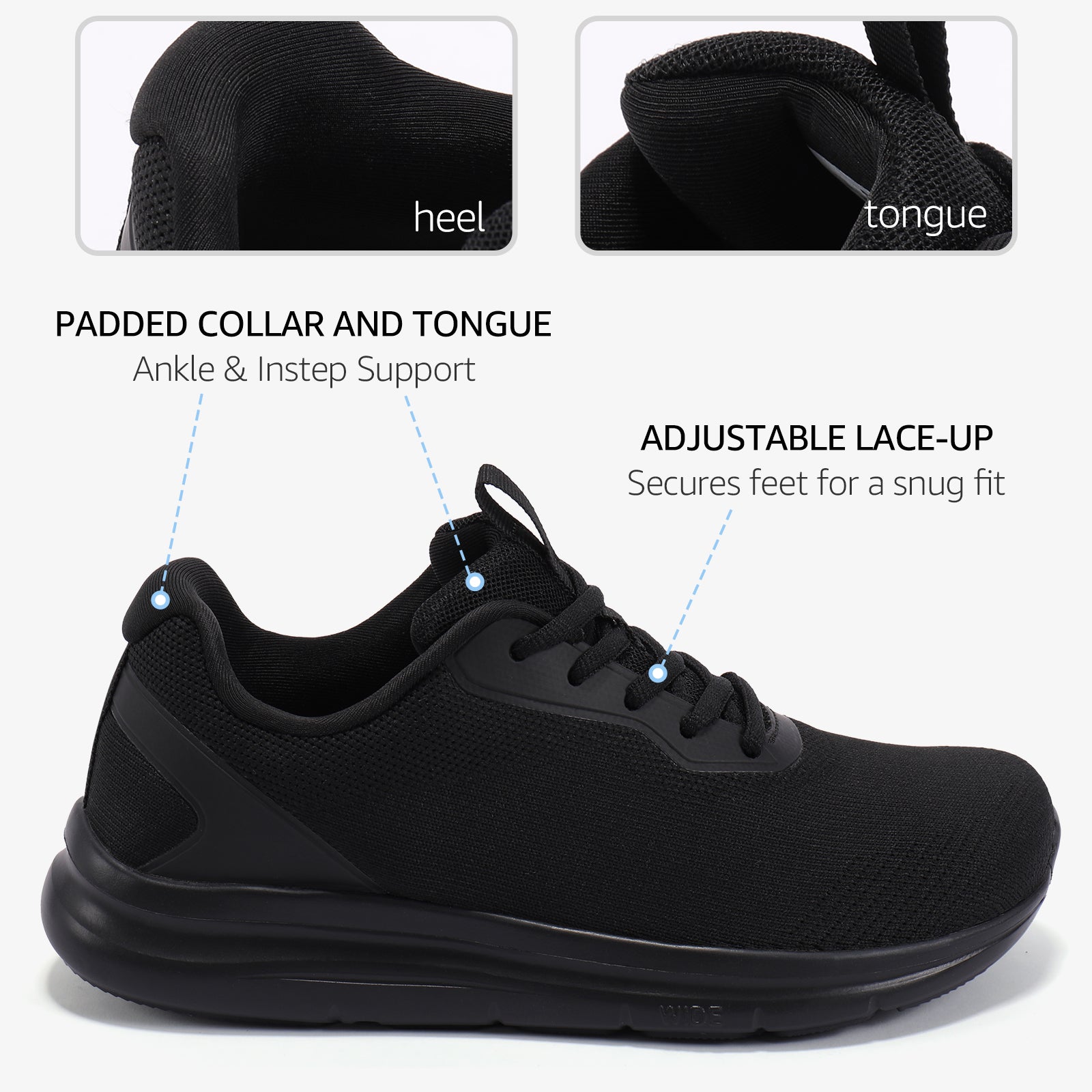 - [All-around Support] Featuring a padded ankle collar and tongue to avoid slipping and blisters, these wide tennis shoes for women have a reinforced heel stabilizer that locks the heel in place. This triple-support system reduces fatigue, enhances stability