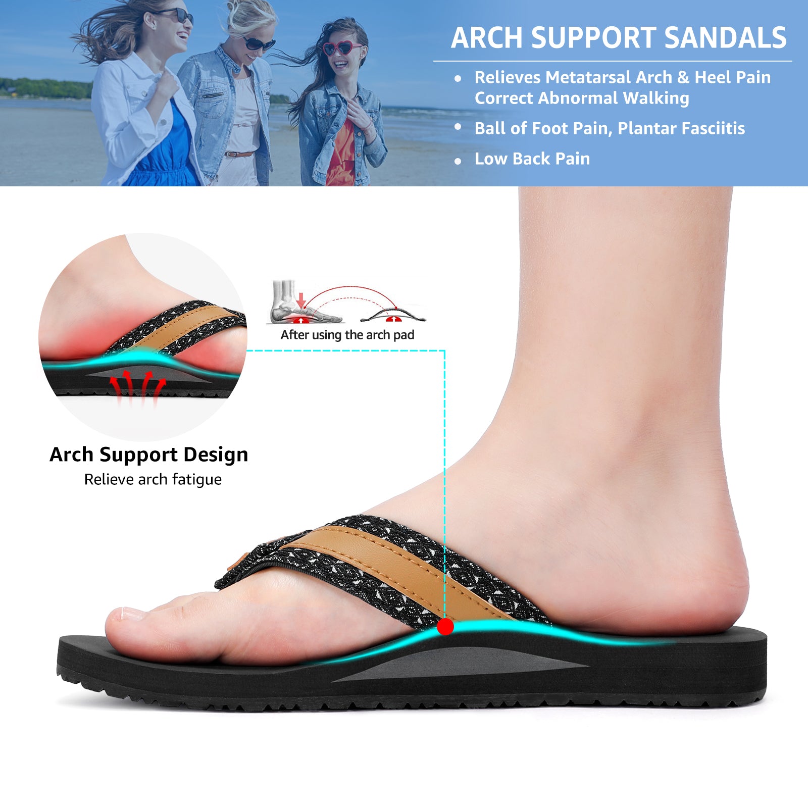STQ Orthopedic Flip Flops for Women丨Adjustable Beach Sandals with Arch Support for Plantar Fasciitis Relief