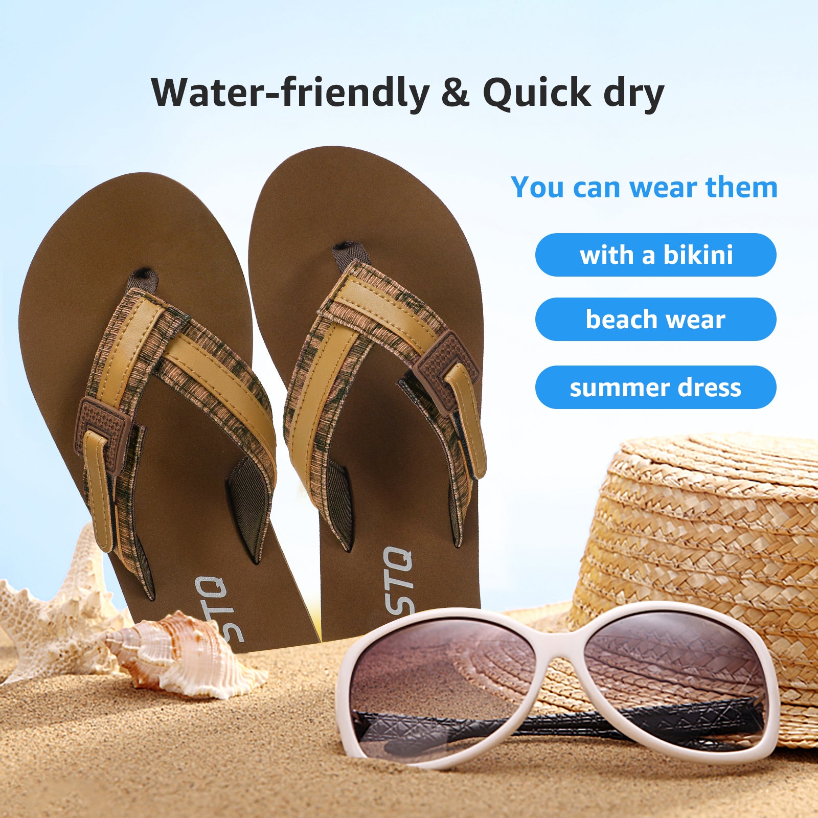 - Instant Comfort Lasting Protection:No break-in needed.STQ flip flops offer immediate comfort with skin-friendly straps.The protective toe post ensures a snug fit without discomfort, and the tear-resistant bottom provides lasting wear