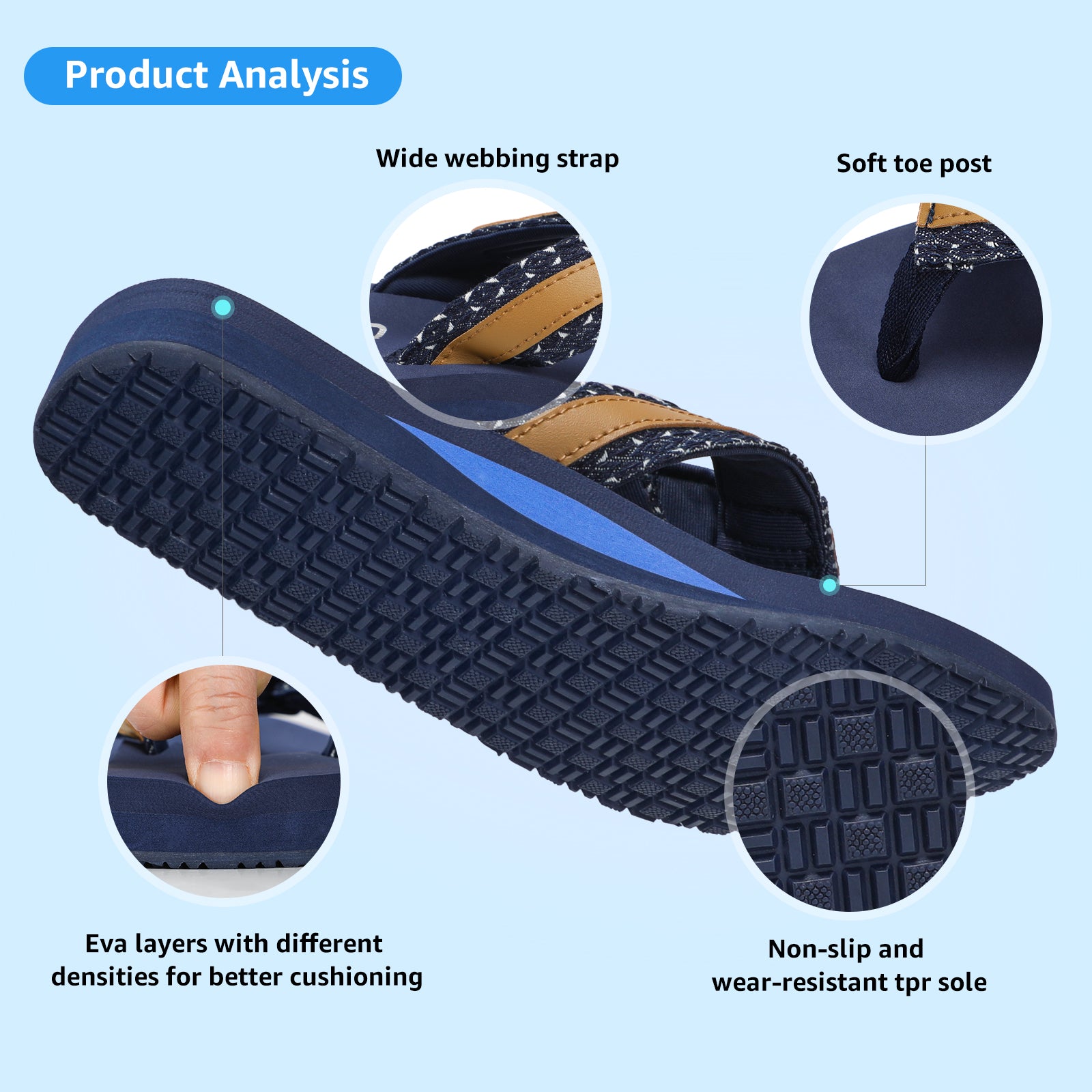 - Adjustable Straps Cushioned Comfort:With adjustable straps and a cushioned sole, our flip-flops offer a custom fit and superior comfort.Easily adapt to any foot swelling throughout the day for all-day comfort