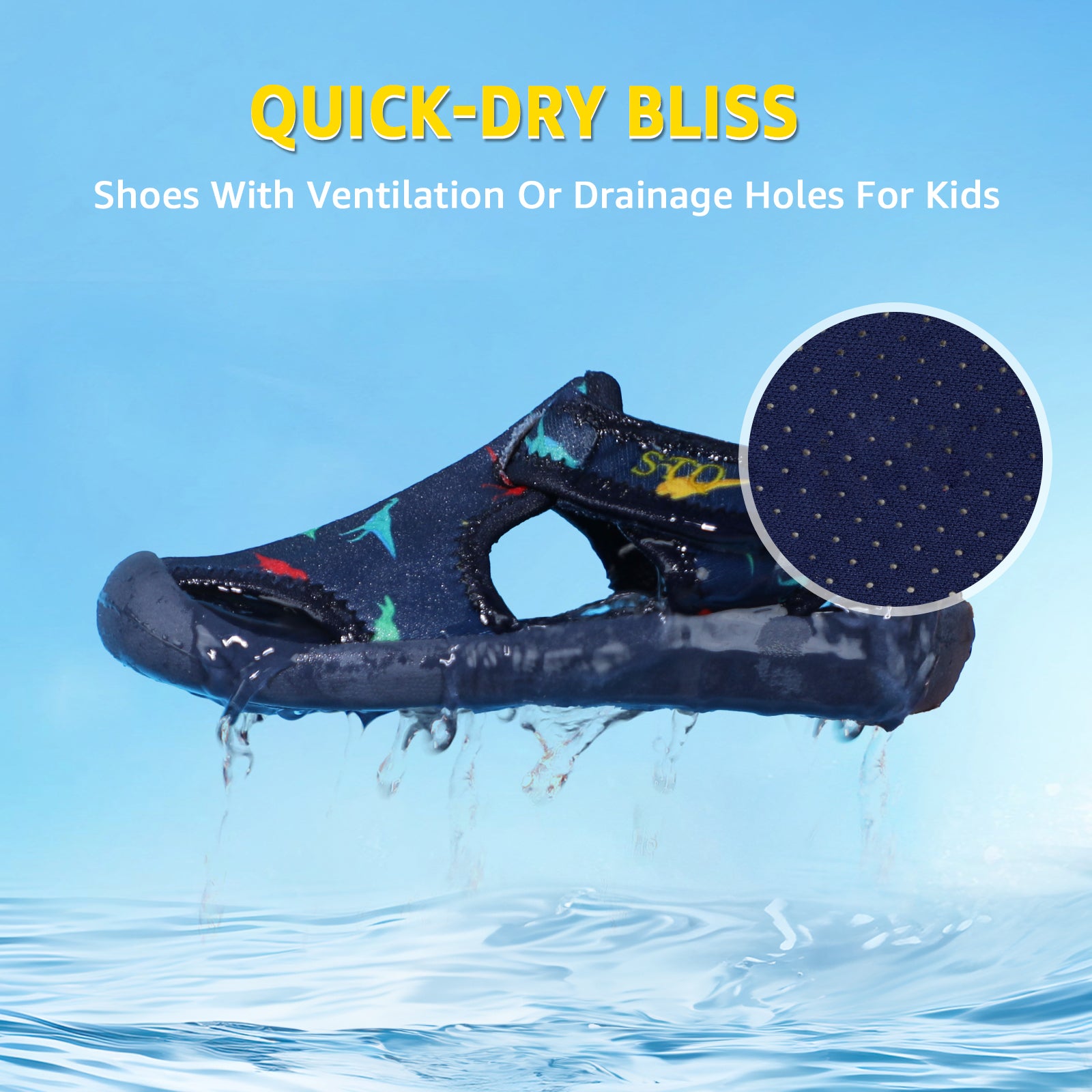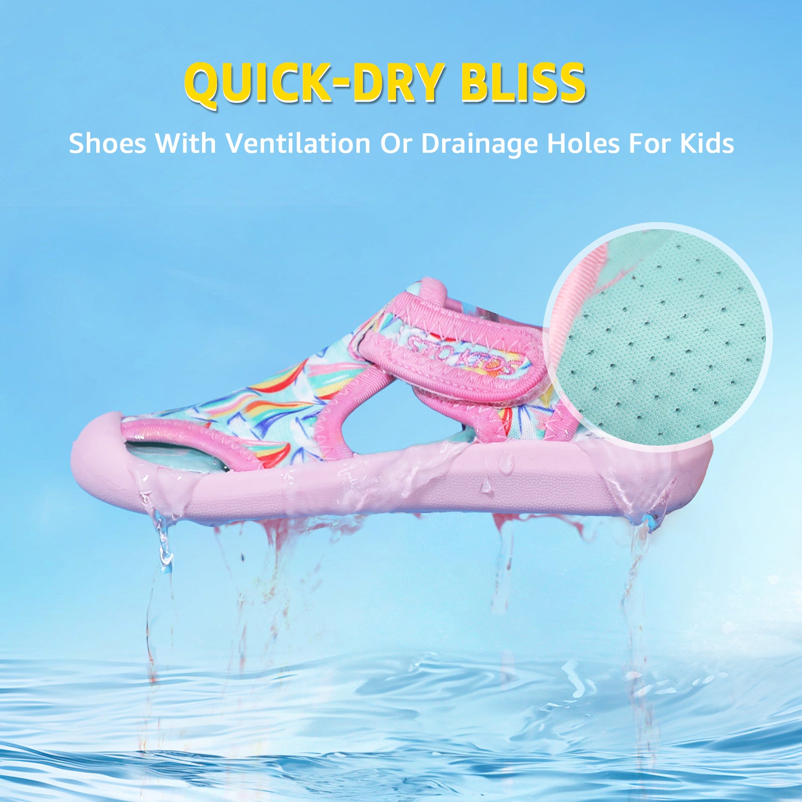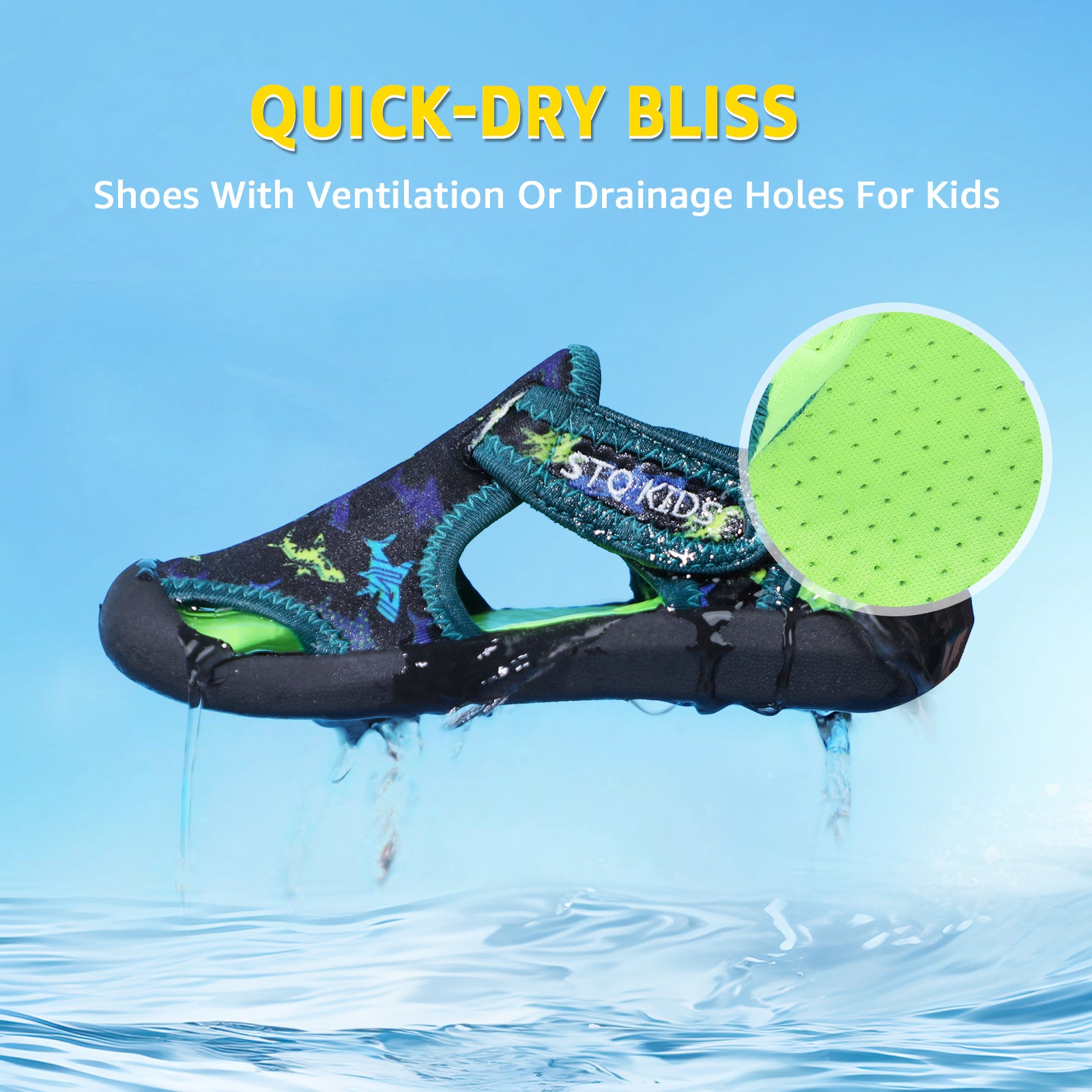 - Material:The upper made of high stretch fabric with good breath ability and quick drying,give your kids comfortable feel during beach play or water sports