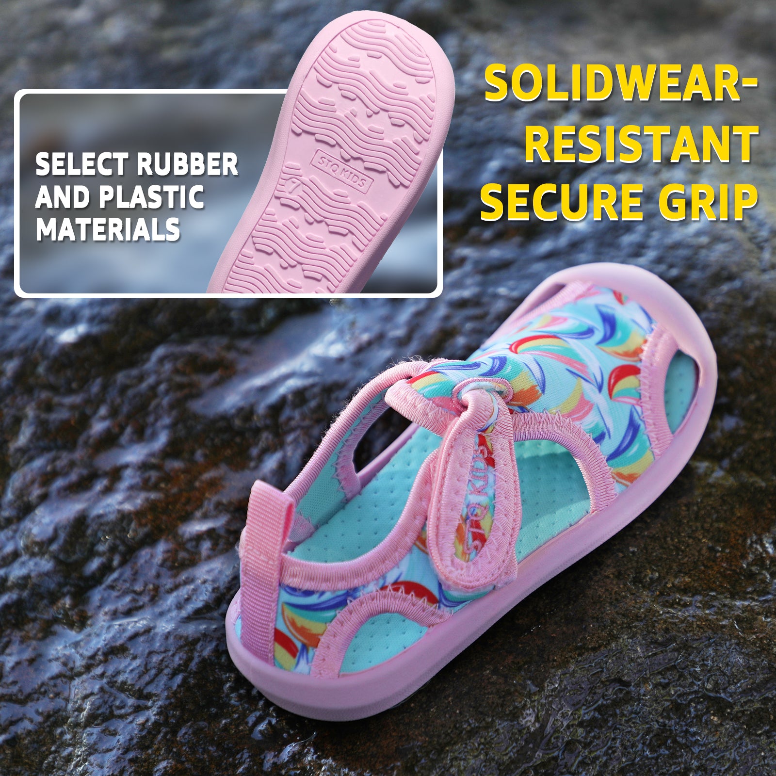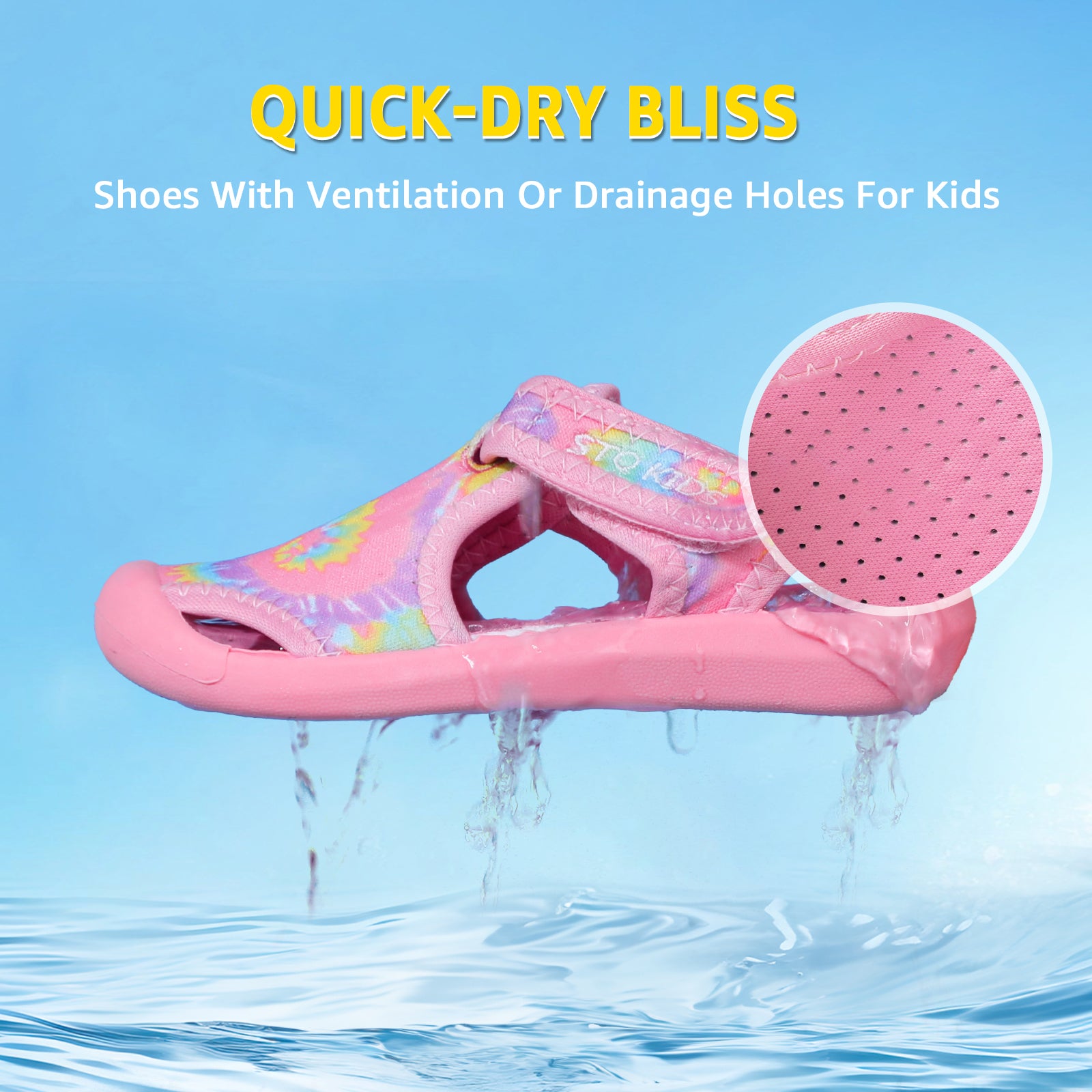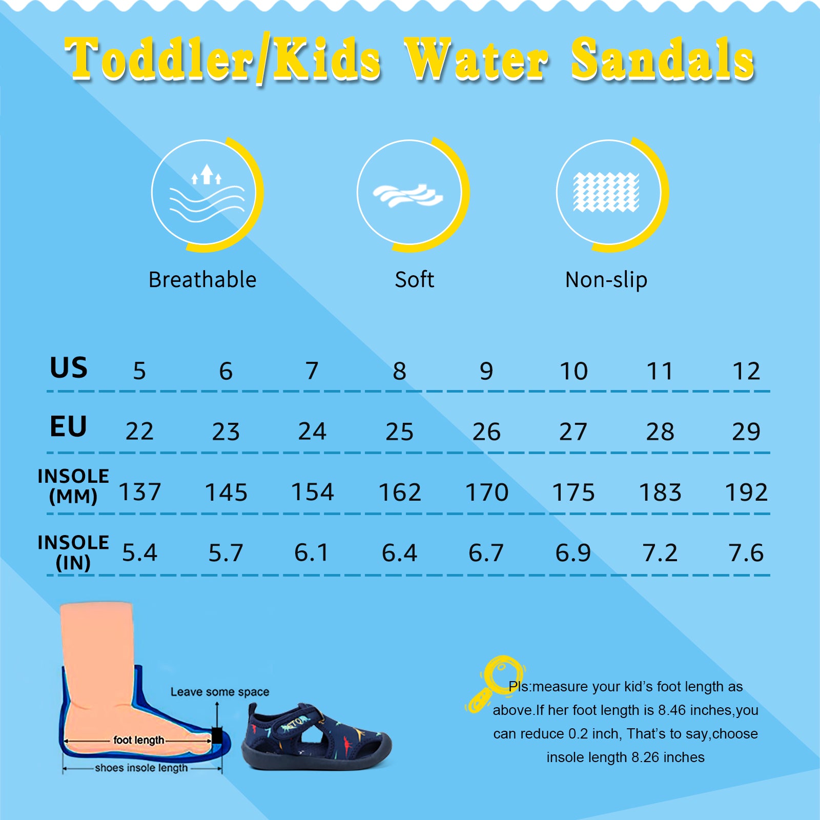 - Material:The upper made of high stretch fabric with good breath ability and quick drying,give your kids comfortable feel during beach play or water sports