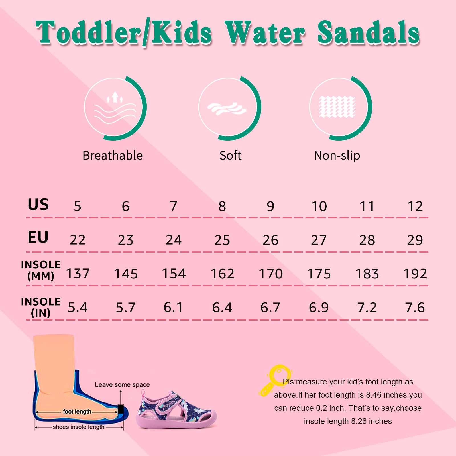 - Non Slip:Flexible thick rubber outsole provides excellent shock absorption performance and let your kid move freely