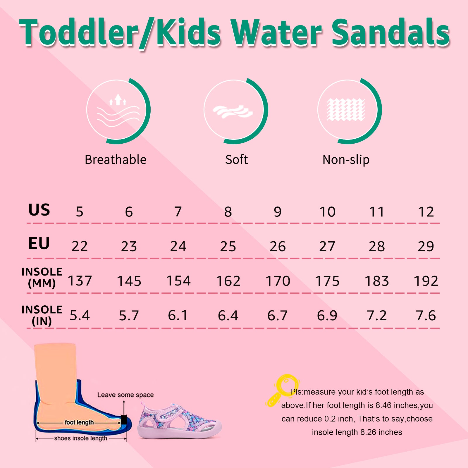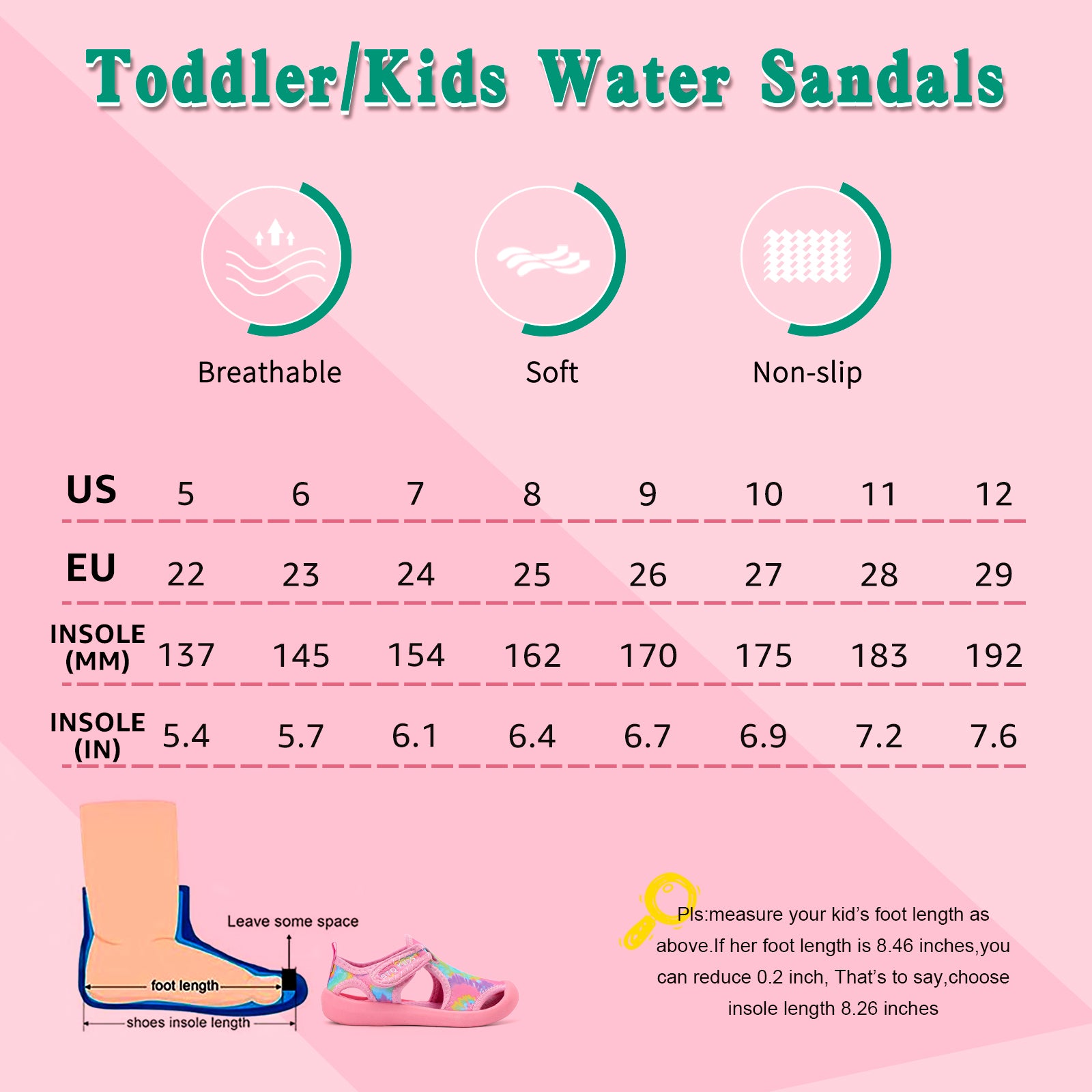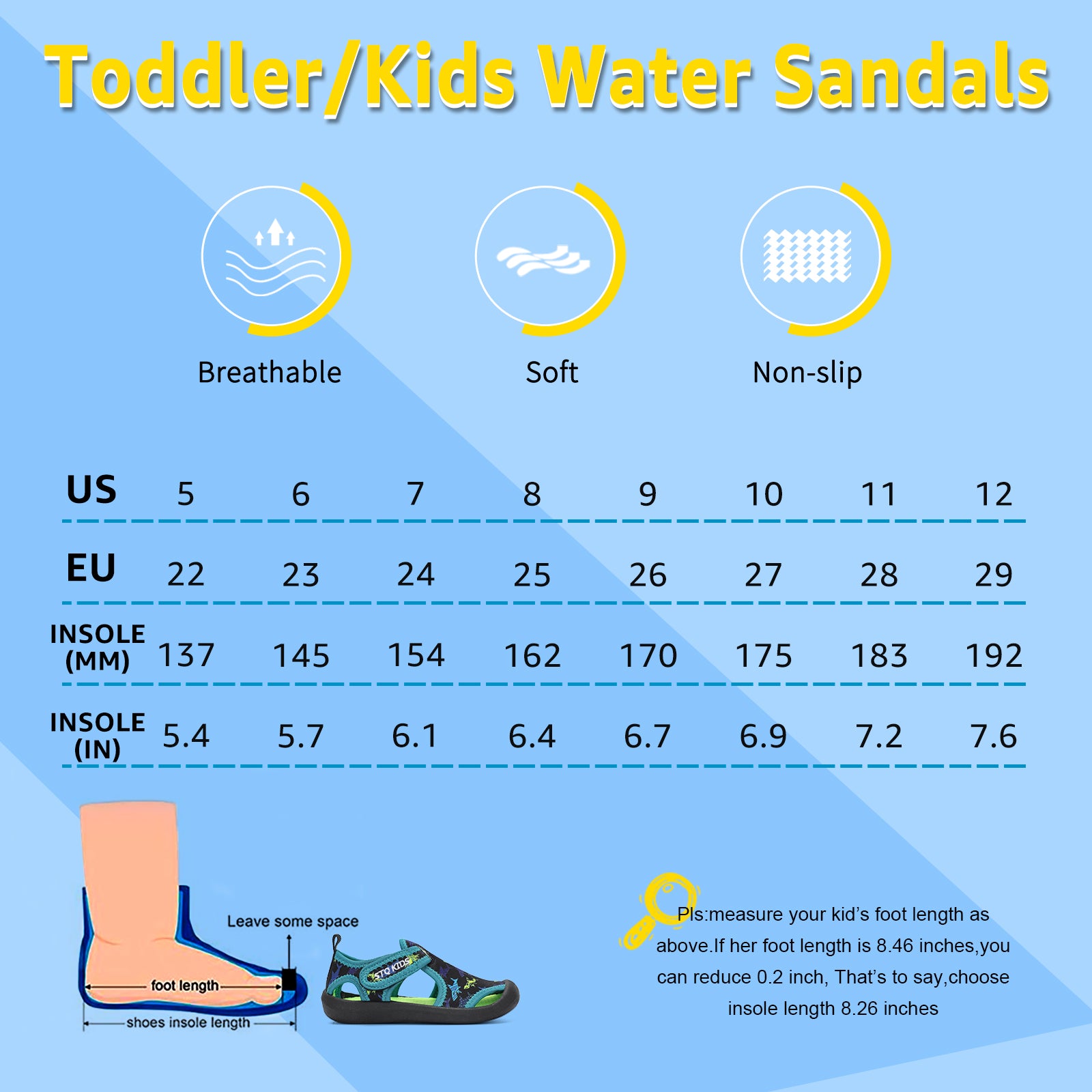 - Convenient Design:Hook-and-loop closure and closed-toe design makes them easy to slip on and pull off,reducing hurt caused by collision