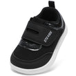 - [ Easy to Wear ]: Toddler wide toe box shoes with adjustable hoop & loop, convenient for parents help kids wear walking shoes, also easy for children on & off by themselves. Fixed tongue, not come loose. Great choice for busy parents give to children