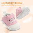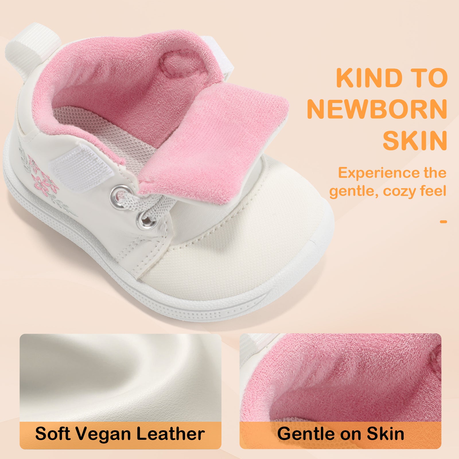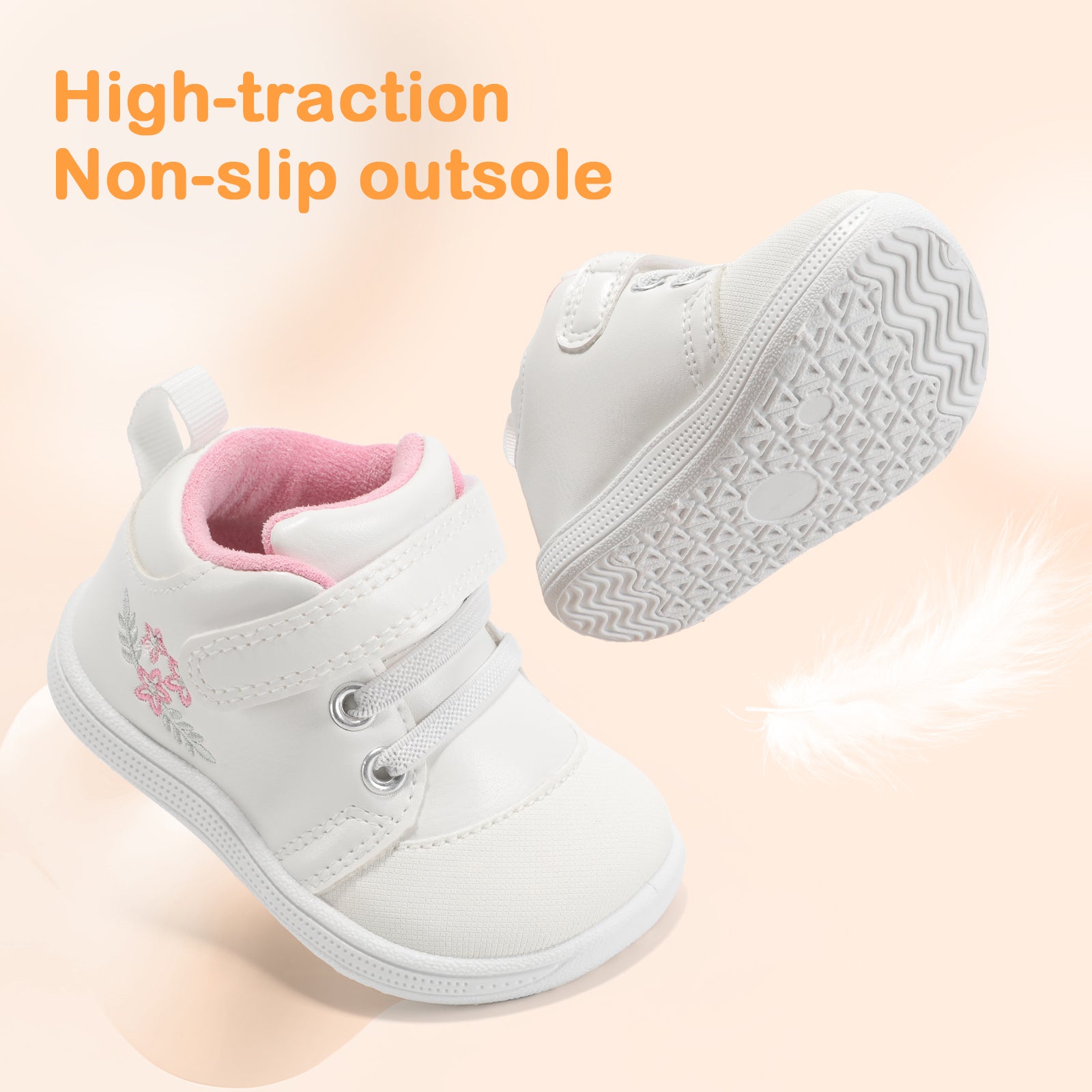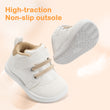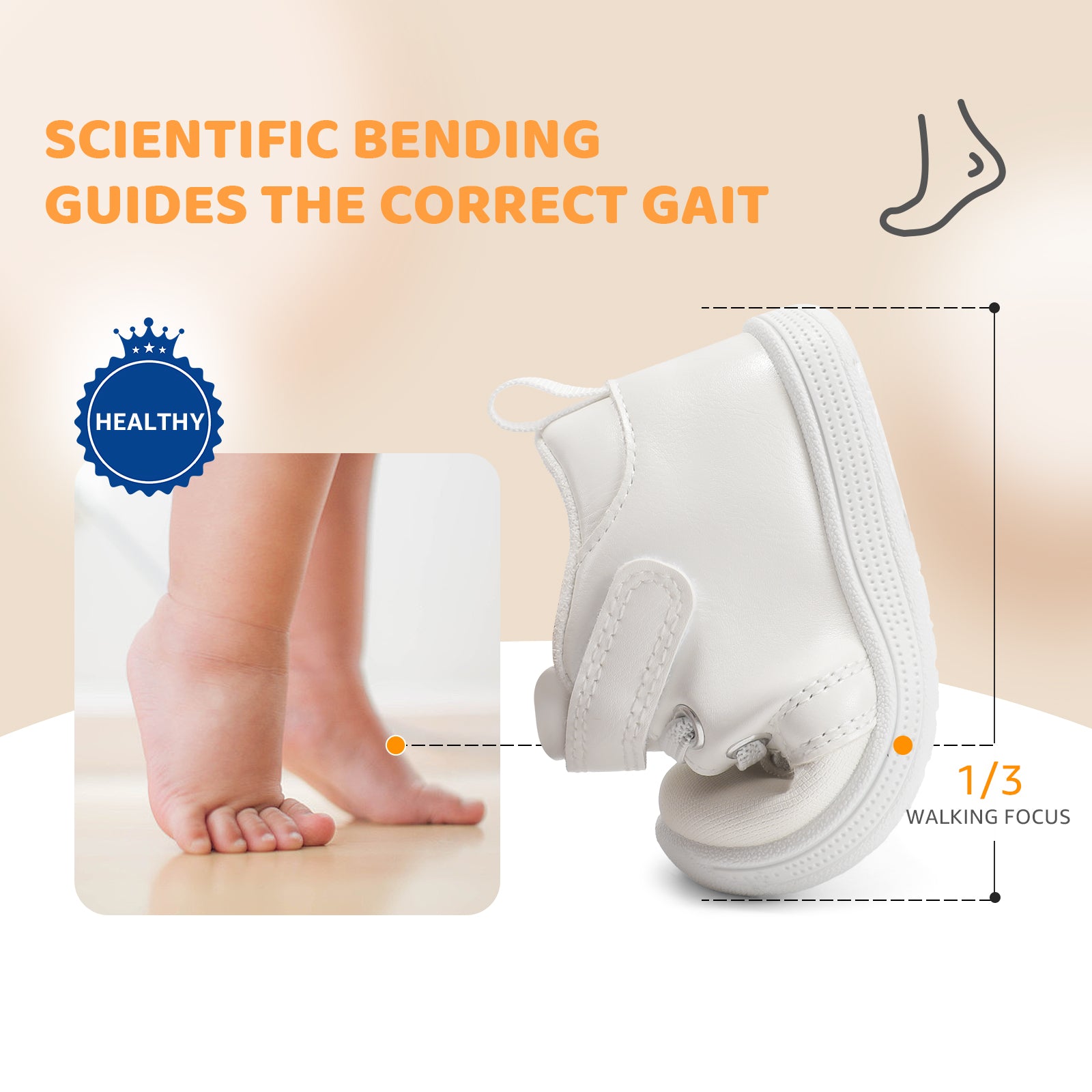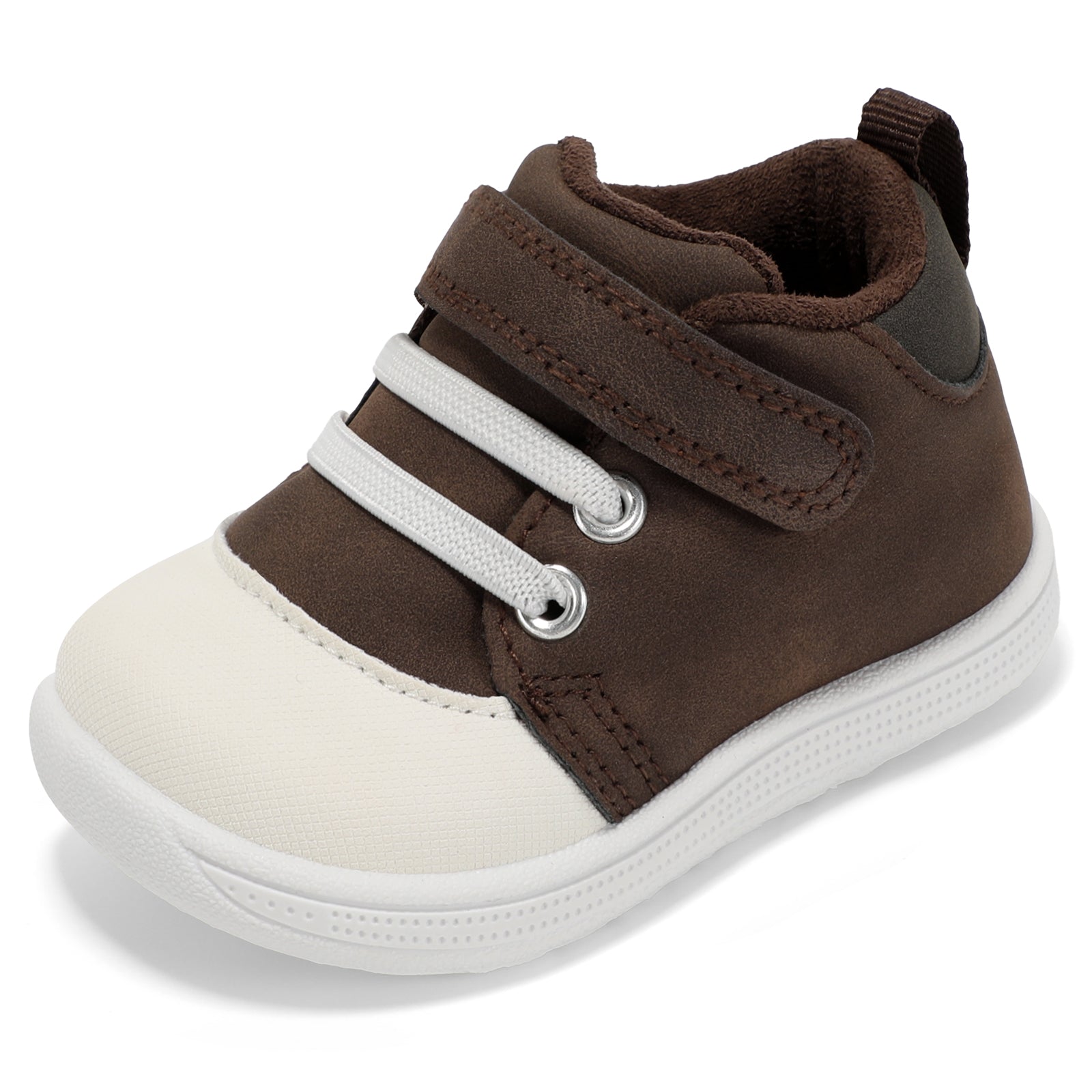 Unisex-Baby Mid-Top First Walker Shoes Wide Toe Box Toddler Boy Girl Barefoot Shoe Soft PU Leather Infant Sneakers with Hook-and-Loop