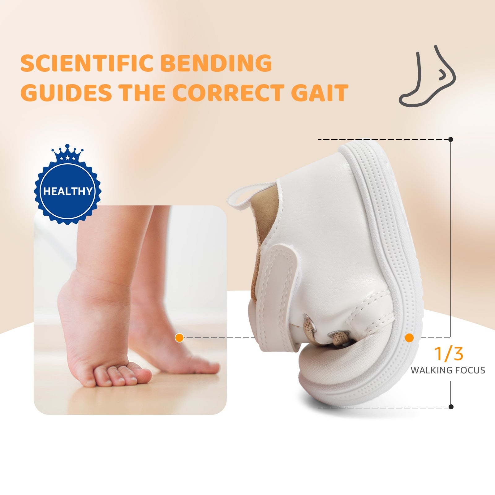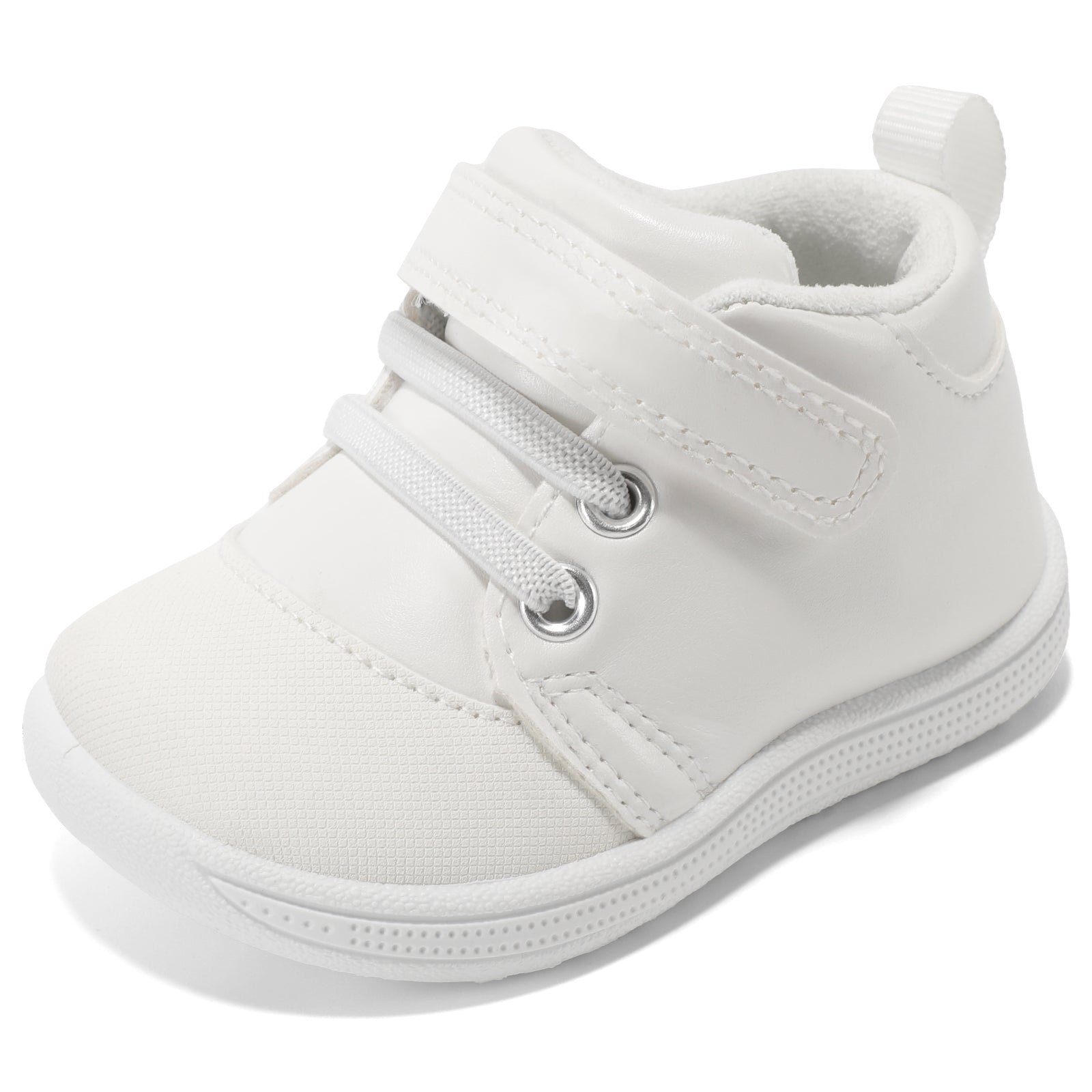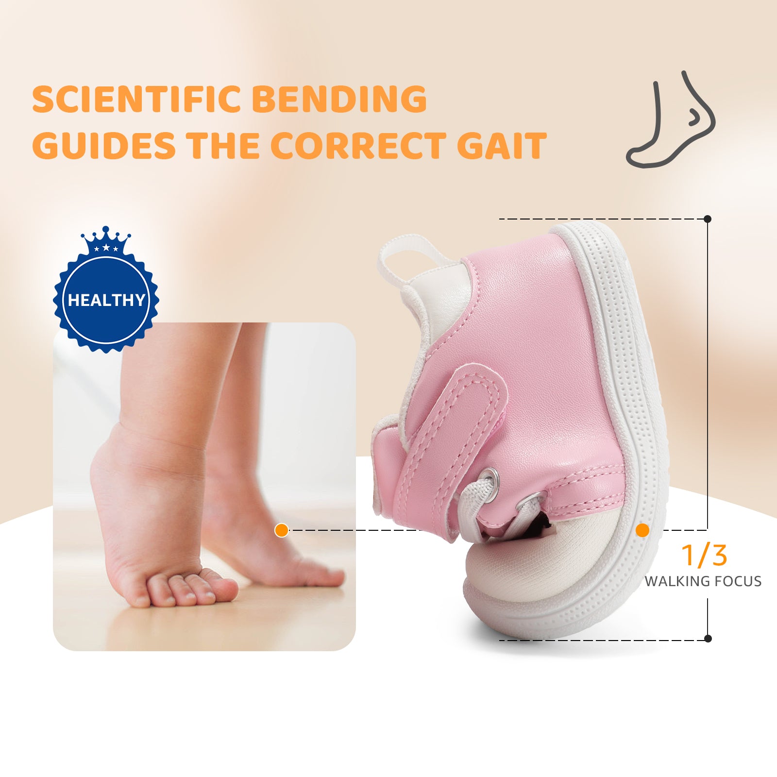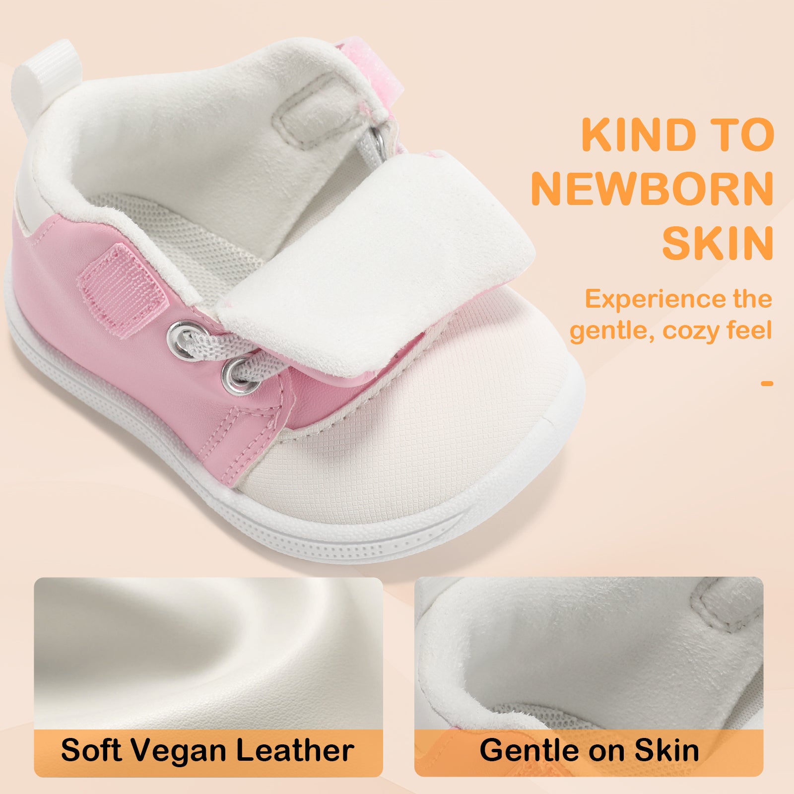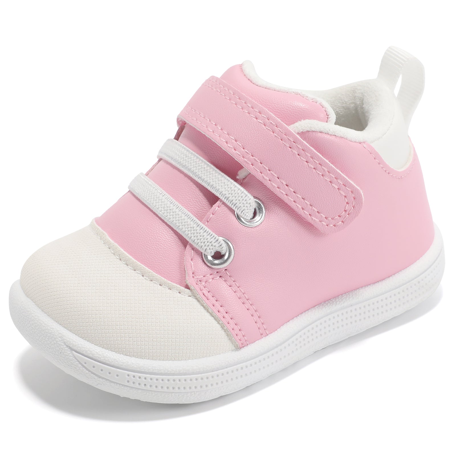Unisex-Baby Mid-Top First Walker Shoes Wide Toe Box Toddler Boy Girl Barefoot Shoe Soft PU Leather Infant Sneakers with Hook-and-Loop
