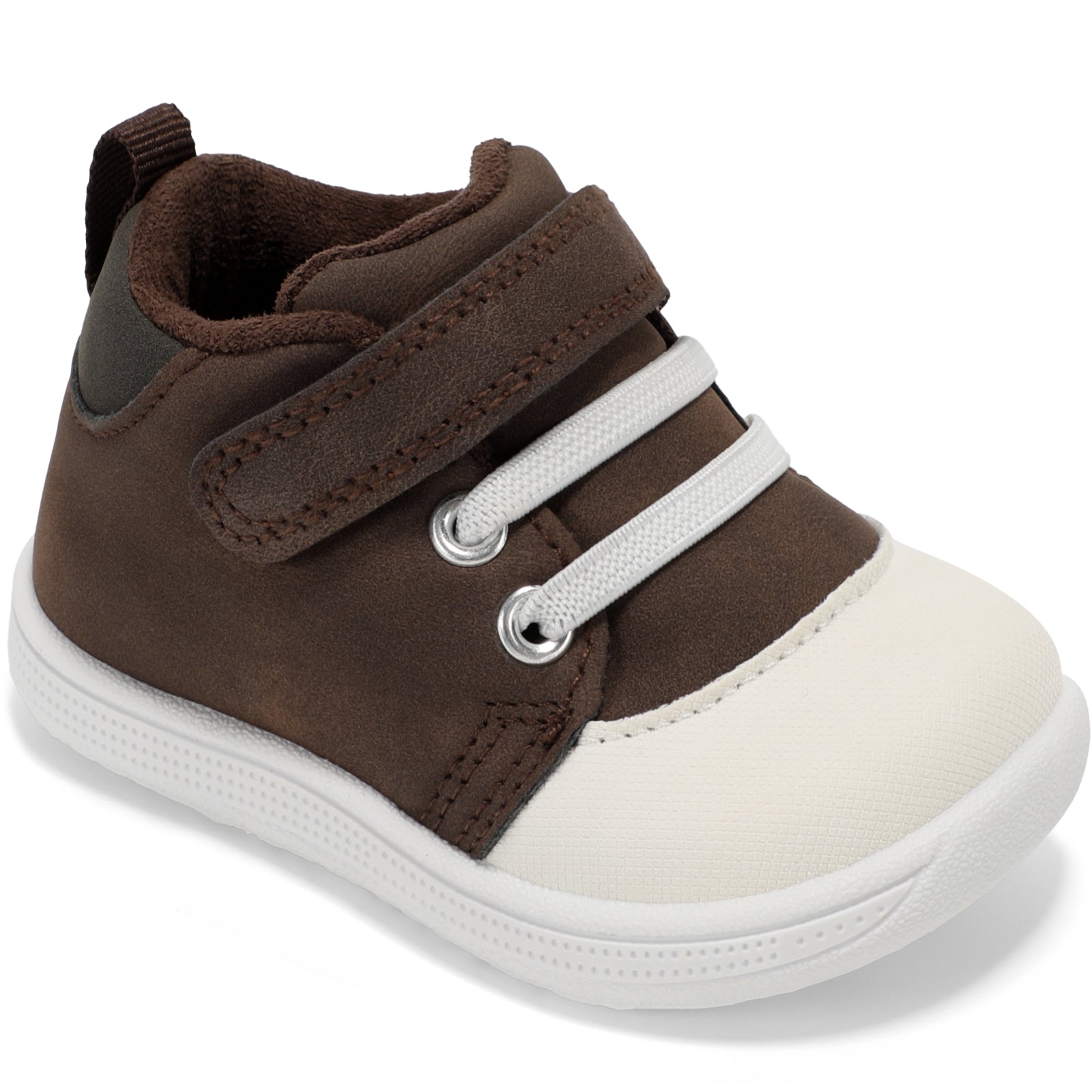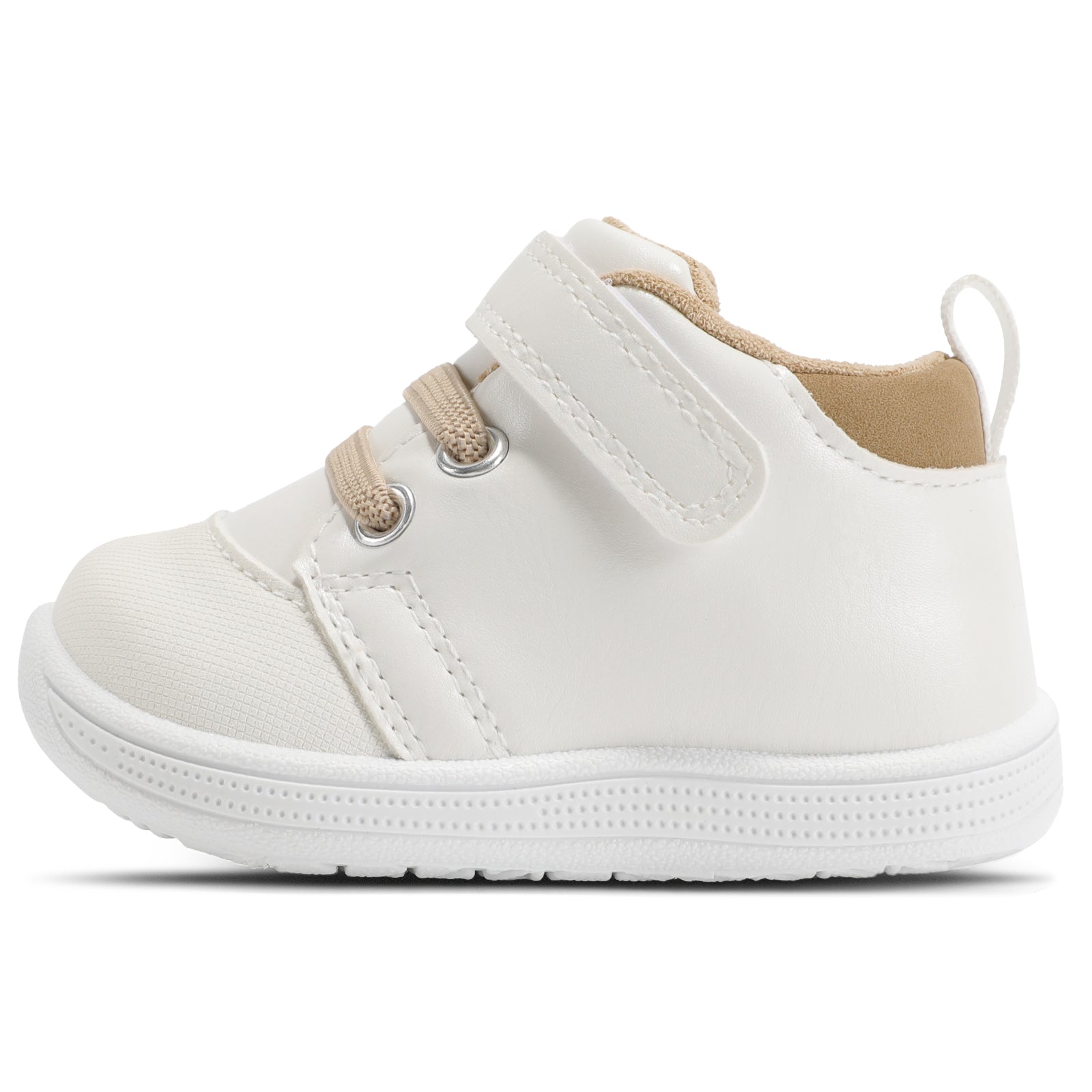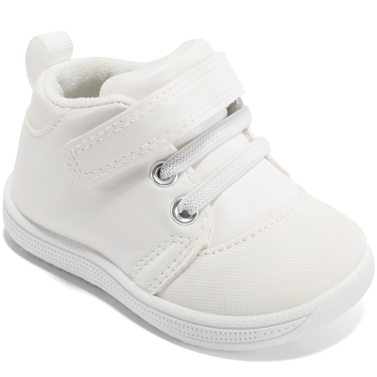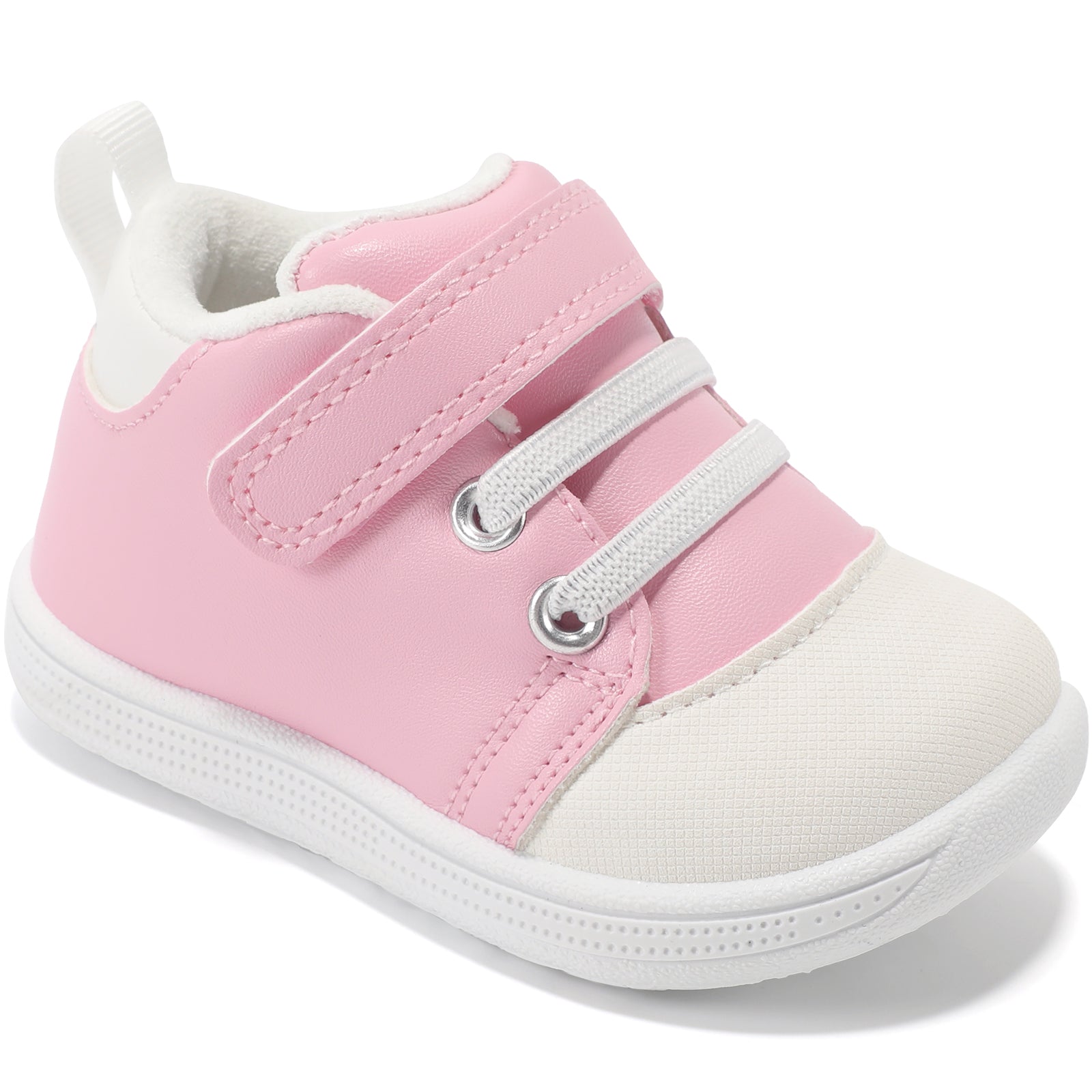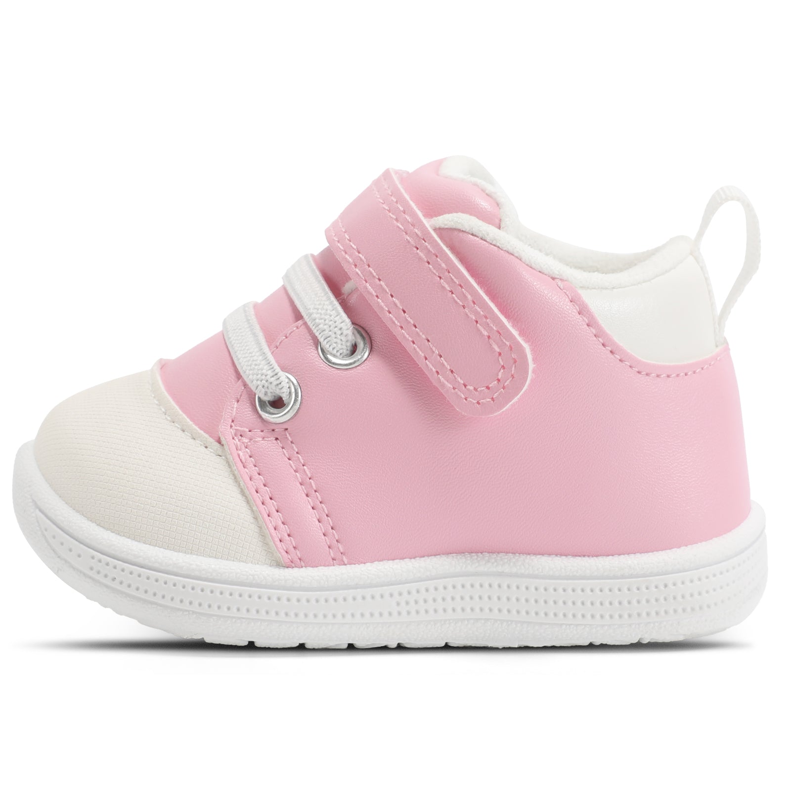 Unisex-Baby Mid-Top First Walker Shoes Wide Toe Box Toddler Boy Girl Barefoot Shoe Soft PU Leather Infant Sneakers with Hook-and-Loop