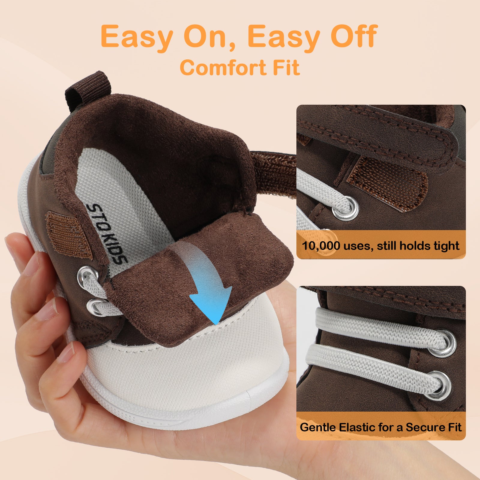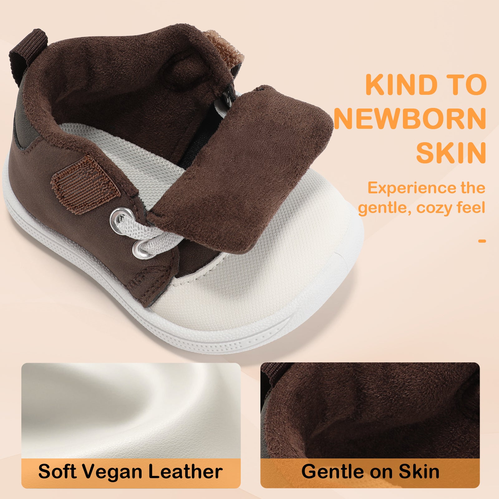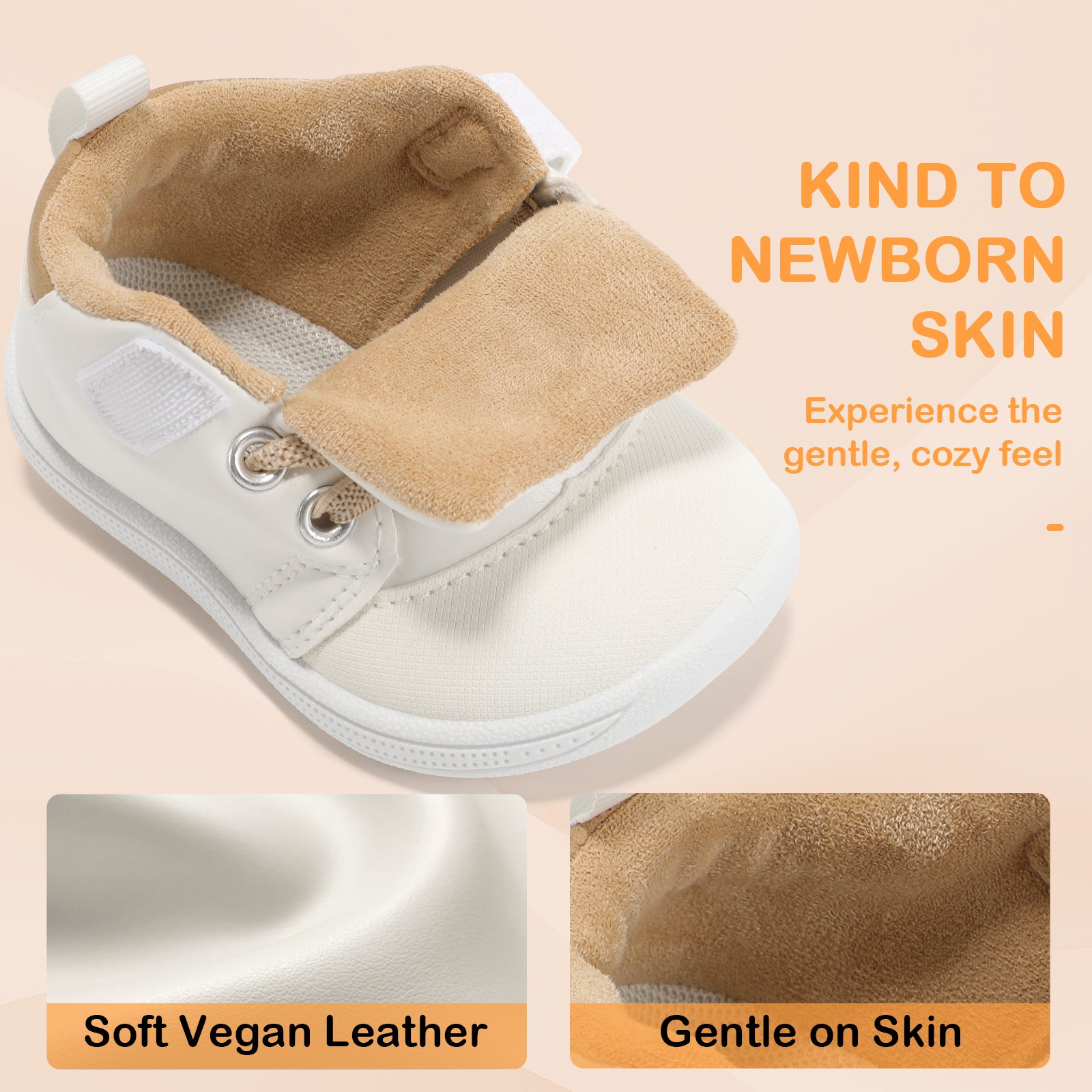 - [Tender Comfort & Care]: Soft PU leather is durable and easy to clean, while the textured stretch fleece lining gently hugs little feet, regulates temperature year-round, and provides flexible support for active baby shoes