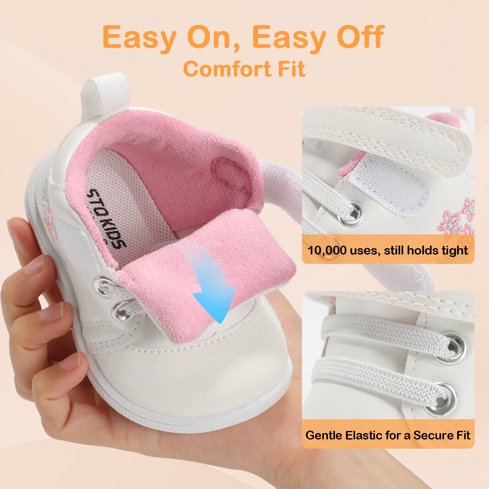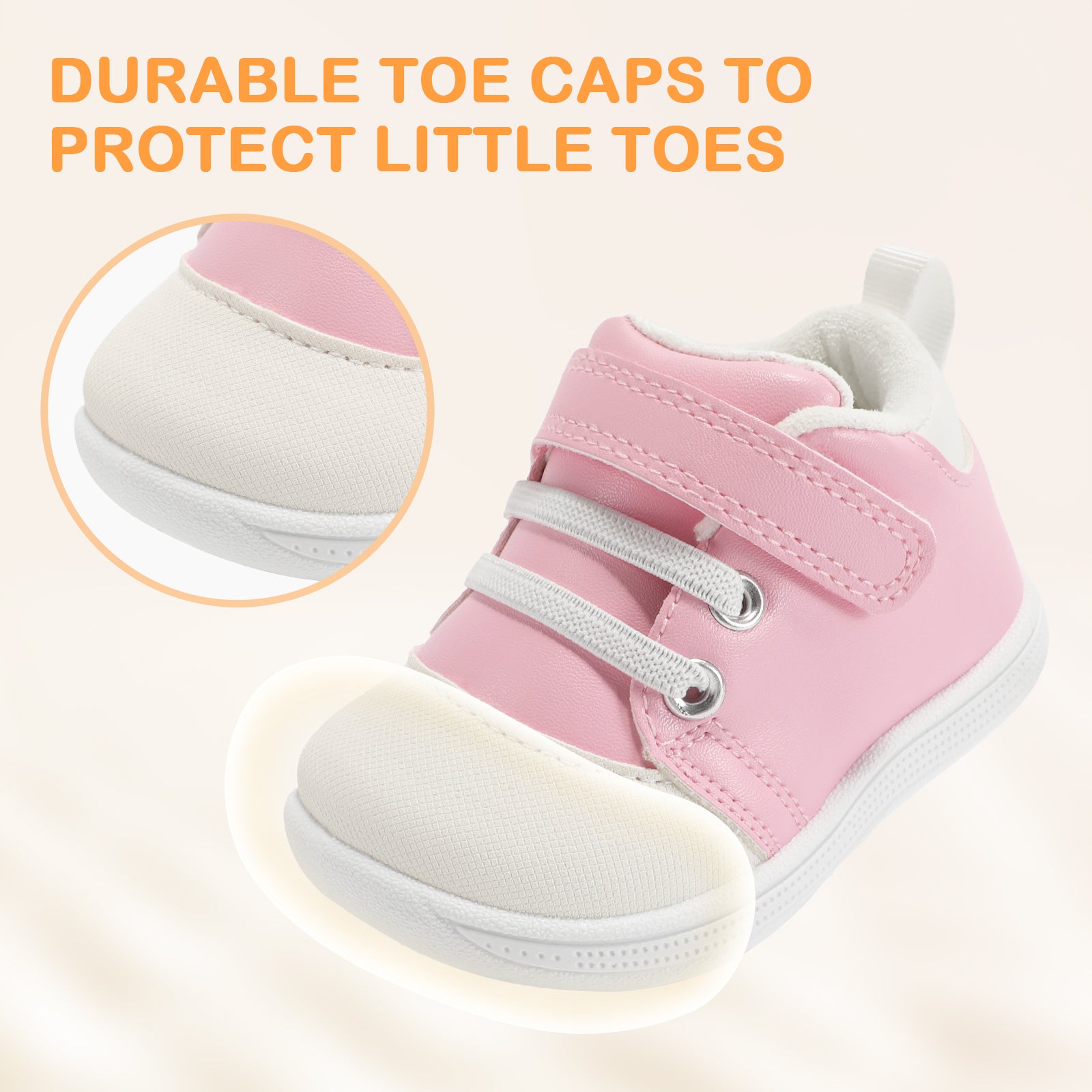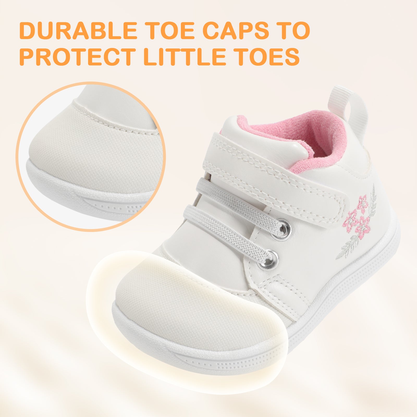 - [Roomly & Protected for Tiny Toes]: Our wide toe box infant shoes encourages natural toe splay and balance for stable steps, while the reinforced toe cap offers ultimate protection—making them the ideal early walker shoes for your explorer