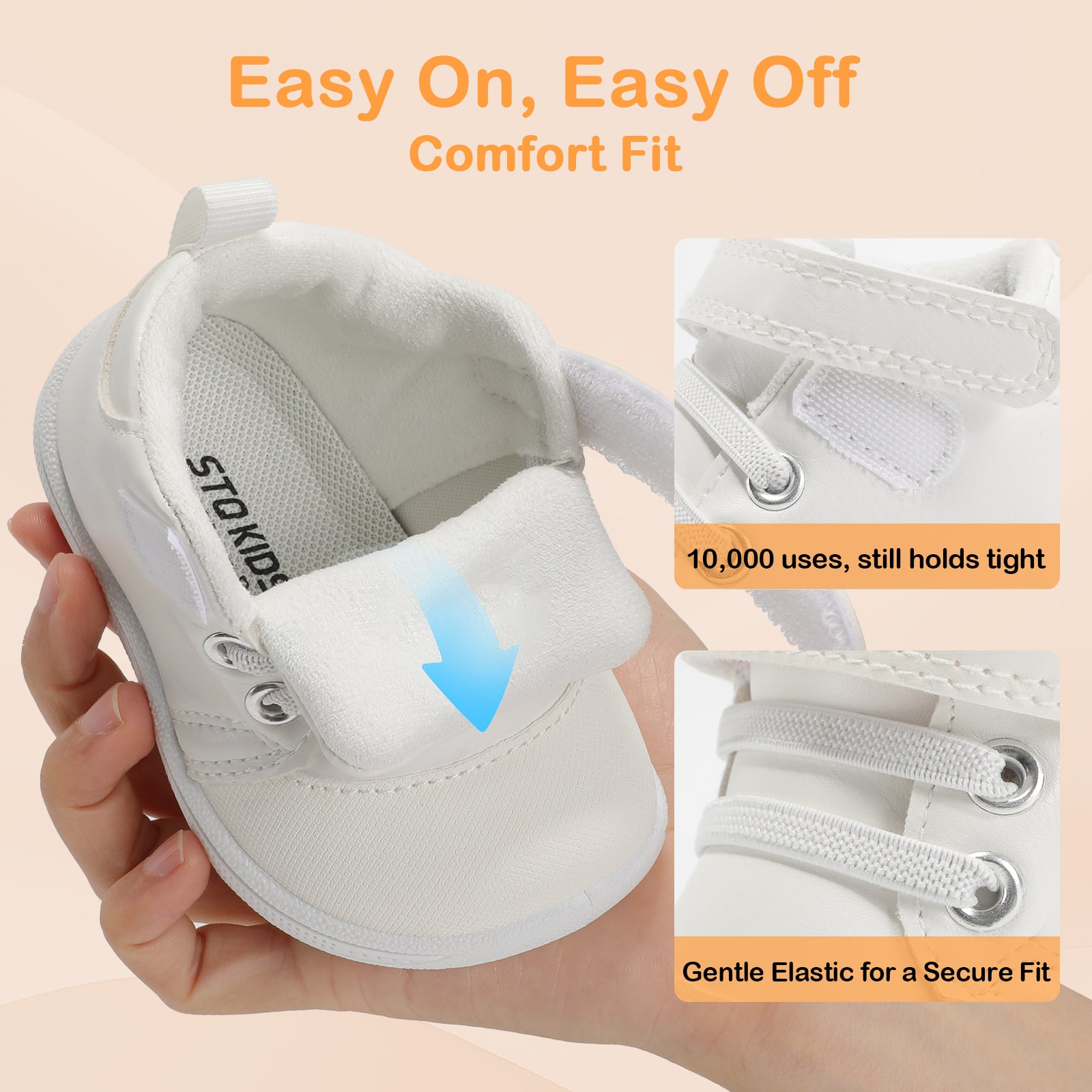 - [Easy to Wear, Snug All Day]: The single hook-and-loop strap and elastic opening make these toddler sneakers easy to get on and off, while keeping little feet securely comfortable for all-day wear and play