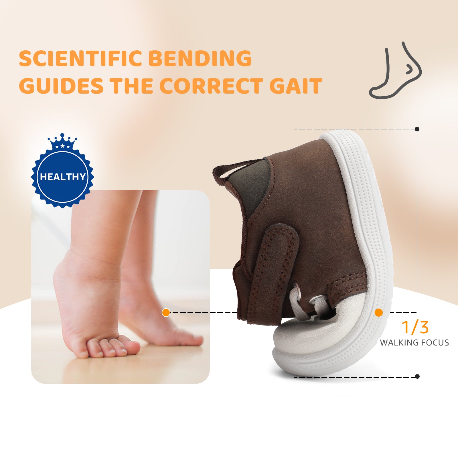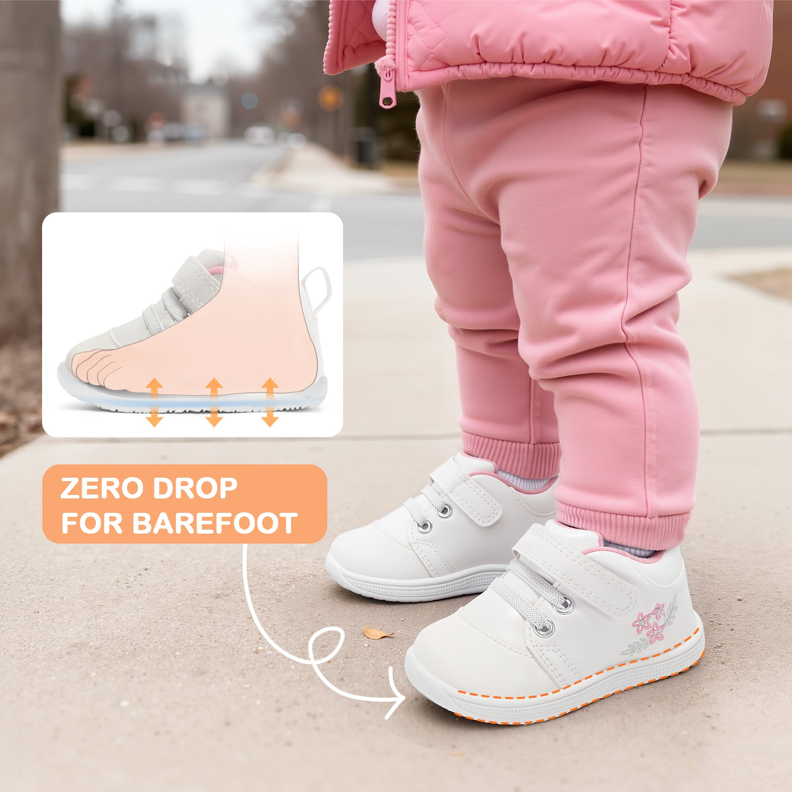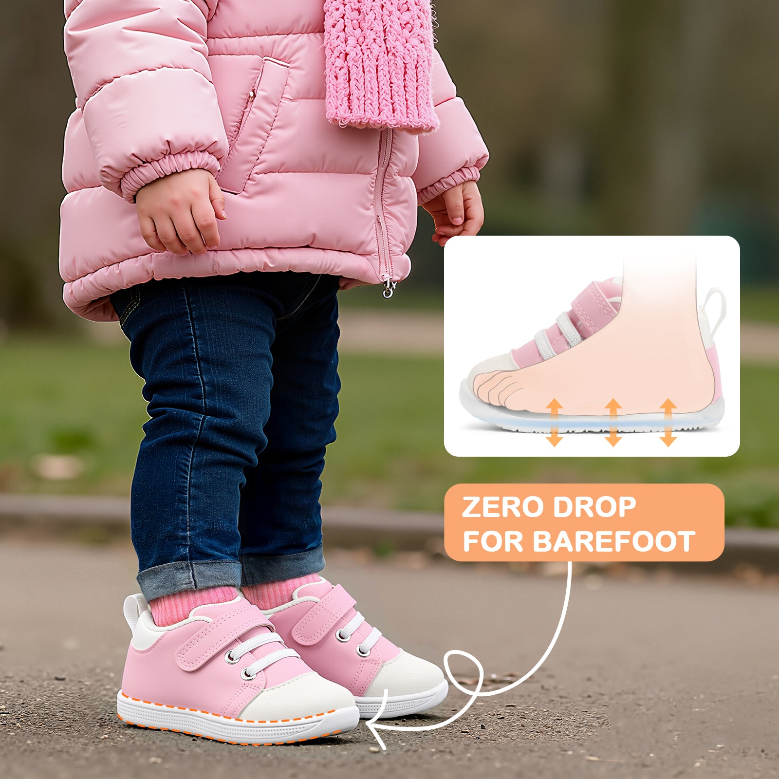 - [Natural Movement with Mid-Top Support]: These toddler barefoot shoes feature a flexible zero-drop sole to promote healthy foot development, while the secure mid-top cuff and padded ankle collar offer gentle stability and protection for new walkers