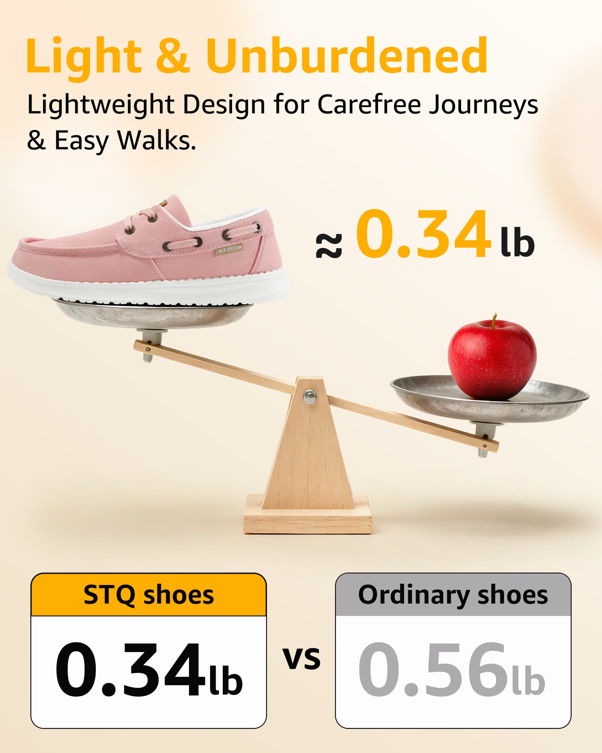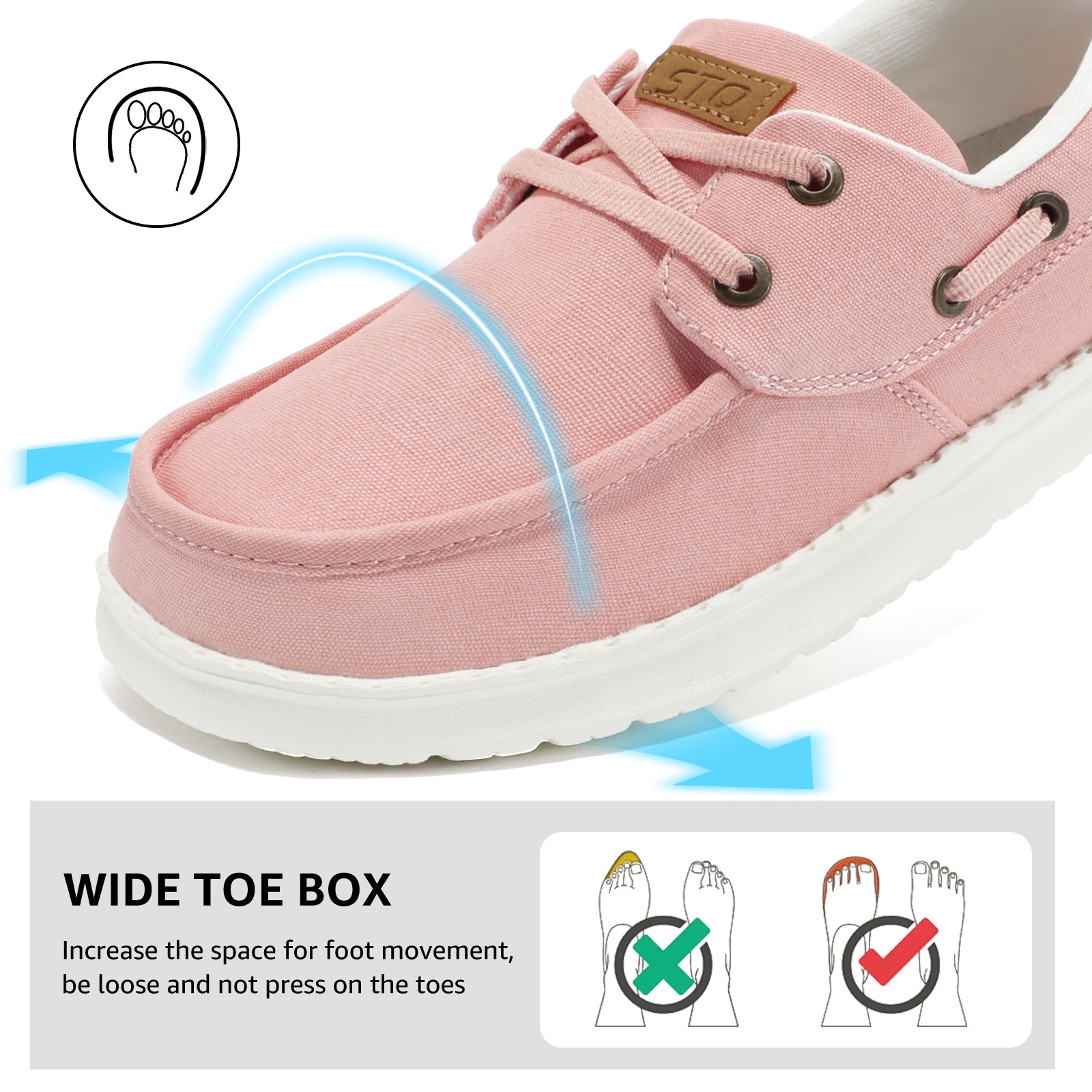 STQ Women Boat Shoes Orthopedic Insole Slip On Business Casual Sneakers for Plantar Fasciitis Lightweight Canvas Loafer
