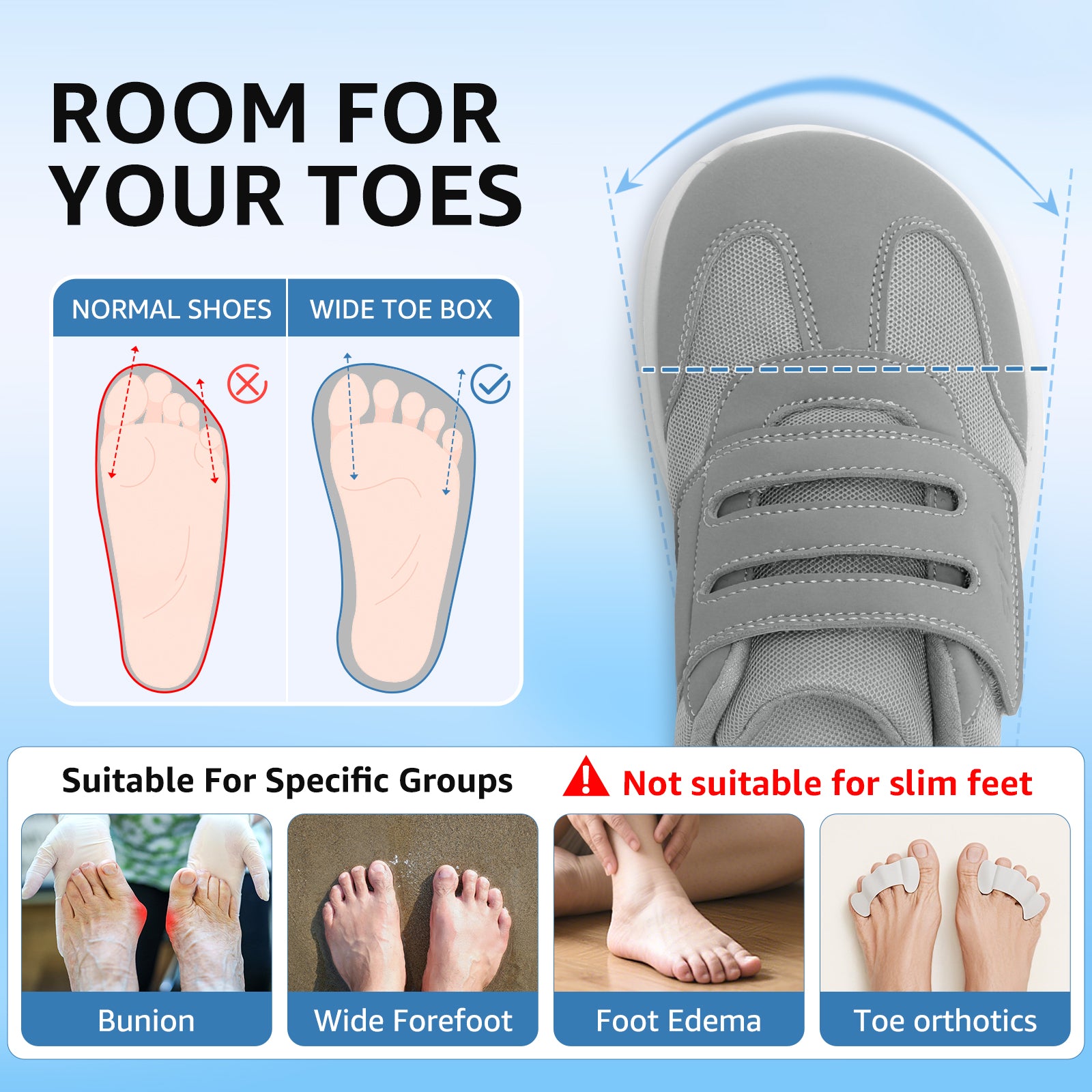 - Spacious Toe Box and Extra Depth: Our women's wide toe box shoes reduce forefoot pressure, allowing the toes to splay naturally. The roomy, non-binding fit relieves pain from conditions such as bunionsand provides relief for sensitive feet