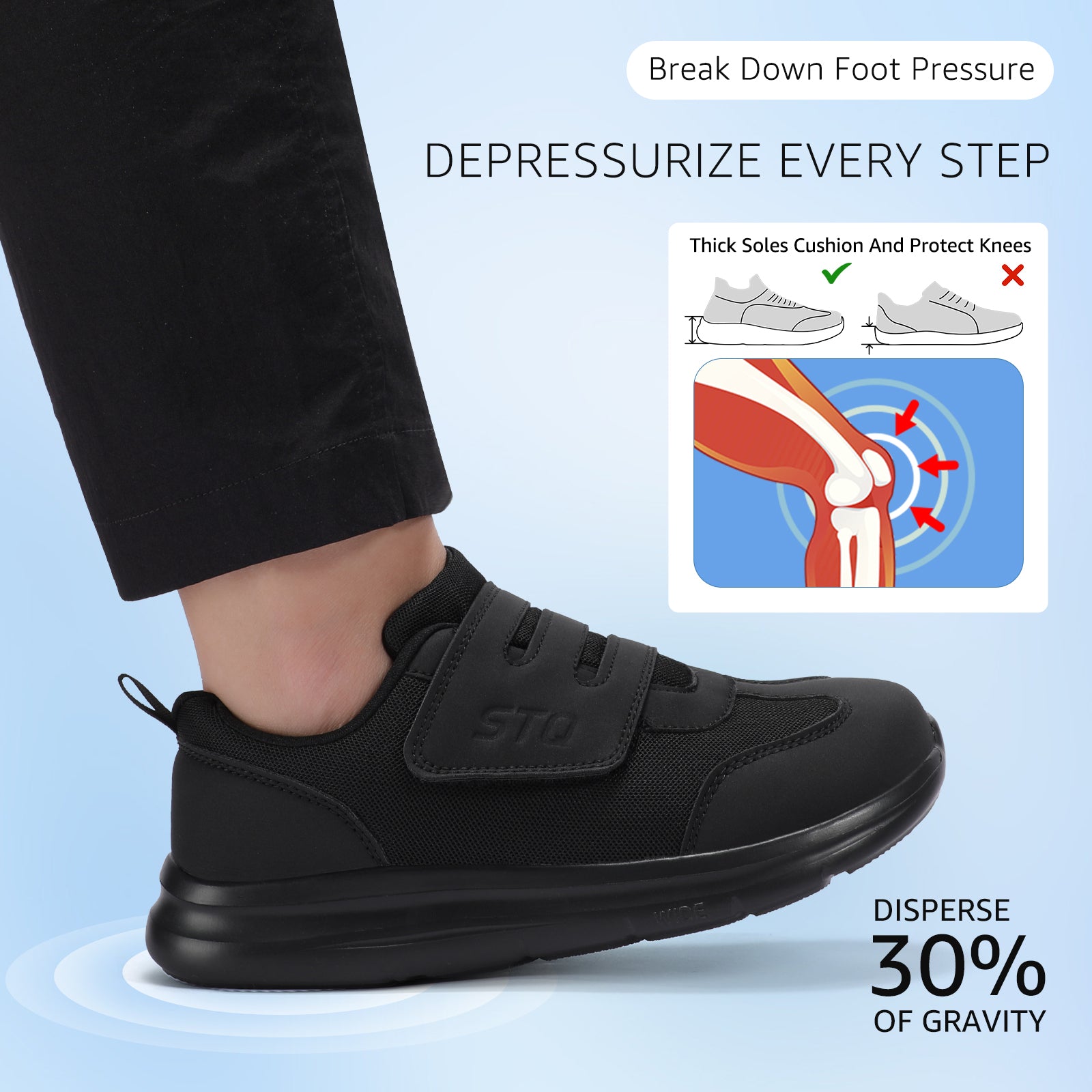 STQ Wide Toe Box Shoes Women, Hook and Loop Orthopedic Walking Shoe for Seniors, Bunions, Plantar Fasciitis, Hammertoes, Swollen Feet