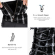- [ Smooth Design ] Side zipper which has been tested 1500 times runs smoothly and quietly. I Bet You Don't Want to Get Stuck! While inside hidden PU patch prevents zipper rubbing your ankle. Quilted synthetic shaft, barrel tie laces with rustproof eyelets are stylish and functional for a secure fit, and zipper for easy on and off