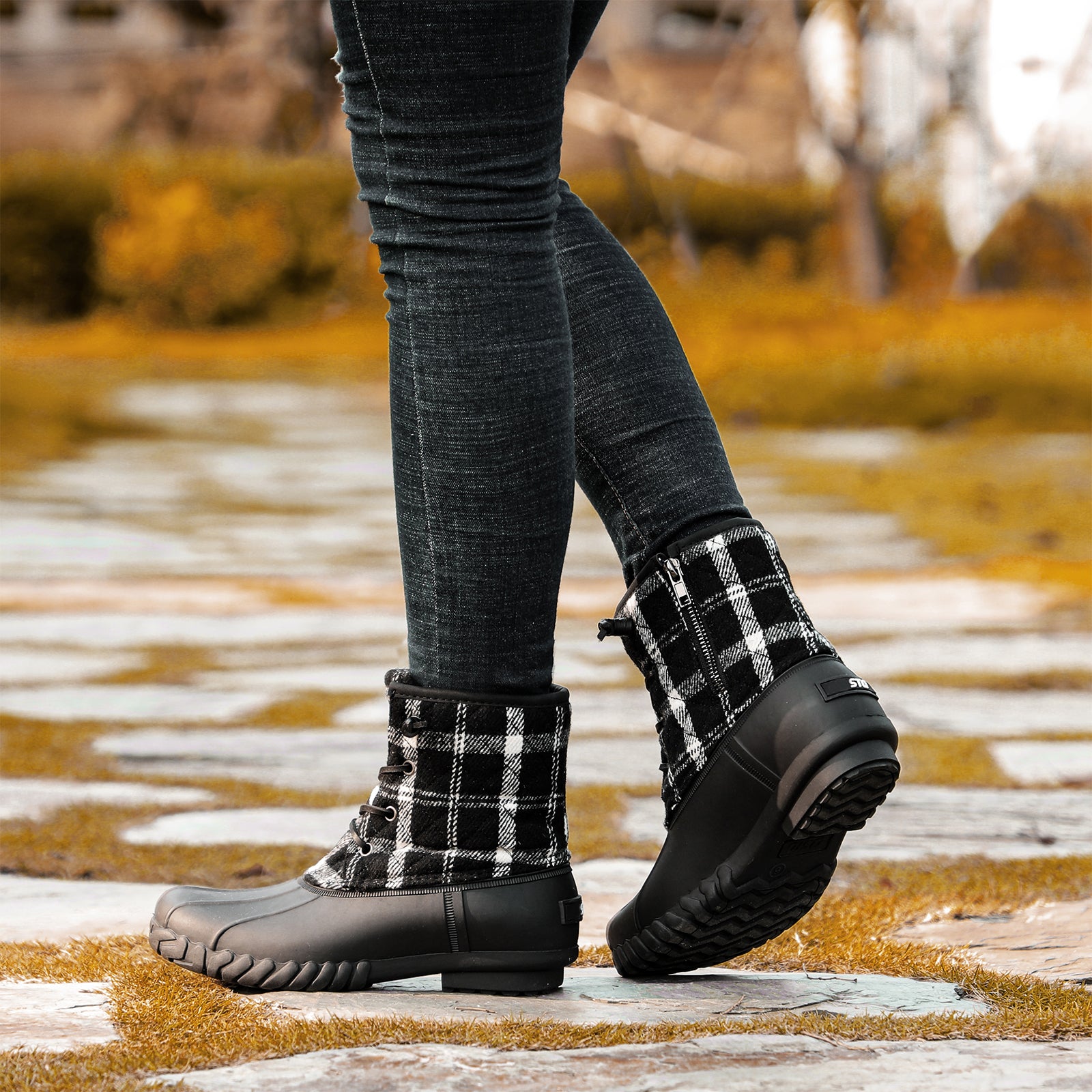 - [ Occasion ] When cold weather rolls in, trust your comfort to the women's waterproof duck boots. Pair these boots with any outfit from dusk until dawn! From jeans to dresses, these boots are a sure-fire way to top off any outfit, perfect for outdoor, rainy day, snowy day, fits for spring, fall, winter