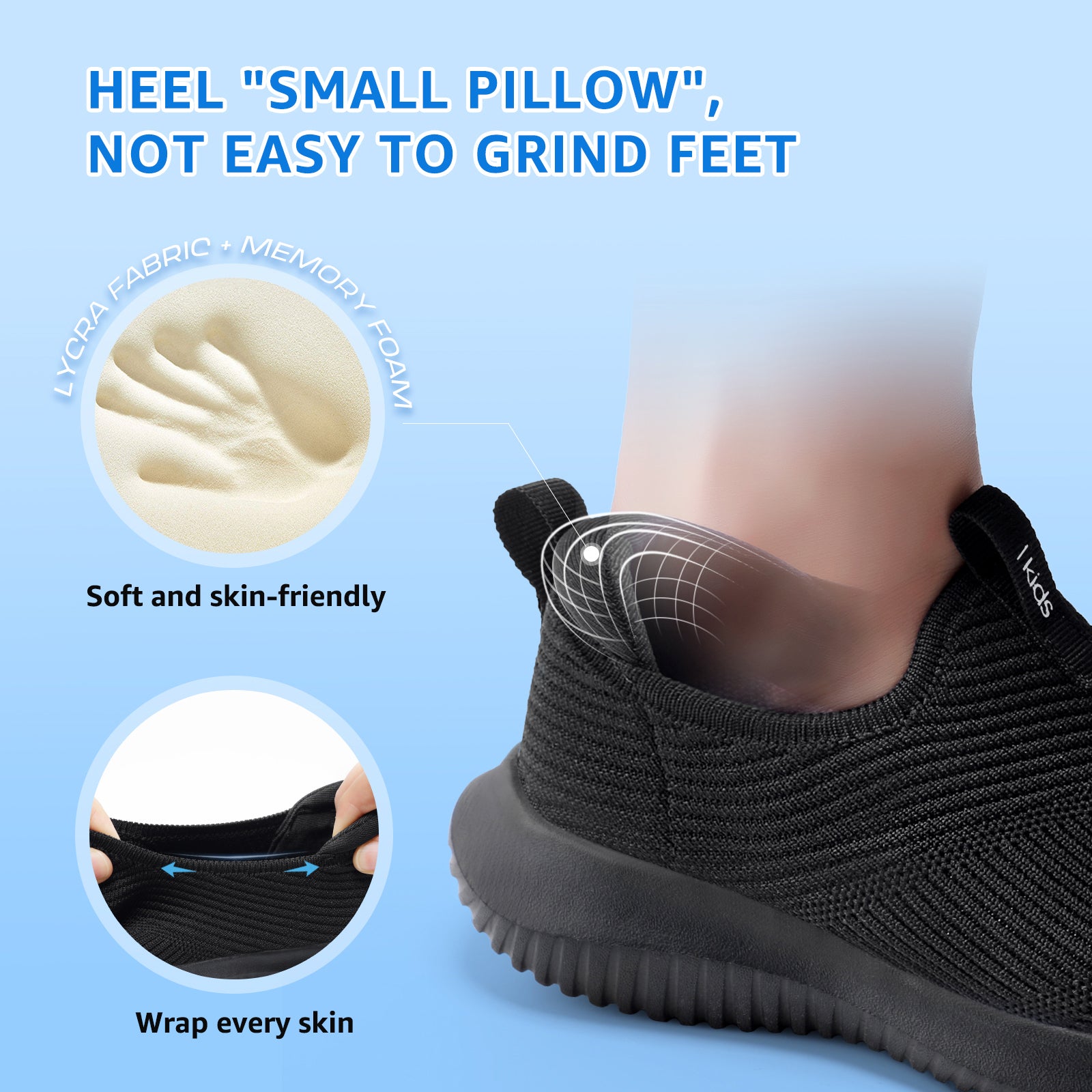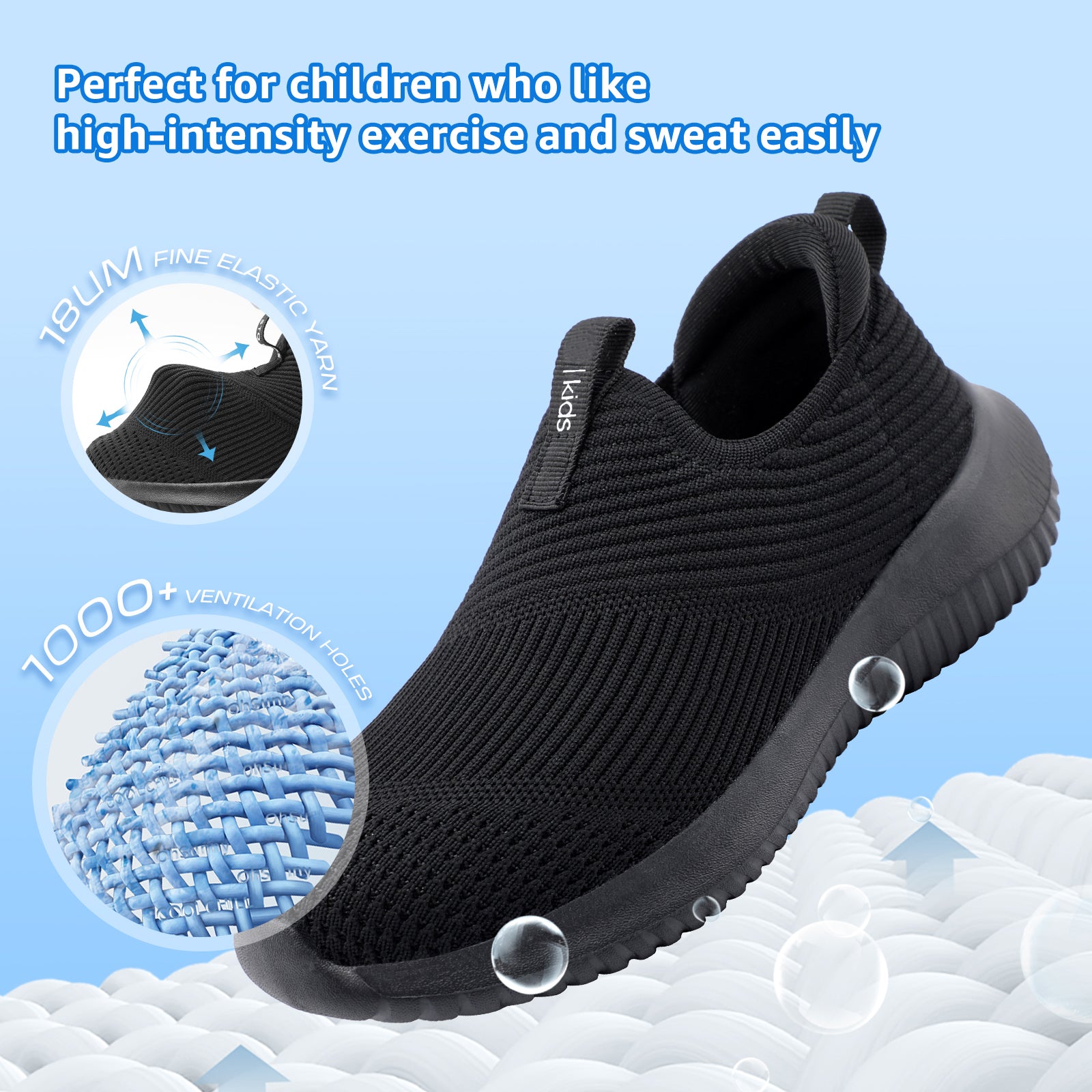 - [ High Elastic ]: This boys slip on sneakers are made of high-stretch knit, which has breathable and strong wrapping, better protection of the kids feet, perfect for boy and girls