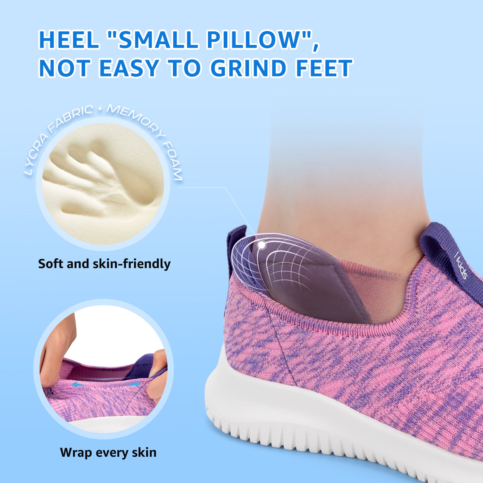 - [ Not Grinding Feet ]: The girls slip on sneakers heel is padded with soft, highly elastic insole for better foot coverage and comfy, without rubbing the foot