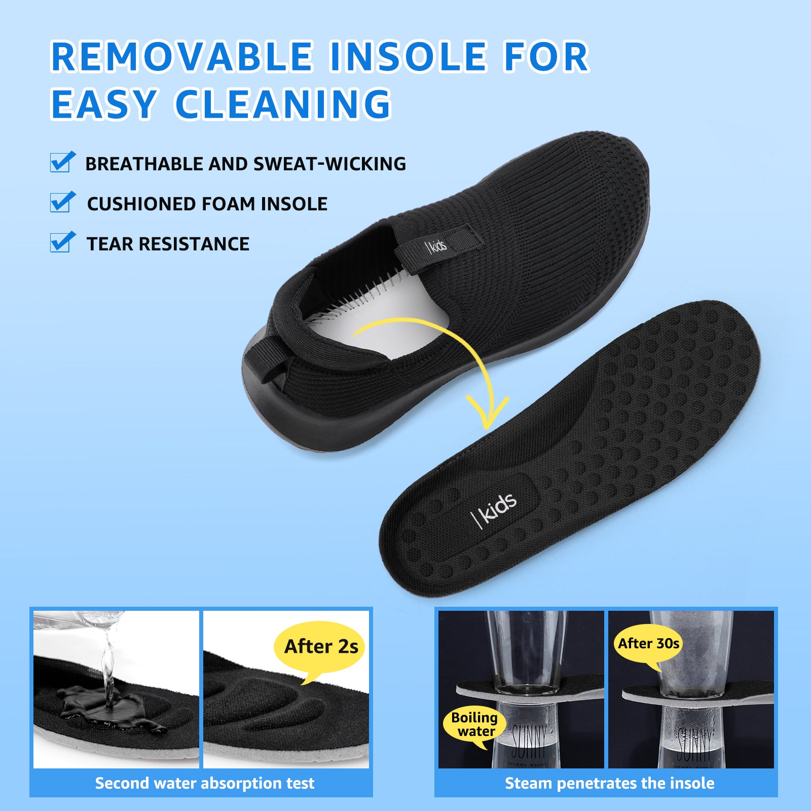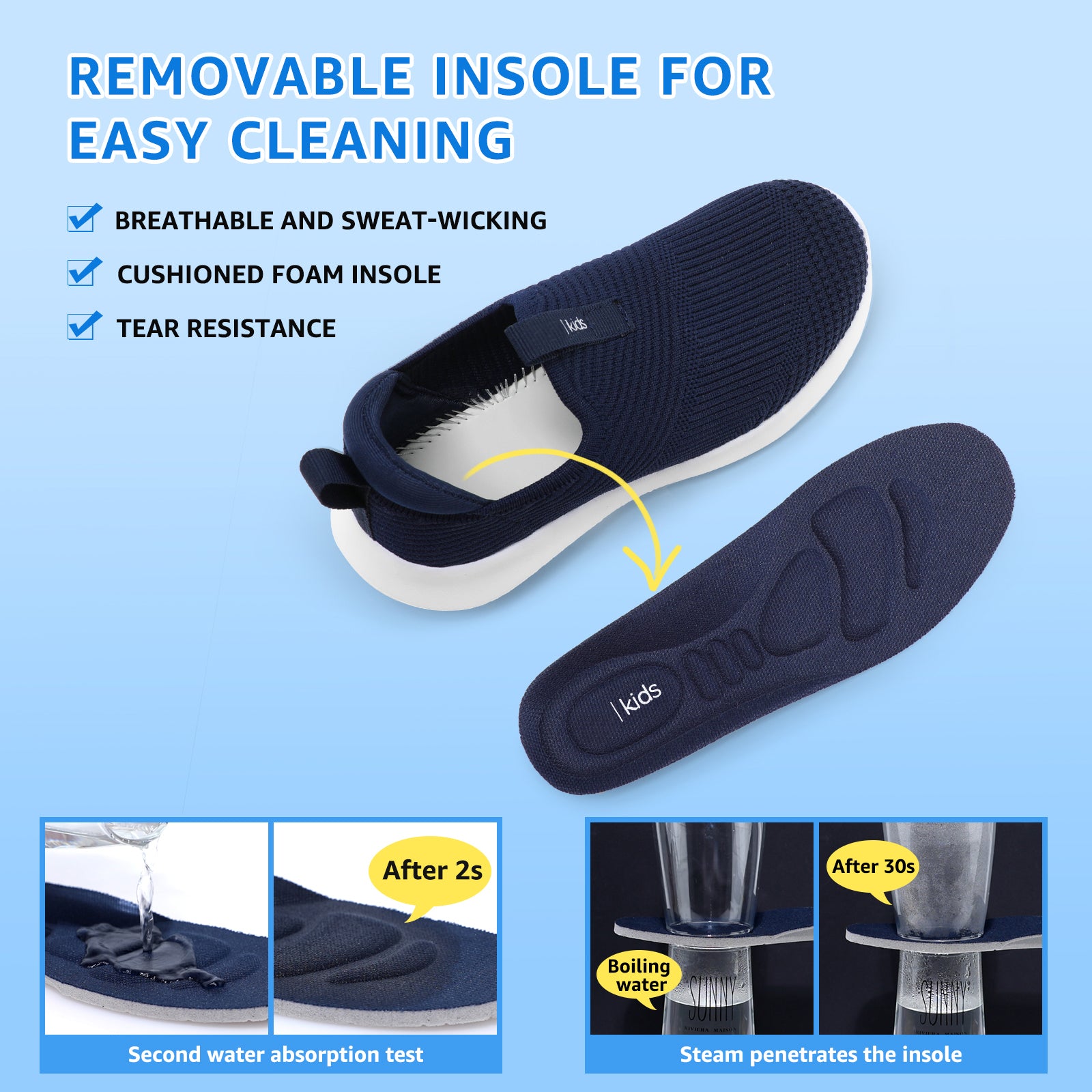 - [ Feet Dry At All Times ]: The boys sneakers insole has a strong water absorption, breathable, sweat-absorbent, keeping feet dry at all times, keep your kids away from foot odor
