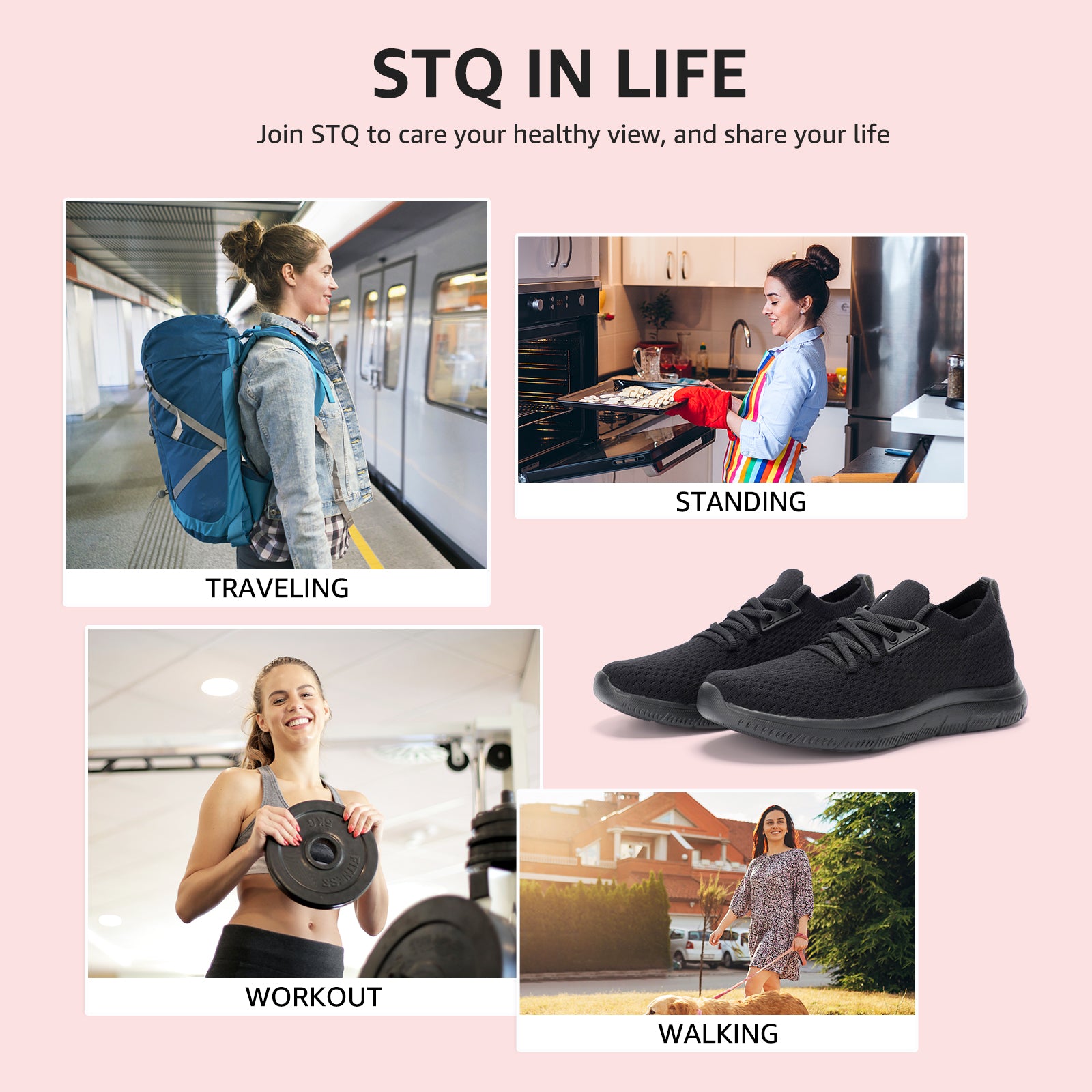 STQ Tennis Shoes Womens Slip on Walking Sneakers for Gym Workout