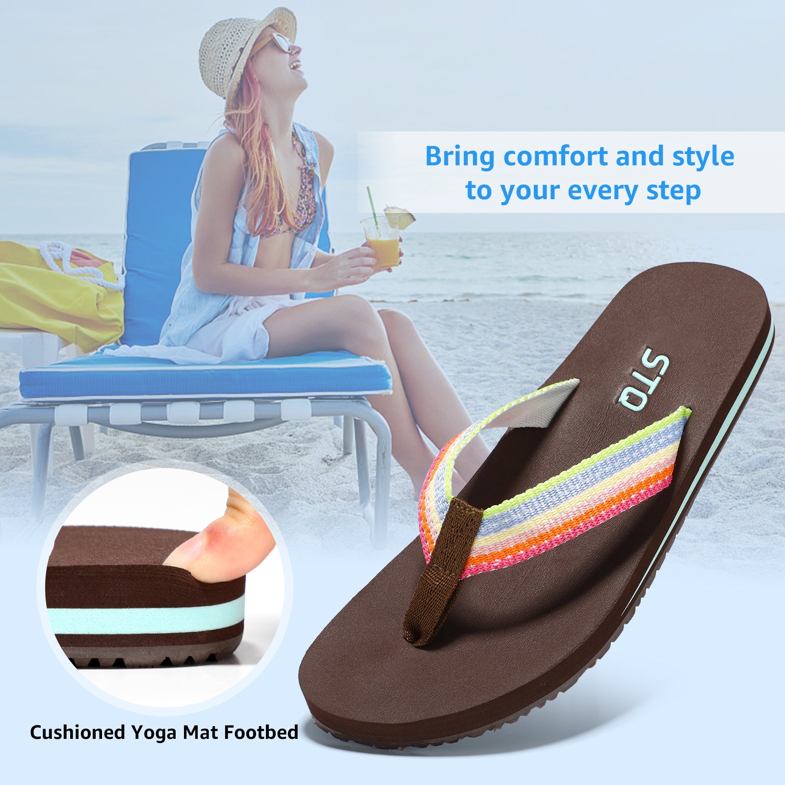 STQ Womens Quick Dry Flip Flops丨Arch Support Thong Sandals