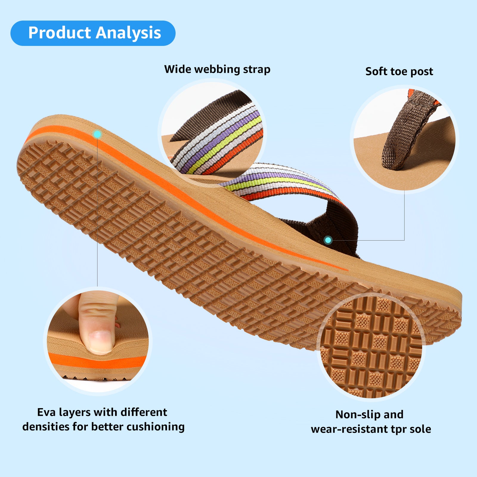 - Supportive Arch Design:Engineered with enhanced arch support; these flip flops offer superior stability and comfort, ideal for maintaining foot health during extended wear