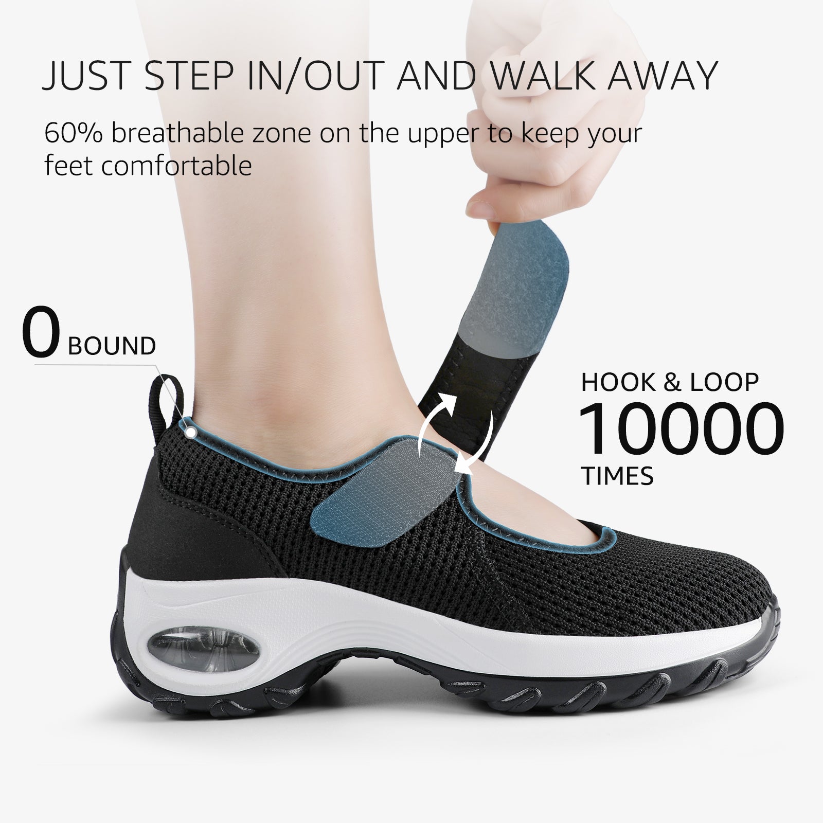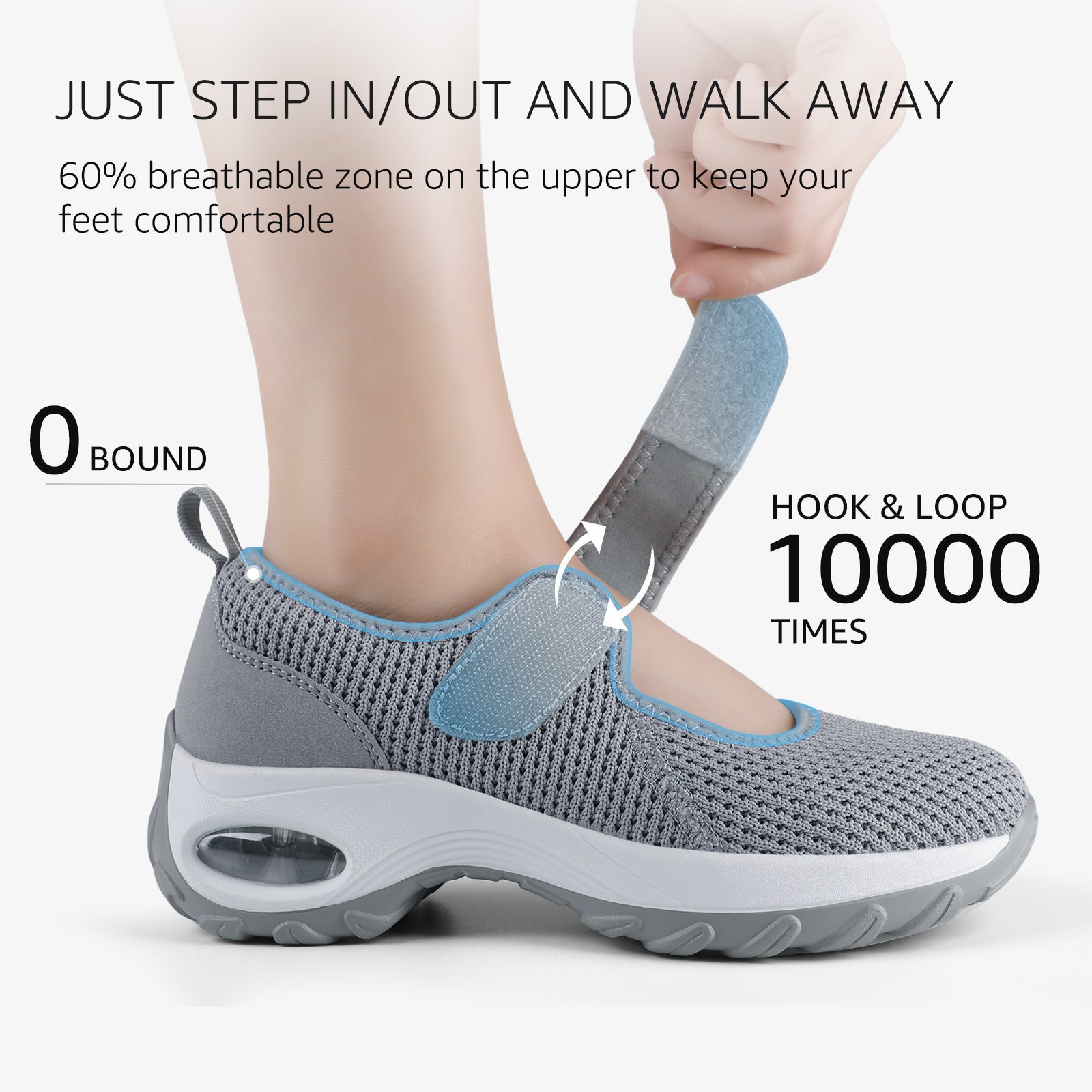 STQ Womens Walking Shoes Non Slip Orthopedic Shoes Adjustable Mary Jane Shoes