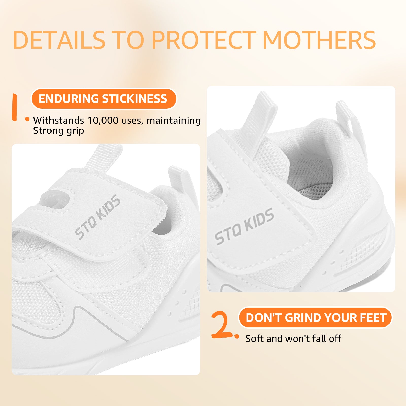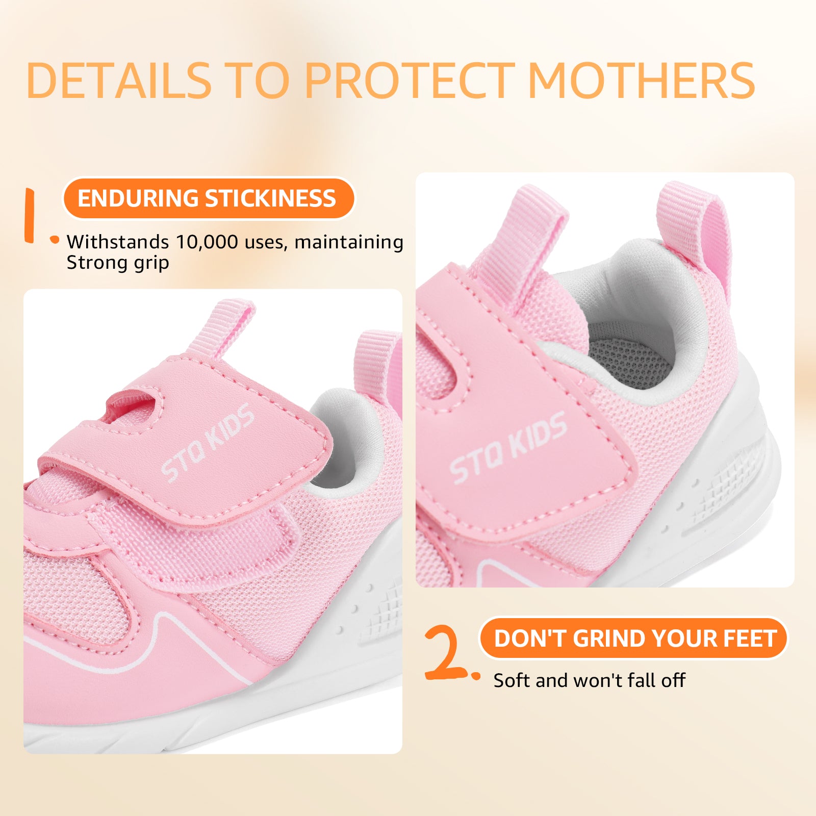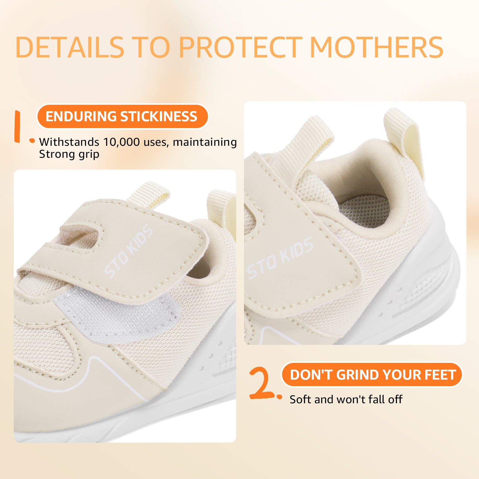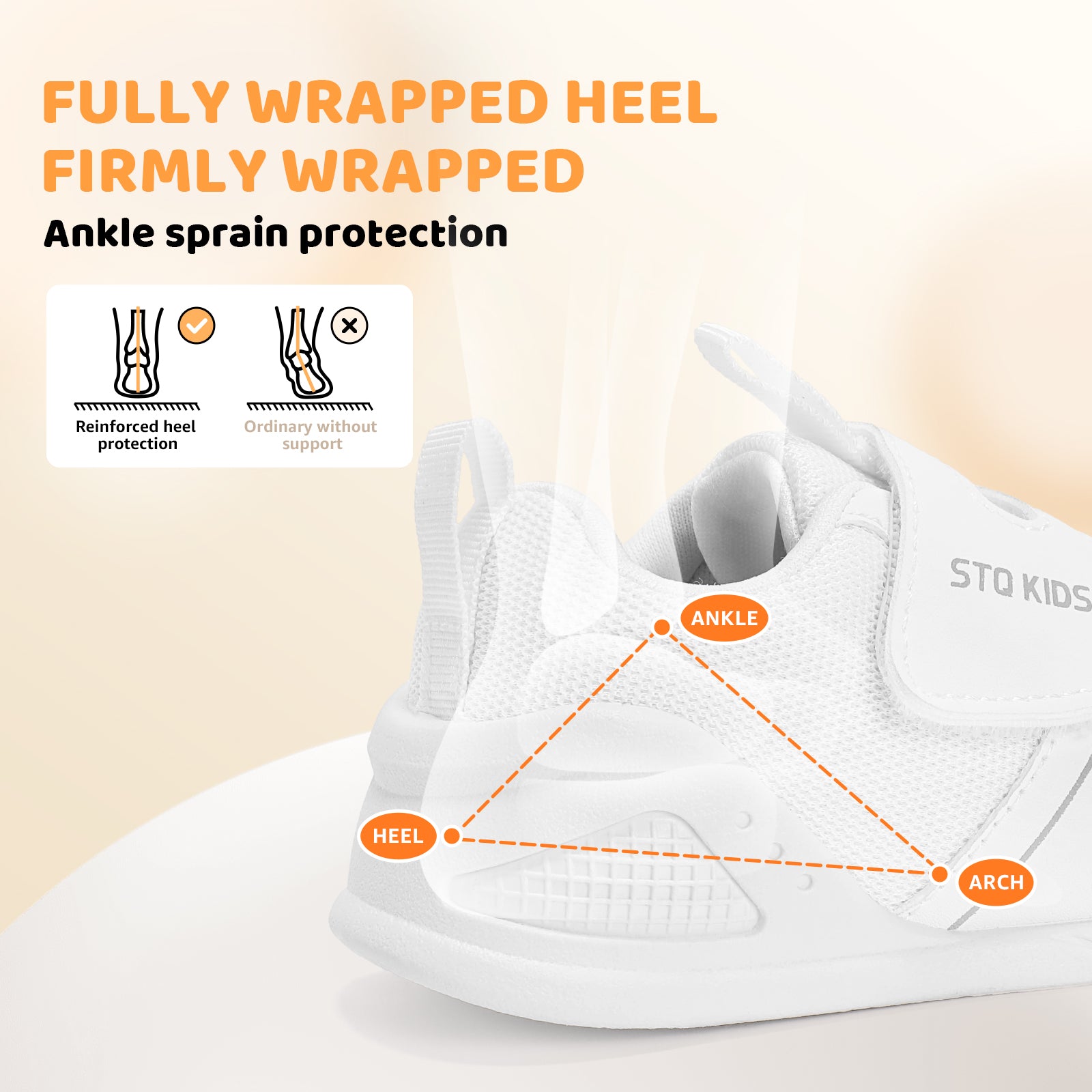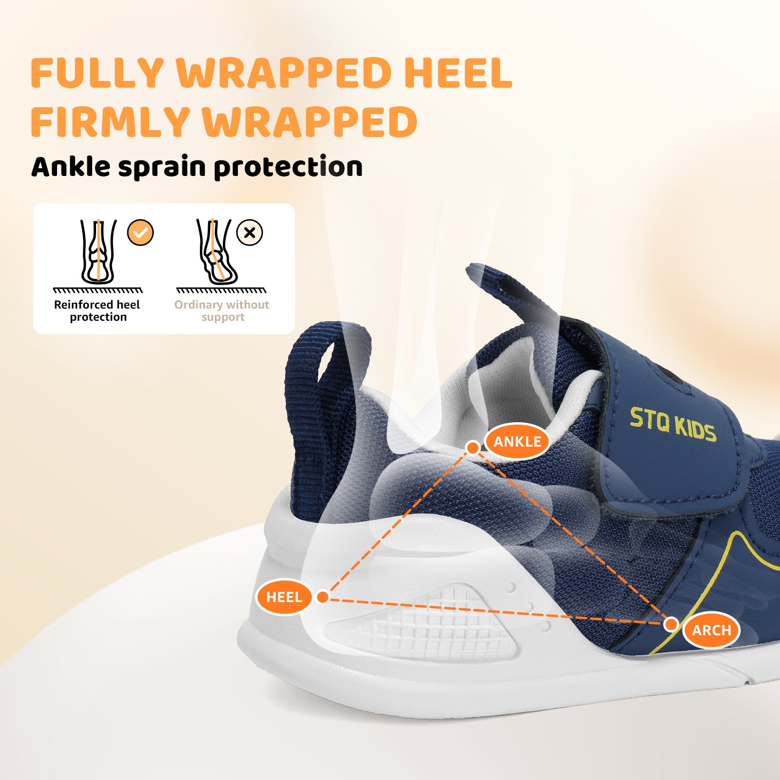 - Moderate support: This baby shoe provides balanced heel support to promote foot muscle development and healthy gait. For babies with poor bone and ligament development, this support can correct heel dislocation, prevent problems such as rearfoot eversion, and enhance gait stability. It can reduce foot pressure, improve balance, and support healthy foot development. Paired with an ultra-soft and flexible TPR sole, it delivers superior comfort while maintaining natural foot movement