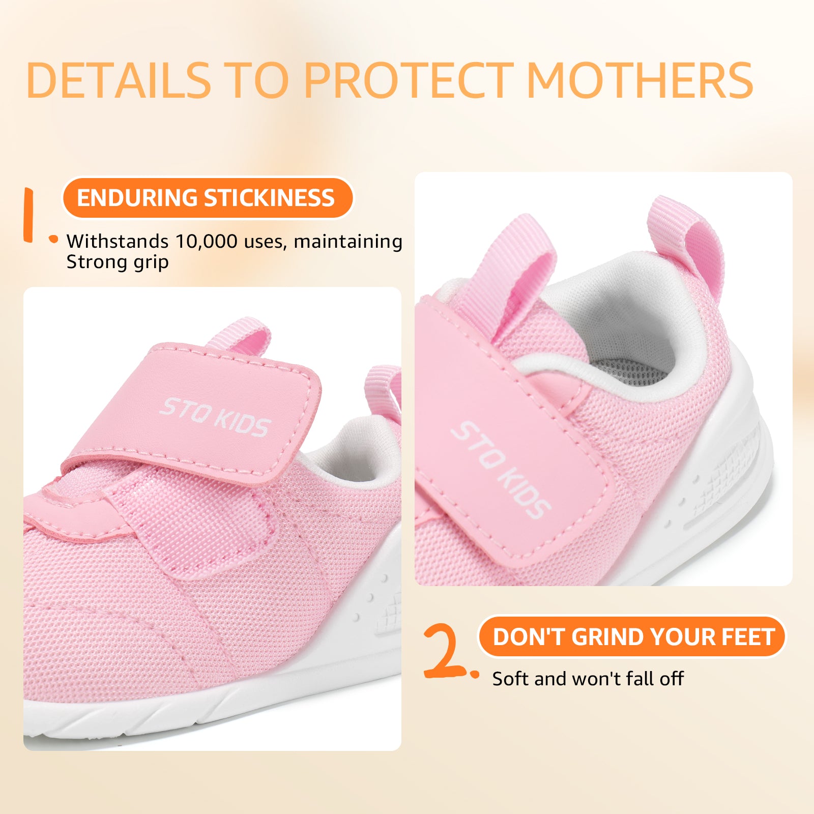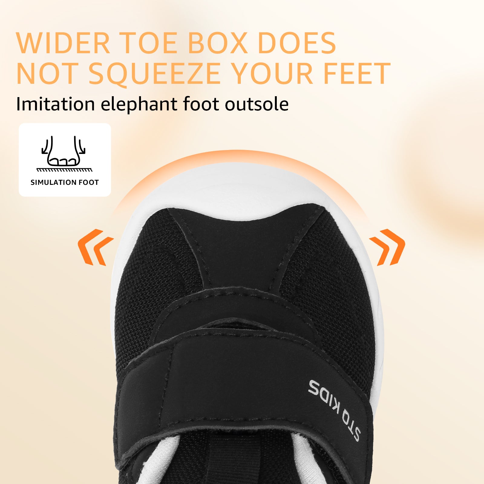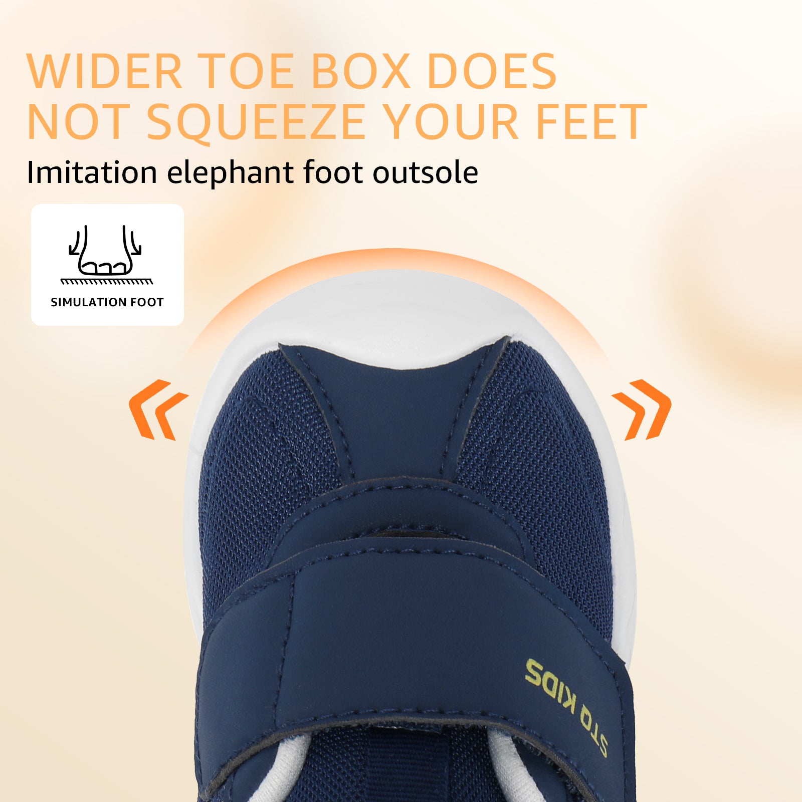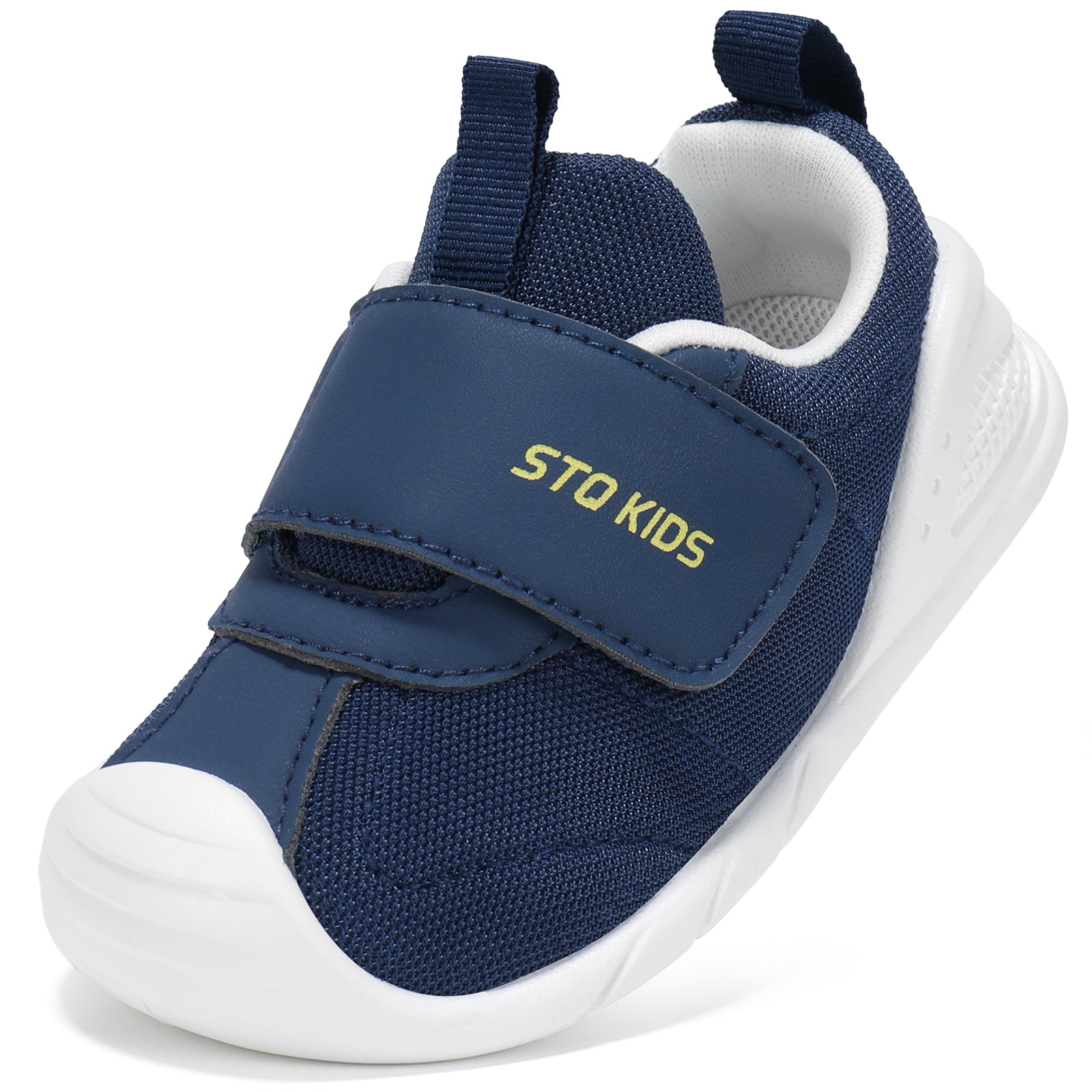 - [ Easy to Wear ]: Toddler walking shoes with adjustable hoop & loop, convenient for parents help infant boy and girl wear wide toe box shoes, also easy for baby on & off by themselves, straps are very secure. Great choice for busy parents give to children