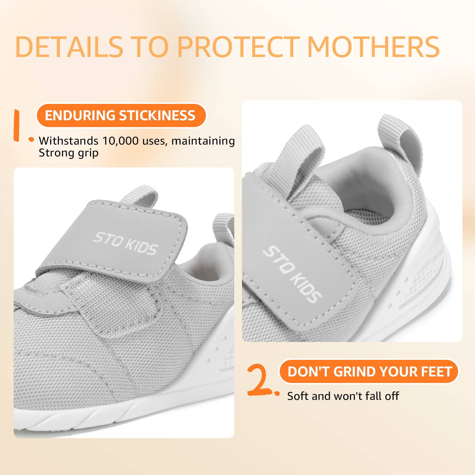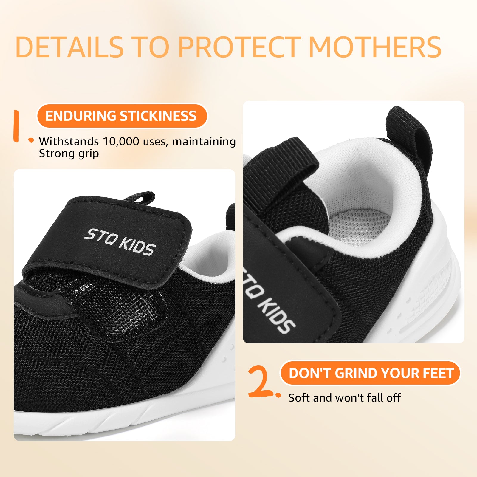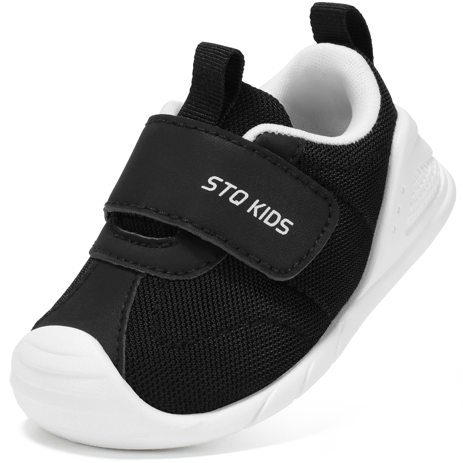 - [ Easy to Wear ]: Toddler walking shoes with adjustable hoop & loop, convenient for parents help infant boy and girl wear wide toe box shoes, also easy for baby on & off by themselves, straps are very secure. Great choice for busy parents give to children